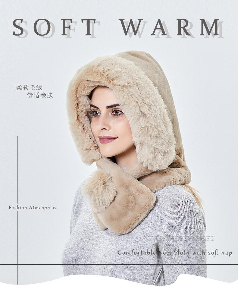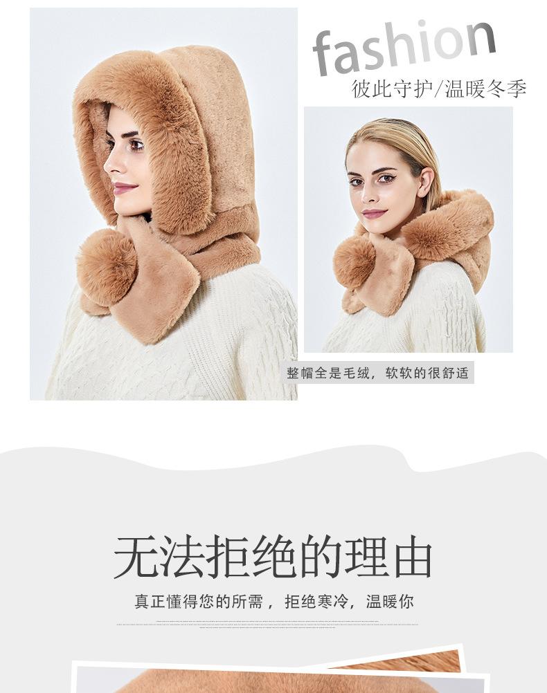 9849 sombrero de mujer otoño e invierno bufanda cálida bufanda de felpa gorro tipo jersey integrado protección para los oídos a prueba de viento para montar sombrero Lei Feng