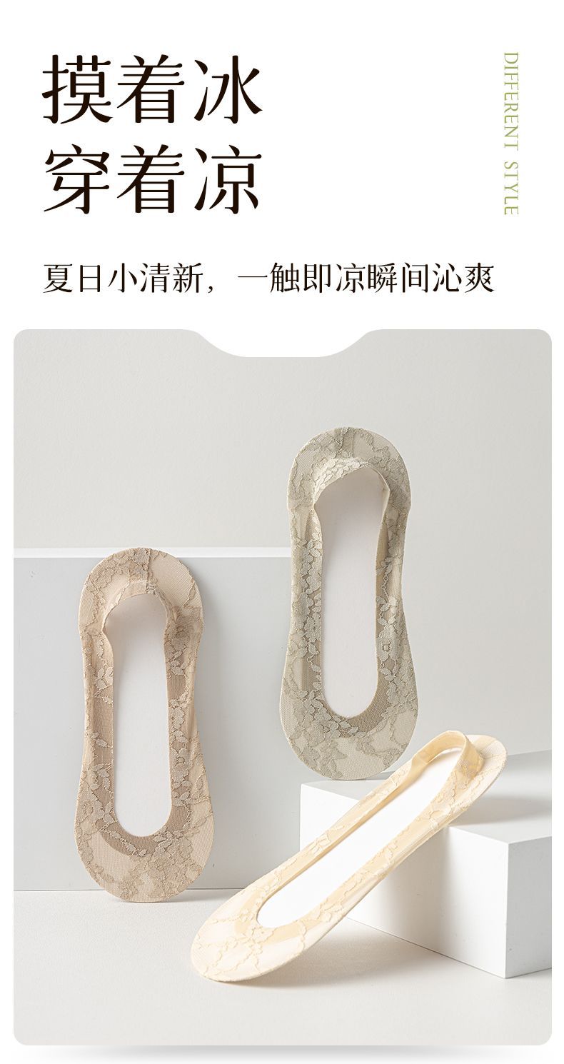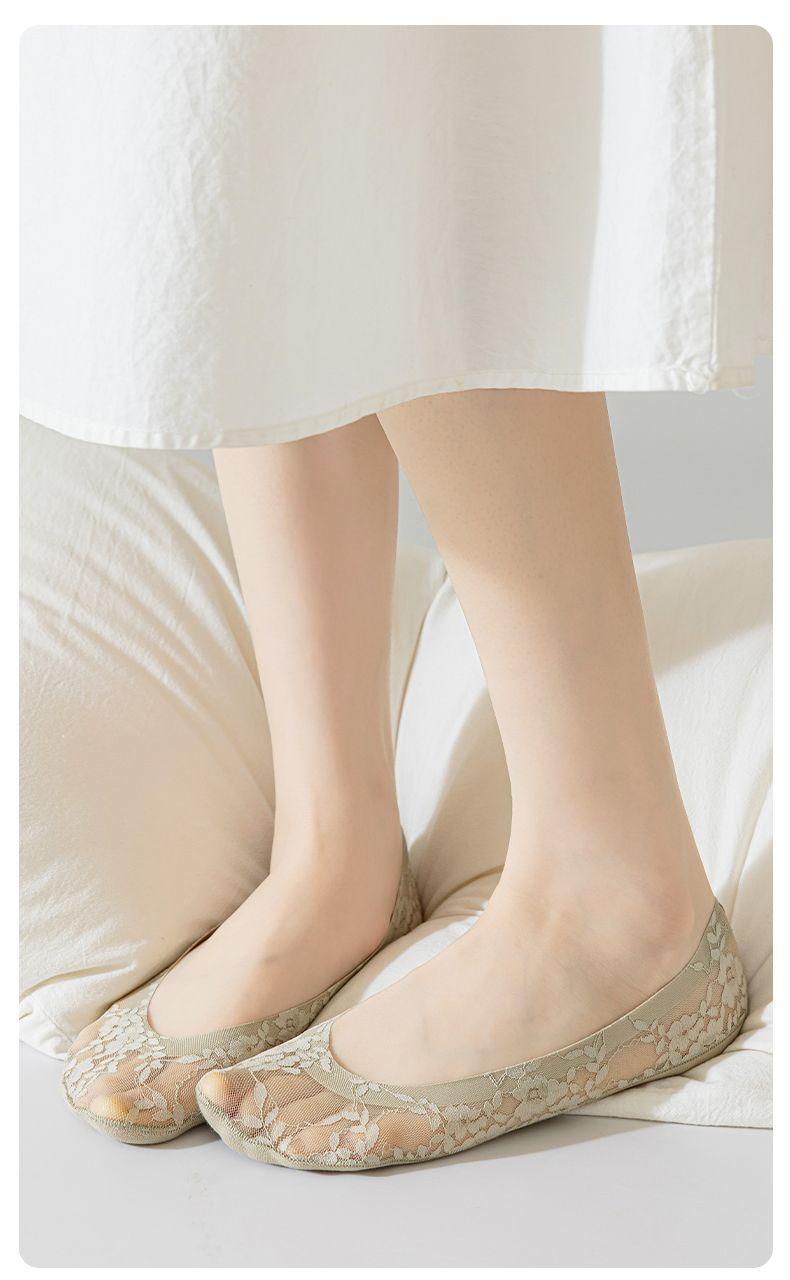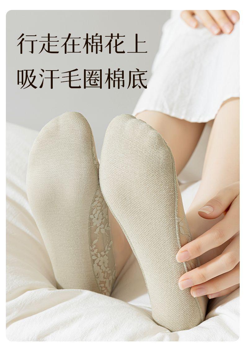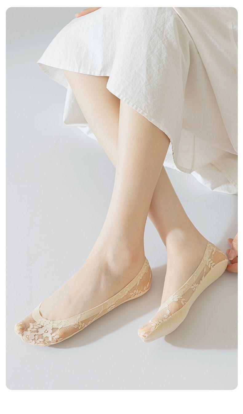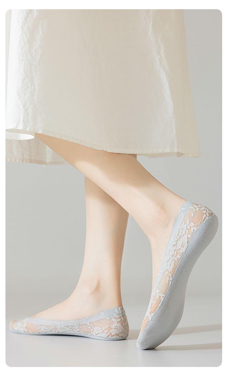 Calcetines náuticos de verano para mujer, finos, antideslizantes, con tacón antideslizante, de algodón puro, bajos, invisibles, con encaje