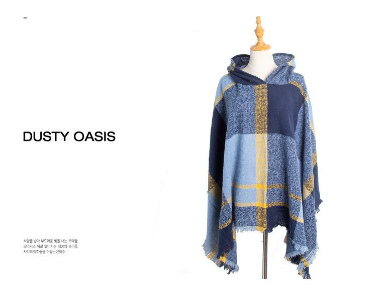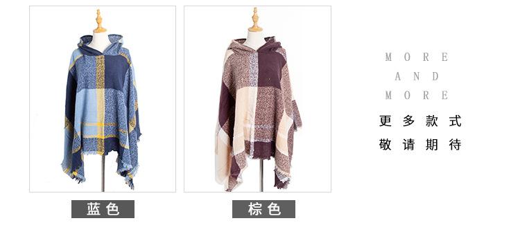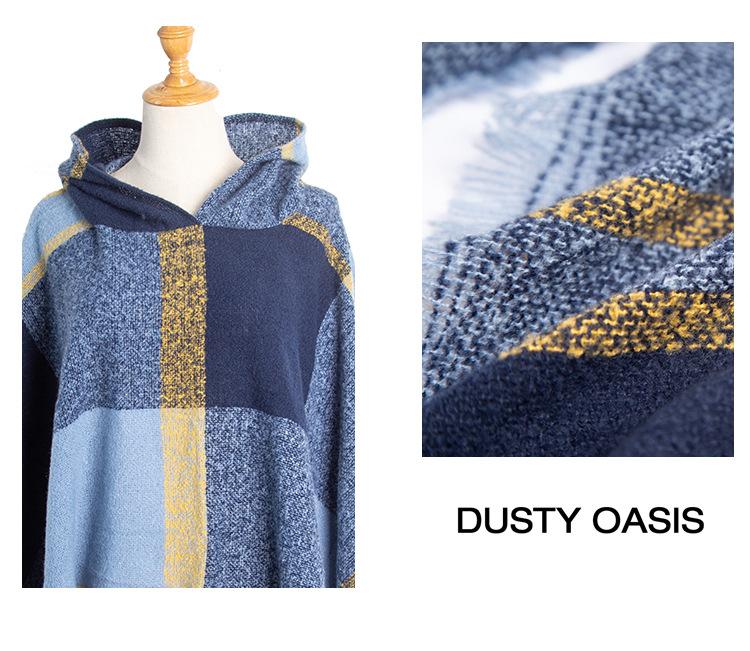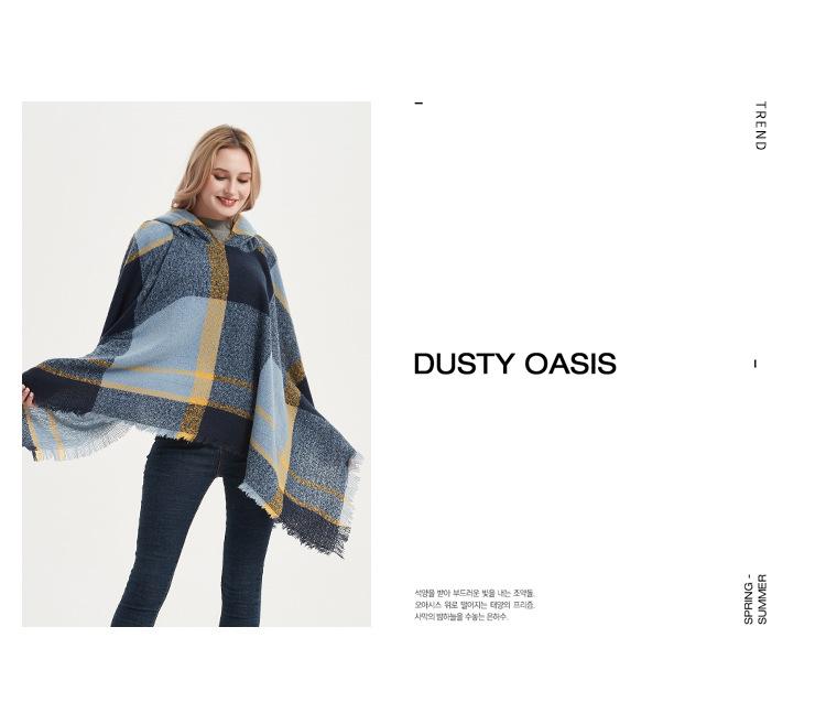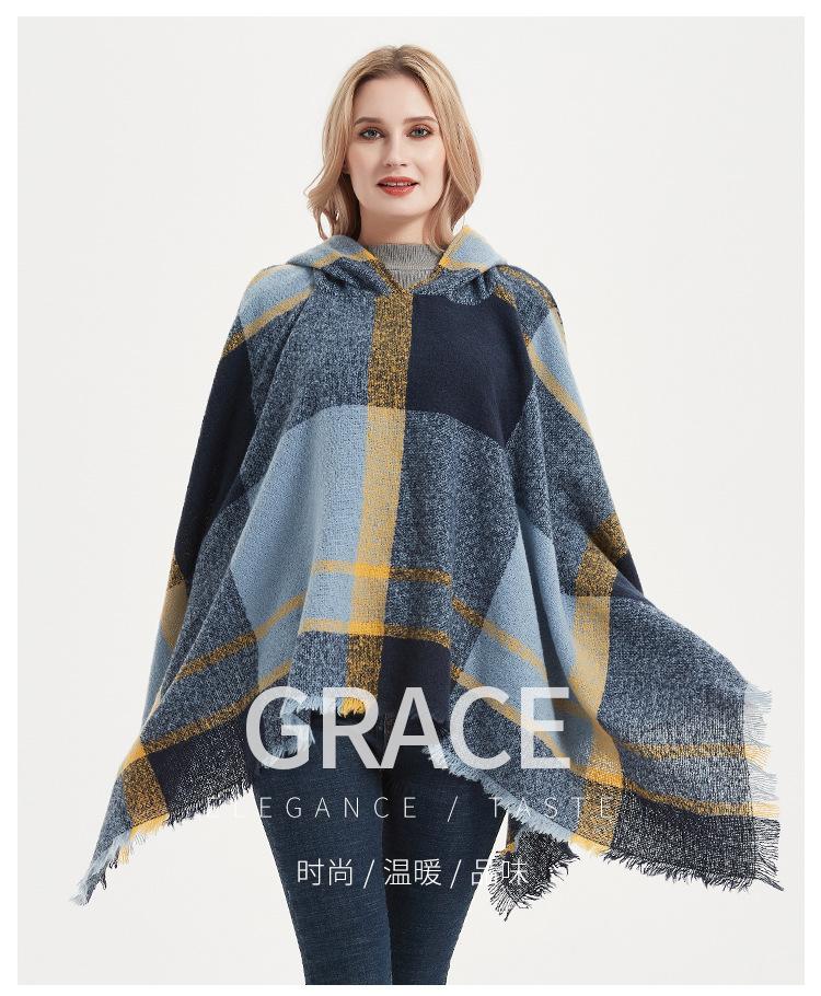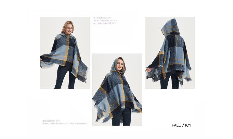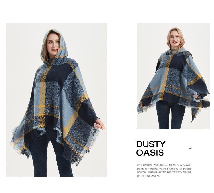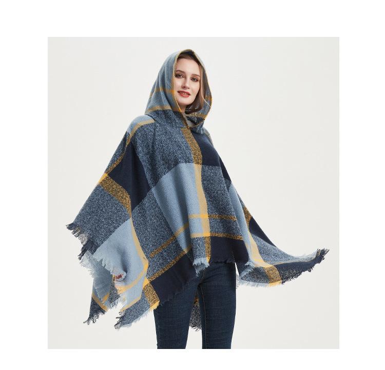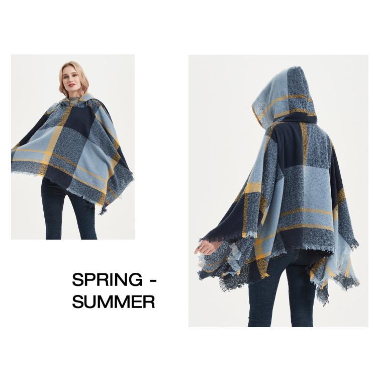 Suministro directo de fábrica al contado, Europa y América, primavera y otoño 2021, nuevo jersey de cuadros grandes para mujer, capa con capucha, chal