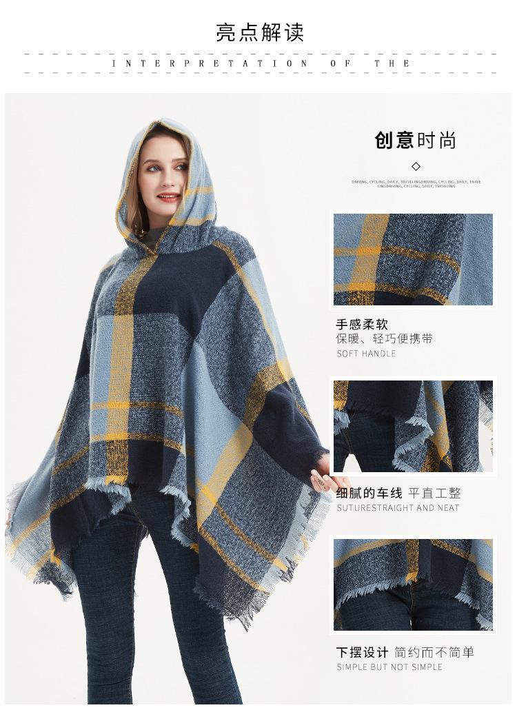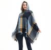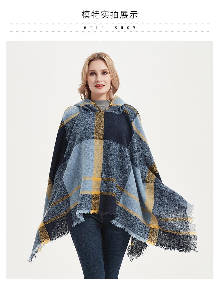 Suministro directo de fábrica, chal de comercio exterior, nuevo, europeo y americano, primavera y otoño, invierno, hilo circular, capa con capucha a cuadros de poliéster completo