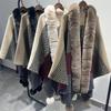 Capa dividida con borlas espinosas y cuadros gruesos para mujer, nueva capa dividida de otoño e invierno de Europa y América, comercio exterior de Amazon