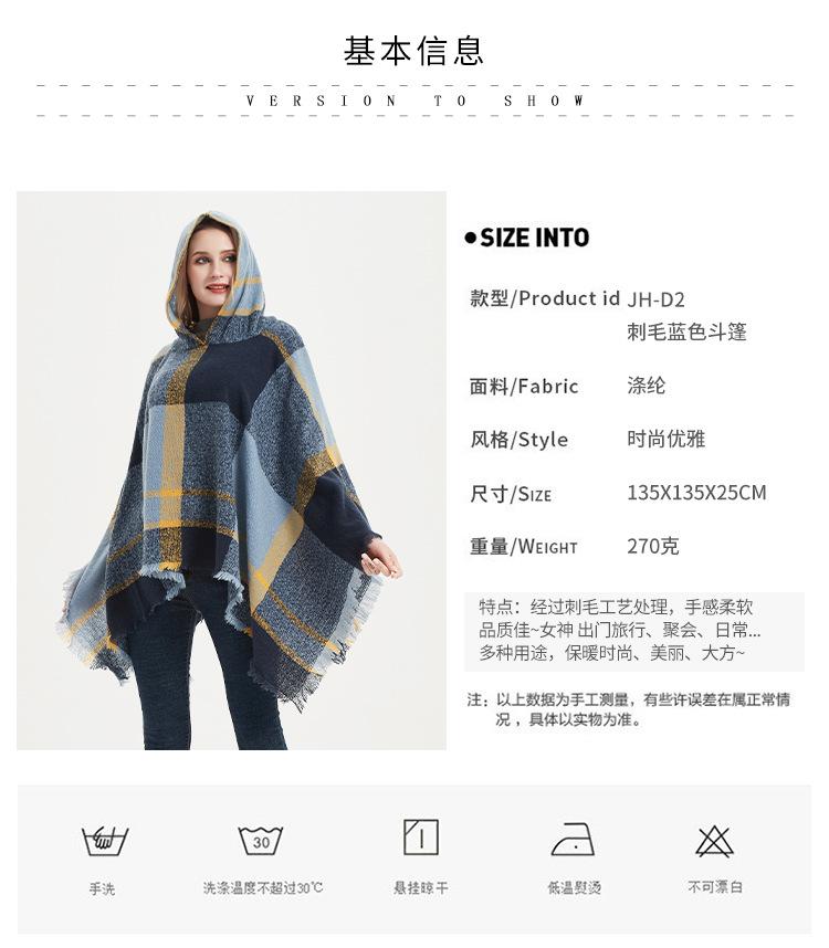 Venta directa de fábrica, comercio exterior, nueva capa, estilo europeo y americano, primavera y otoño, invierno, nuevo jersey de piel, capa con capucha a cuadros, chal