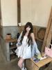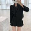 Traje informal holgado de primavera con chaqueta y falda corta de cintura alta, dos piezas.