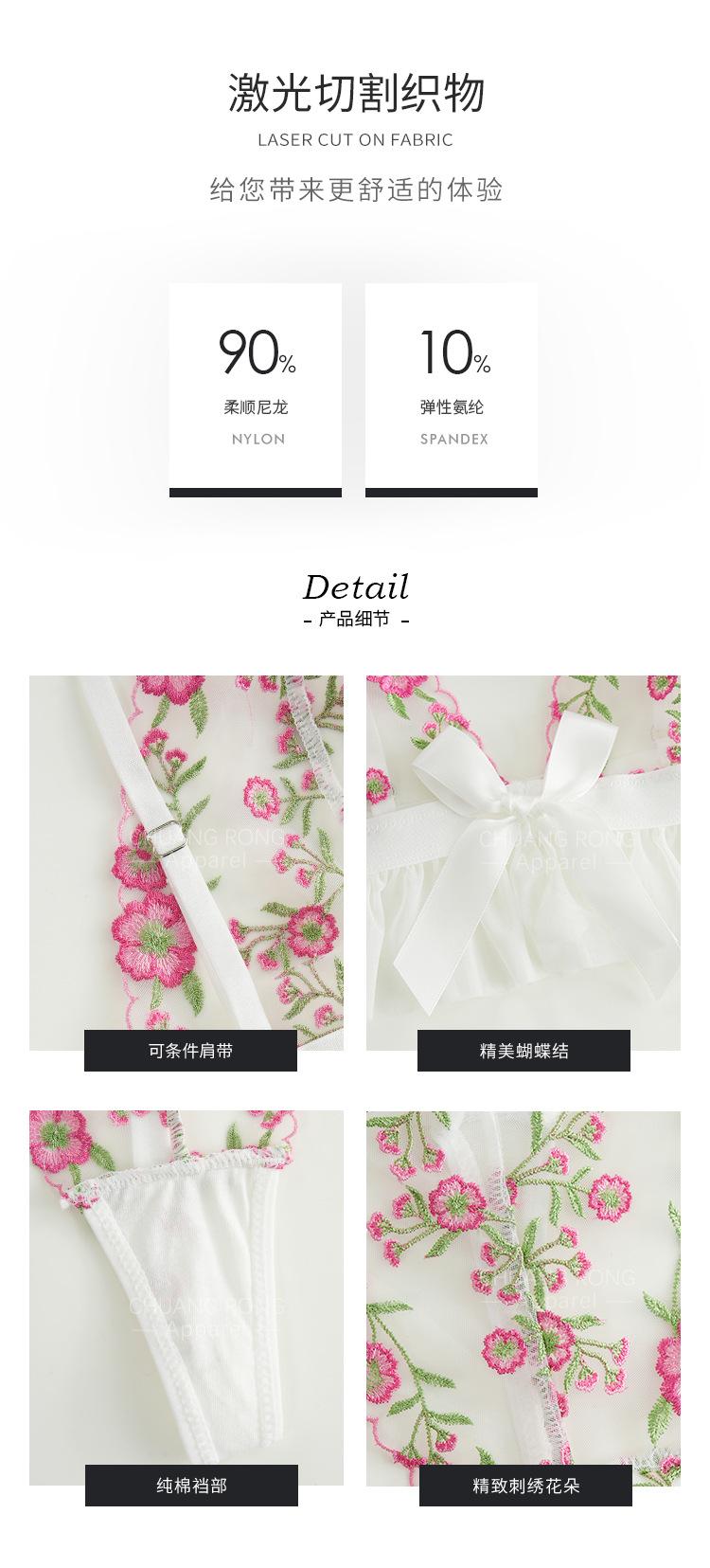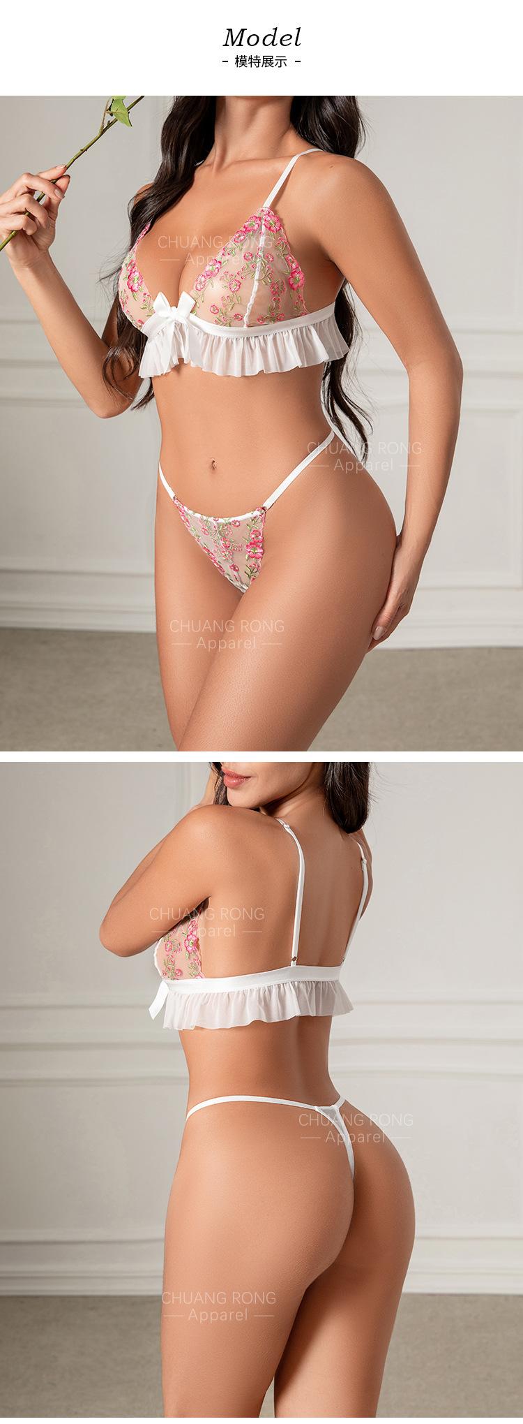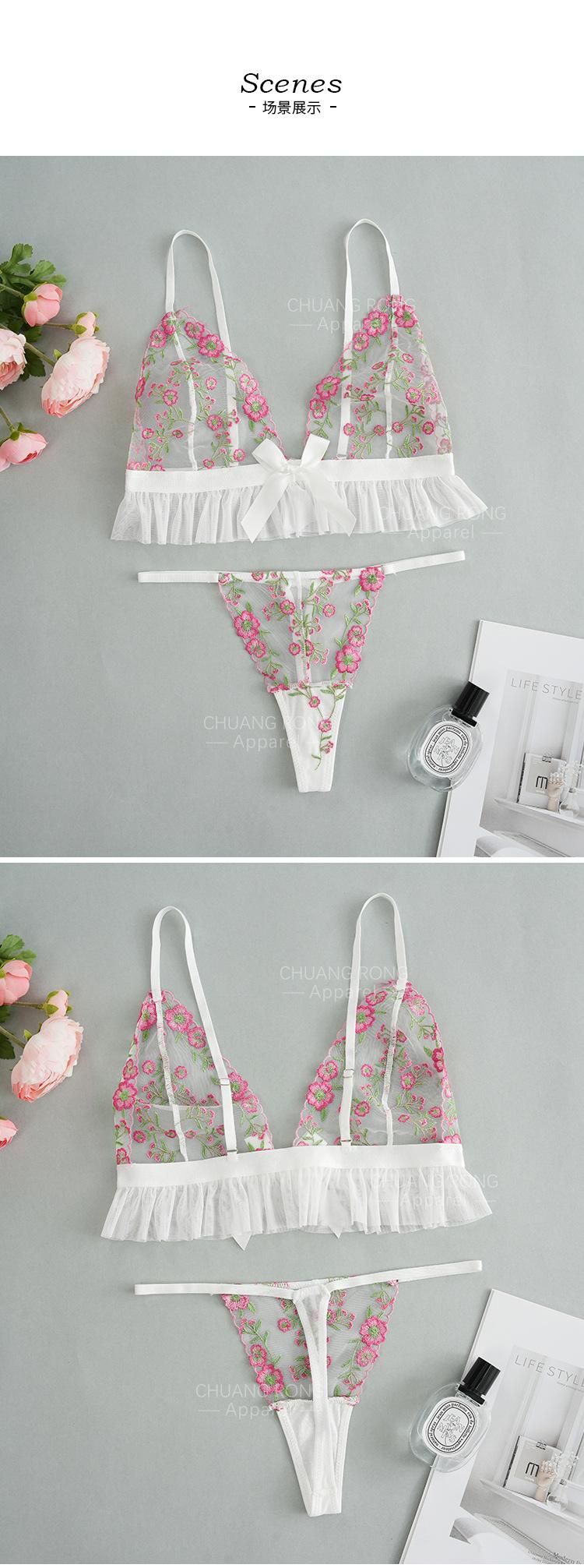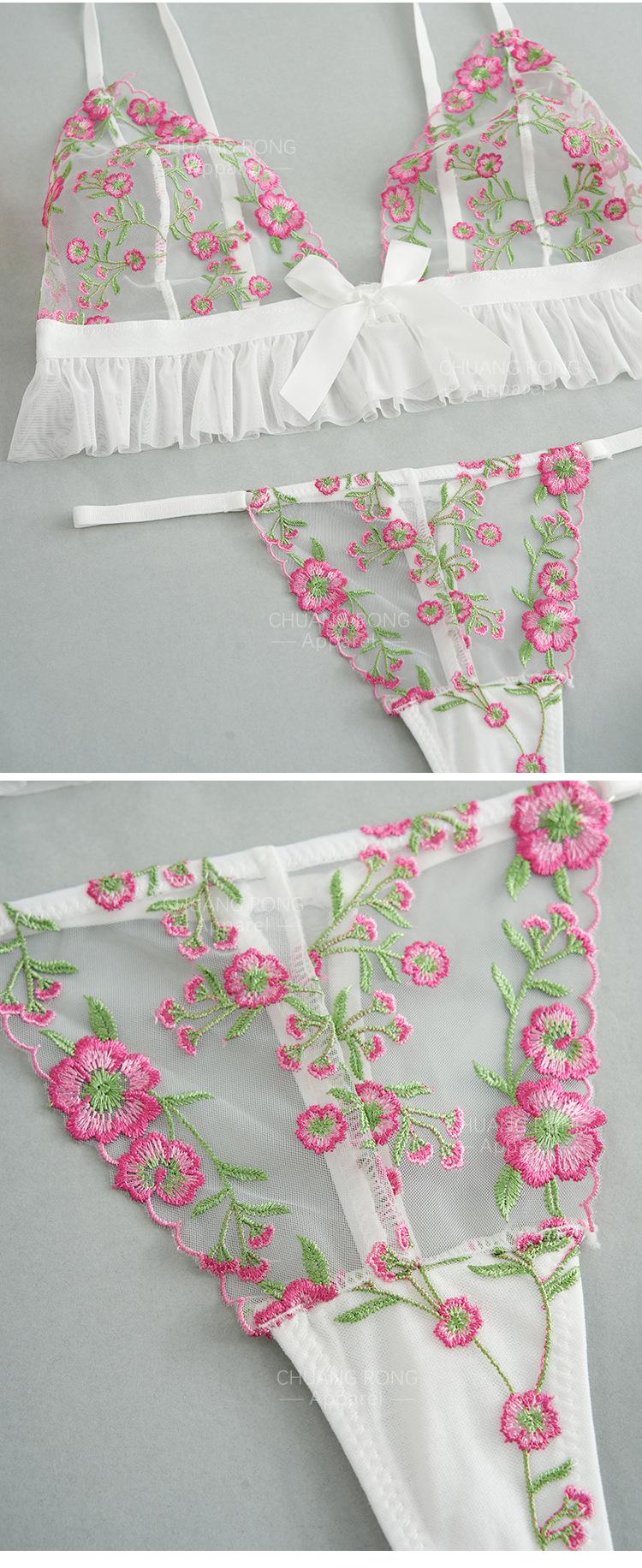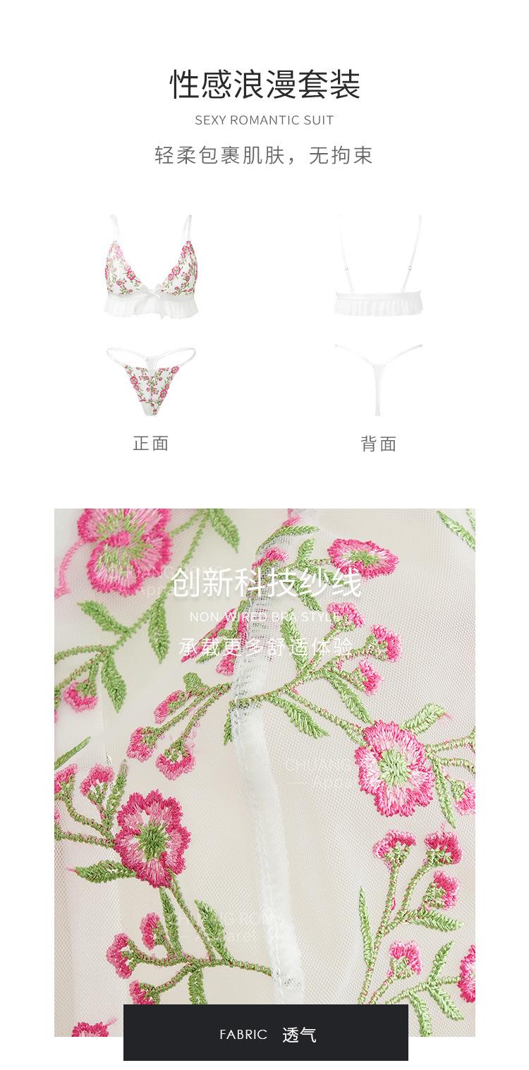 Conjunto de Lencería de Talla Grande Europea y Americana Sexy Exquisito Malla Bordada Perspectiva Tentación Recoger Sujetador para Mujer