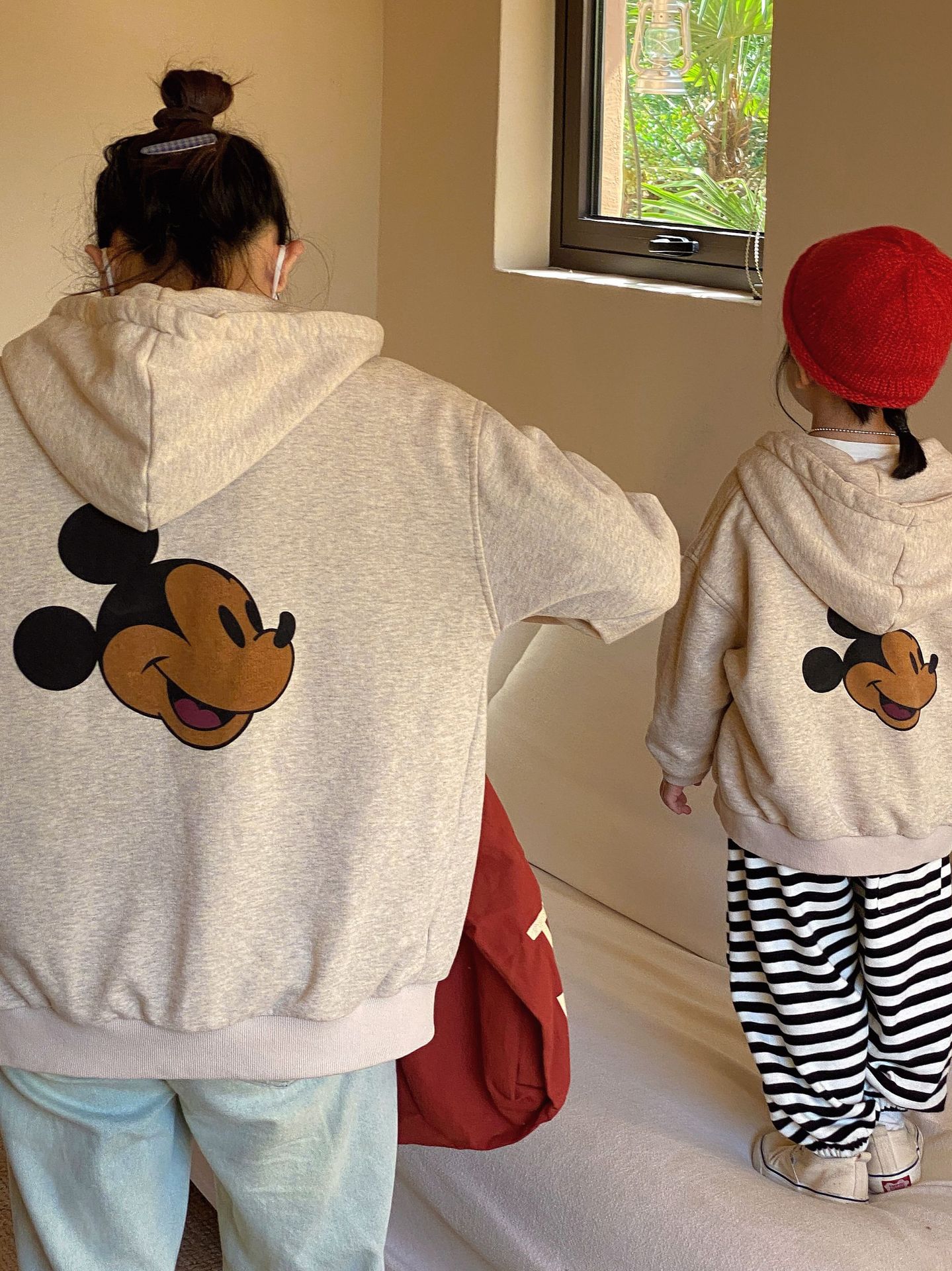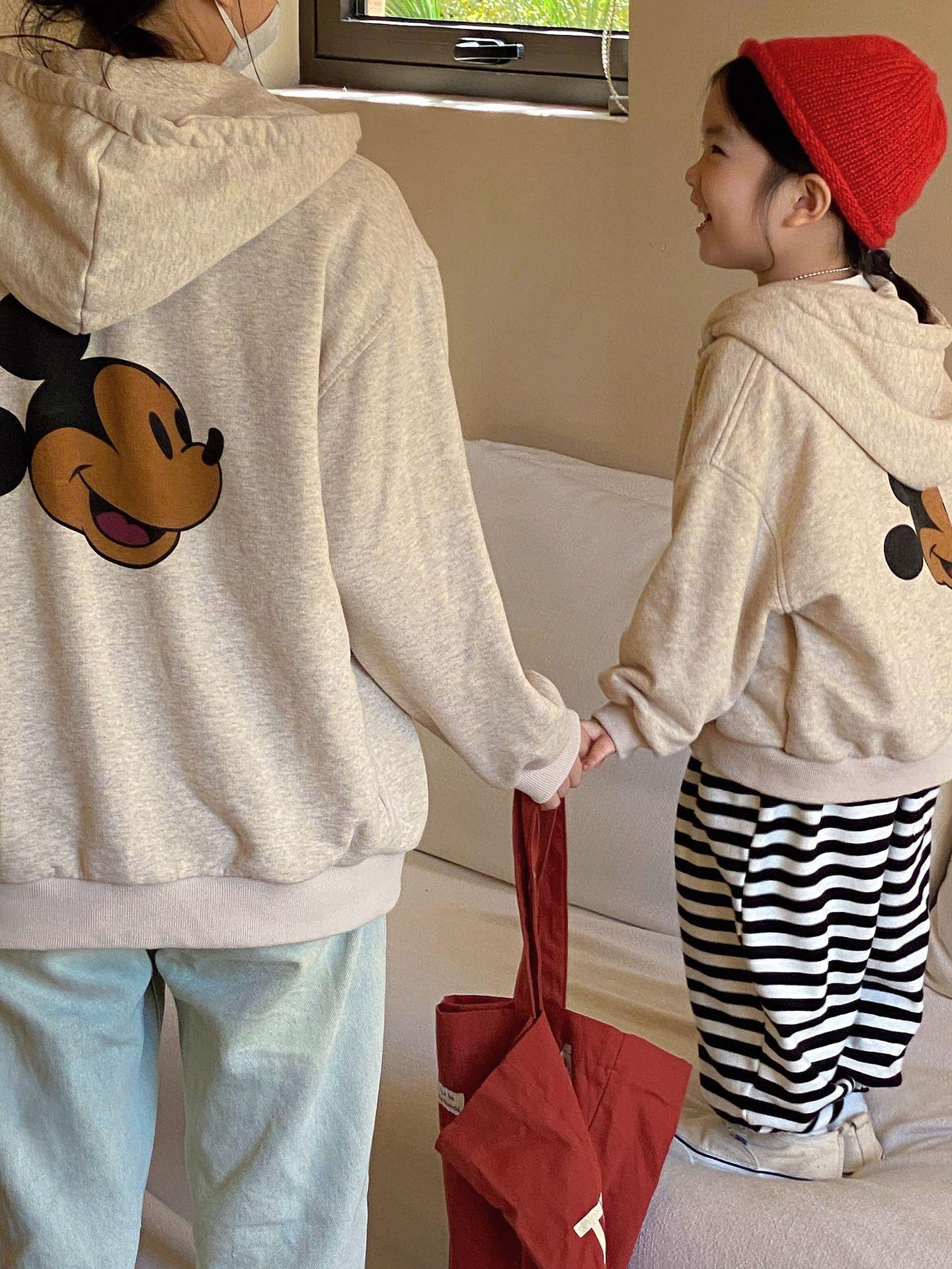 Otoño 2023 nuevo suéter holgado con capucha de dibujos animados para niños y niñas, chaqueta casual con cremallera, camisa para mamá, ropa para padres e hijos