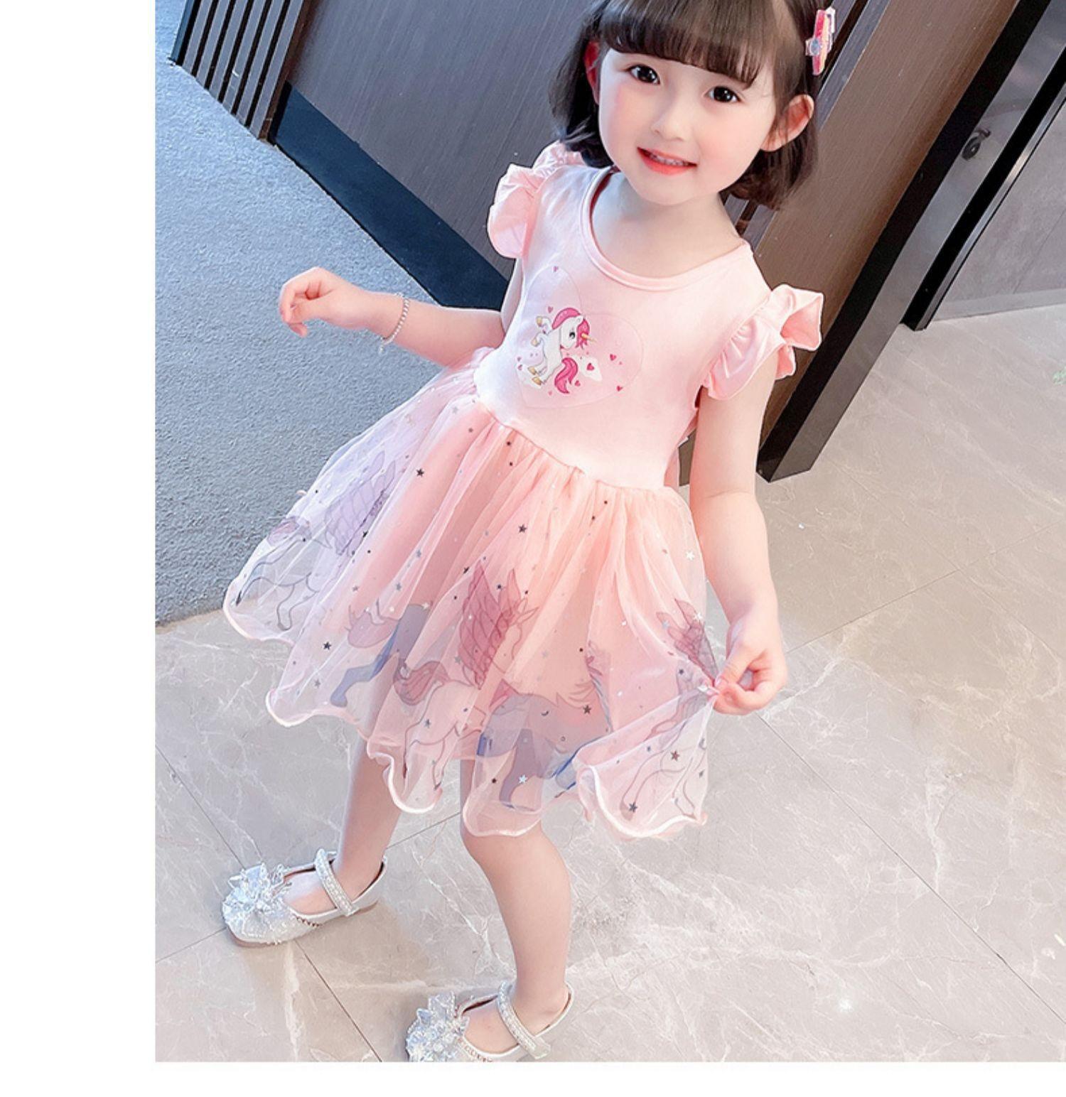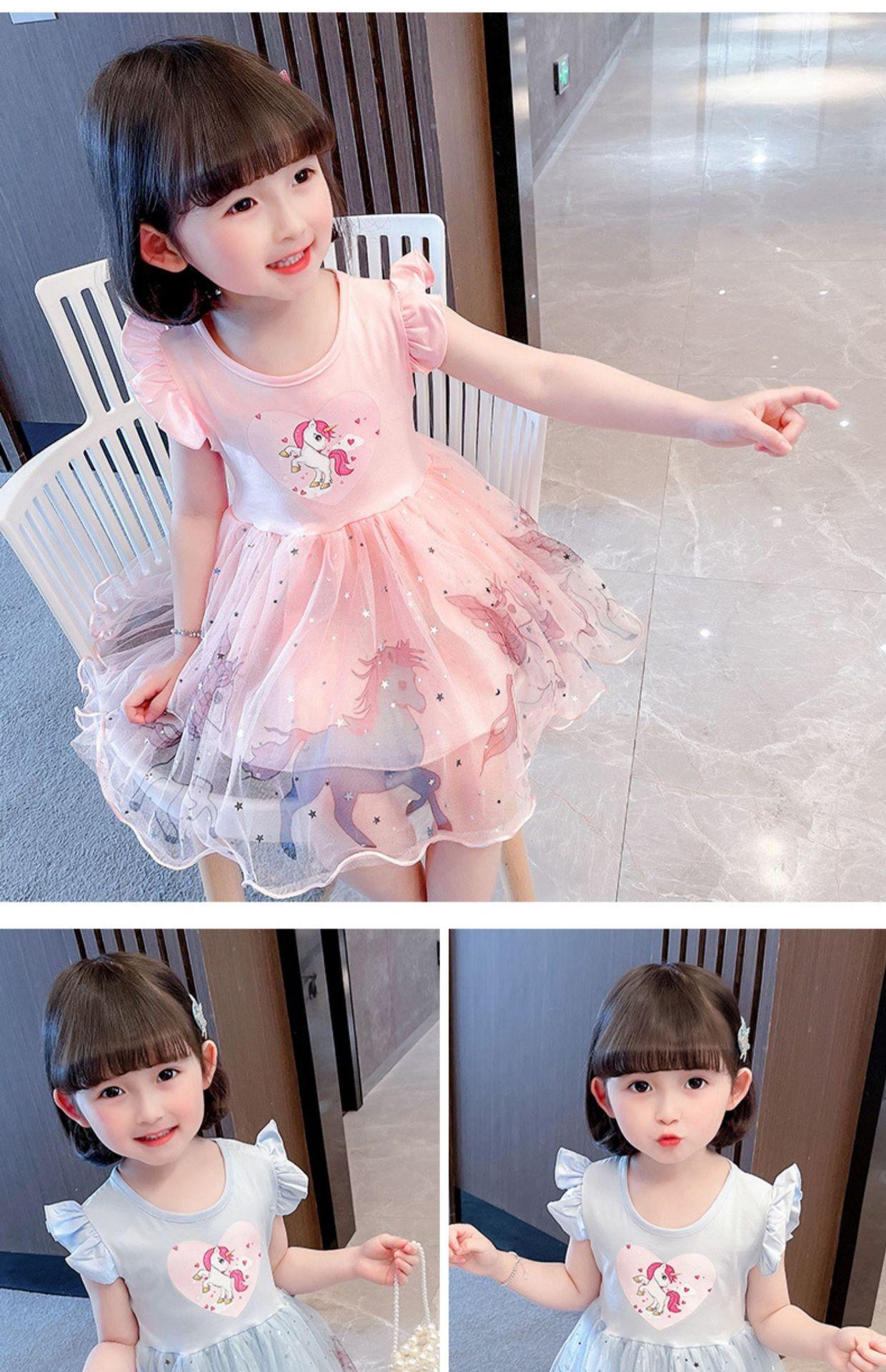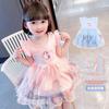 Vestido de Algodón para Niñas 2025 Vestido de Verano Vestido para Niñas Bebé Niños Moda Pony Malla Chaleco Falda de Princesa Trendy