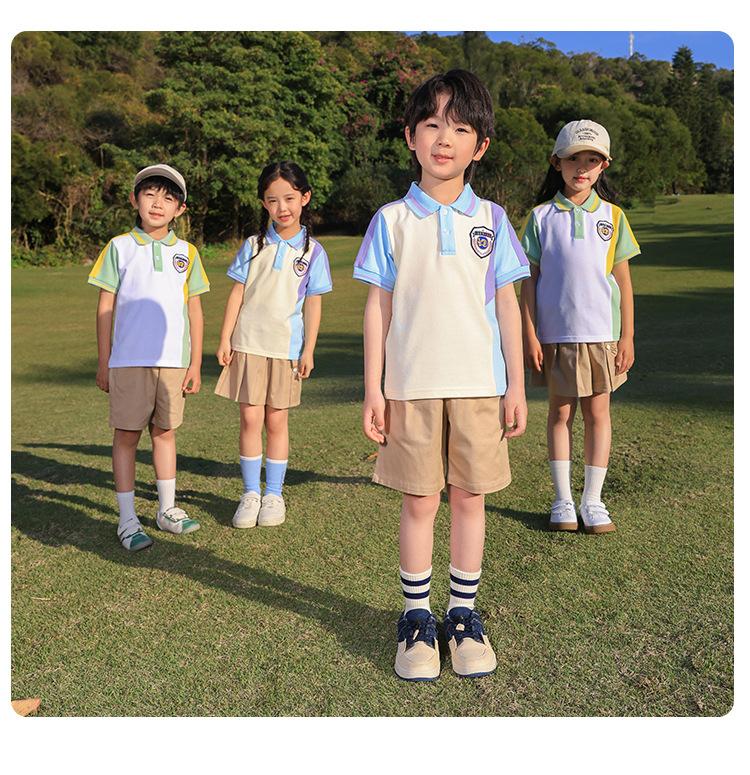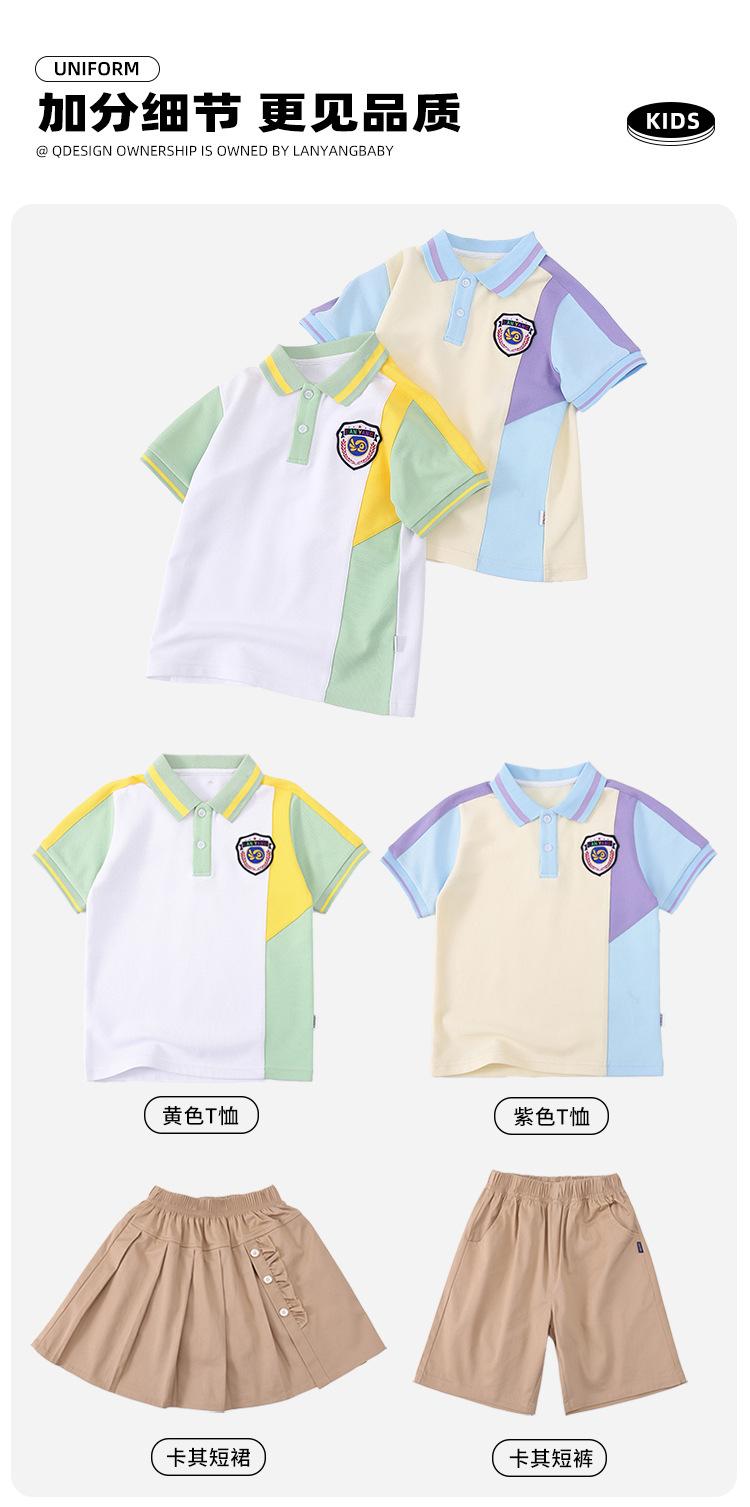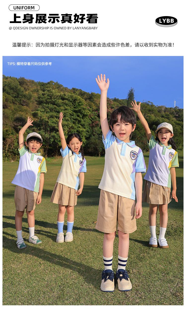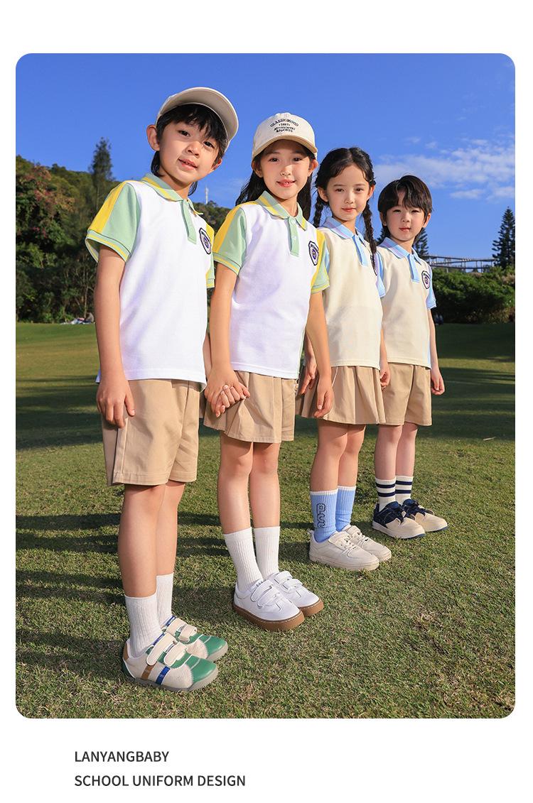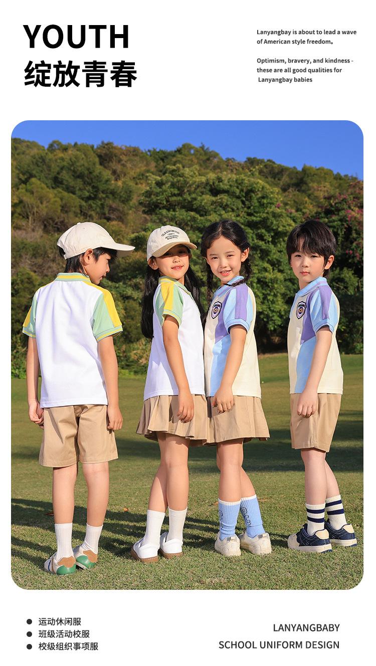 Conjunto de dos piezas de uniforme escolar de verano para estudiante de primaria Lanyang Beibei, uniforme de jardín de infancia, uniforme de clase para estudiante de secundaria, traje deportivo, personalización