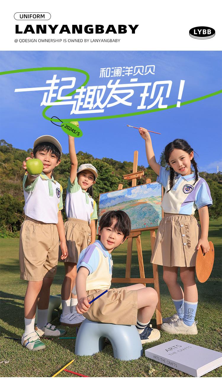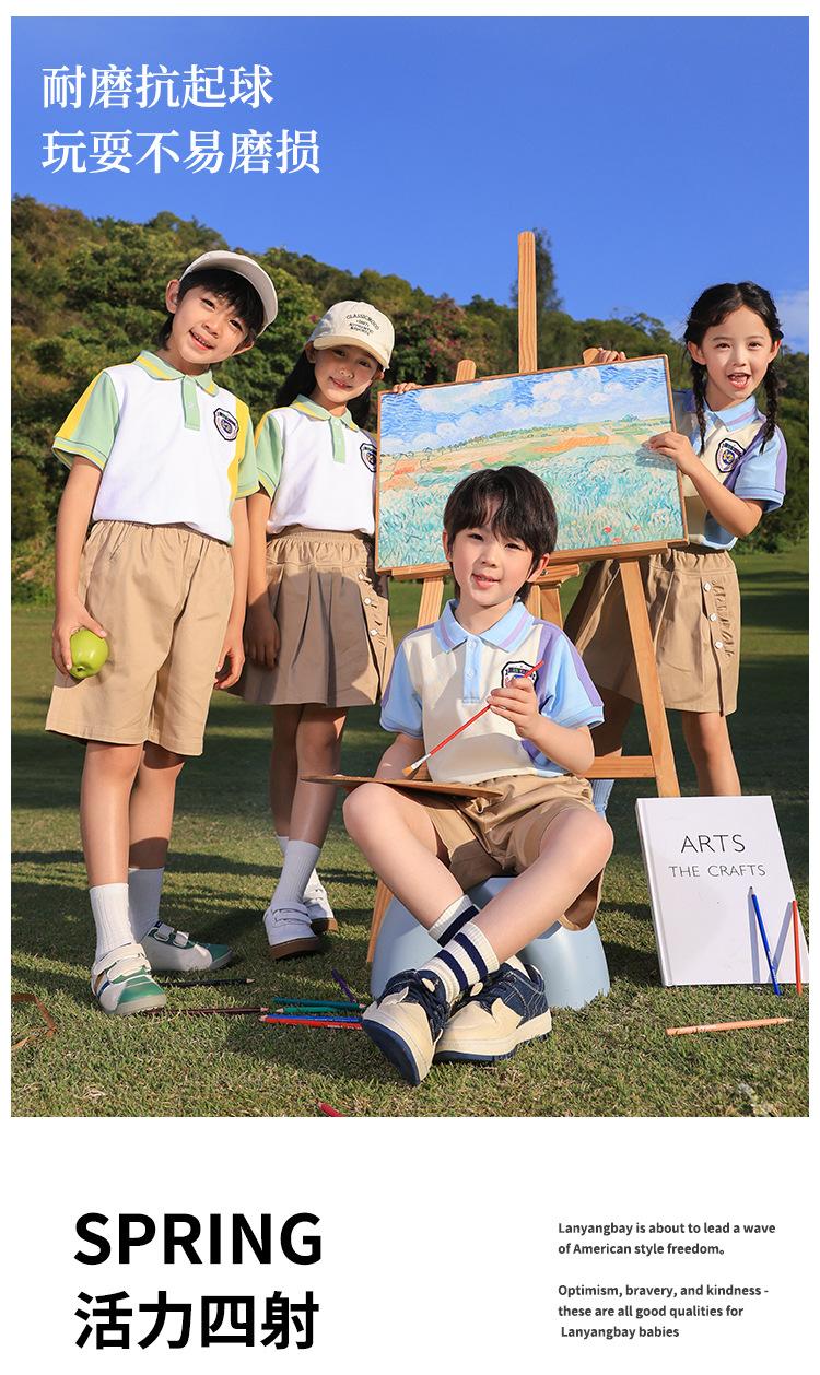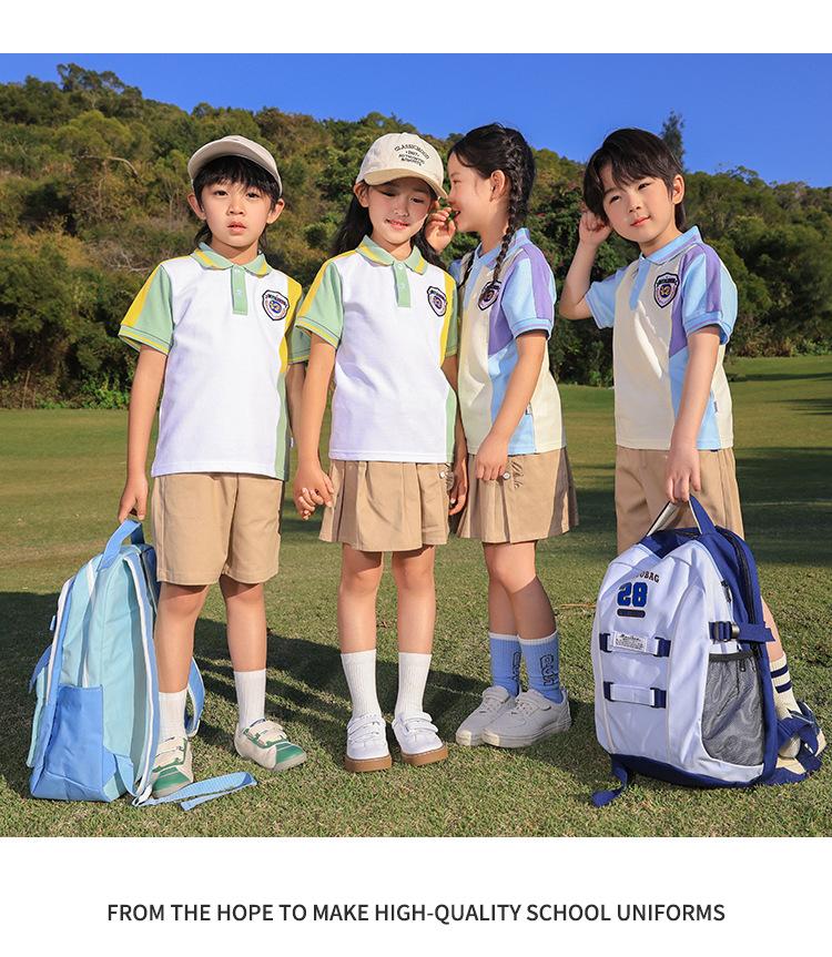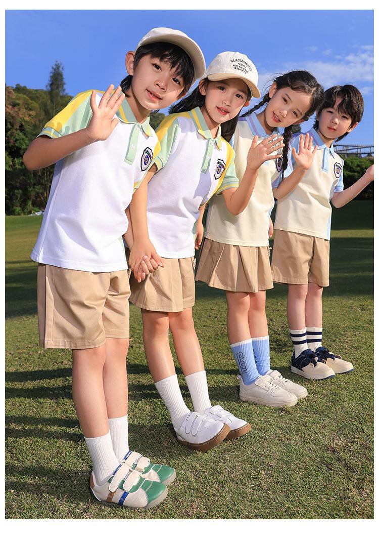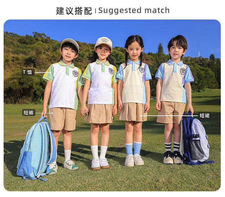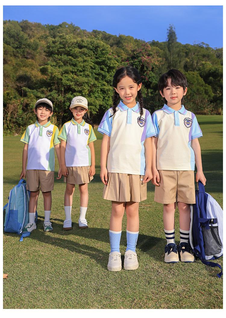 Conjunto de dos piezas de uniforme escolar de verano para estudiante de primaria Lanyang Beibei, uniforme de jardín de infancia, uniforme de clase para estudiante de secundaria, traje deportivo, personalización
