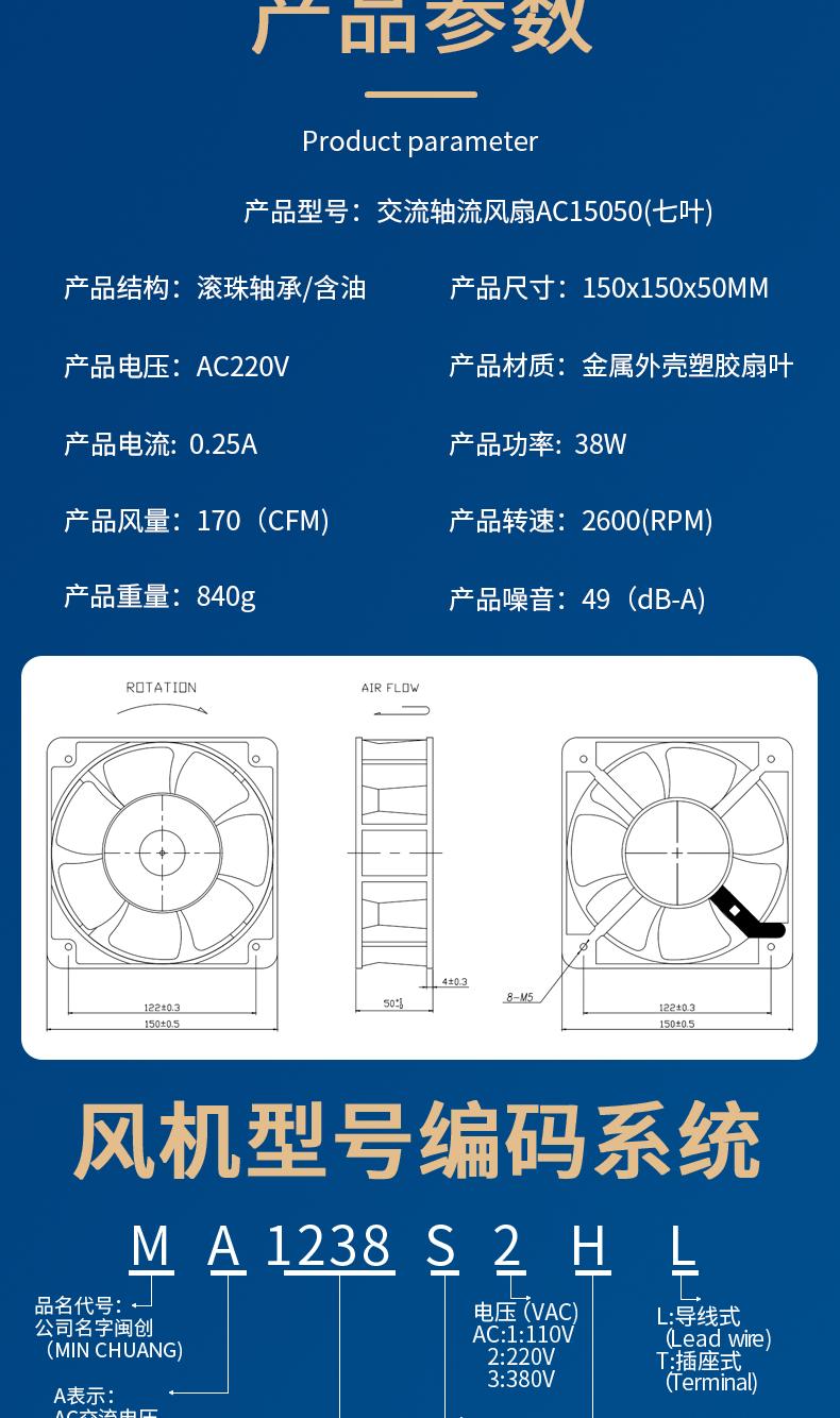 Ventilador AC15050/Ventilador de refrigeración de 7 aspas Ventilador de CA, ventilador axial