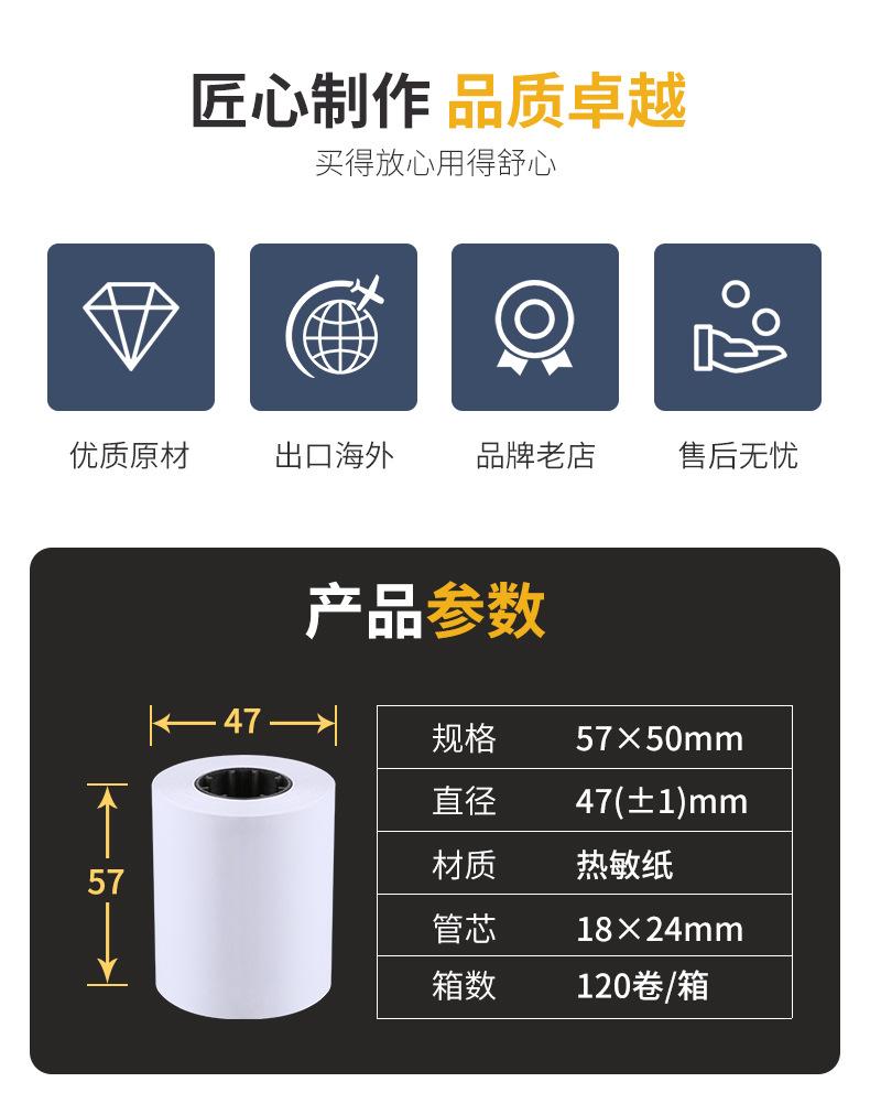 Papel térmico para caja registradora, papel de impresión de 58 mm, papel de recibo de 57 x 50 para caja registradora de supermercado, papel especial para comida para llevar Meituan.