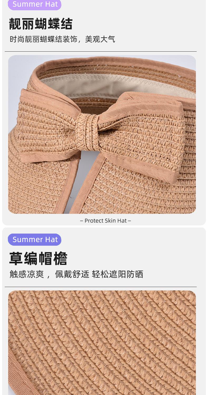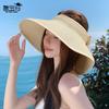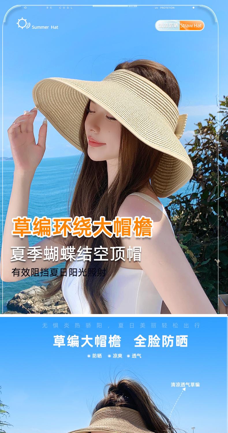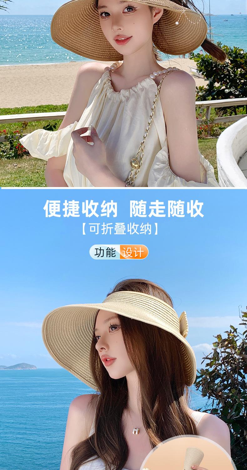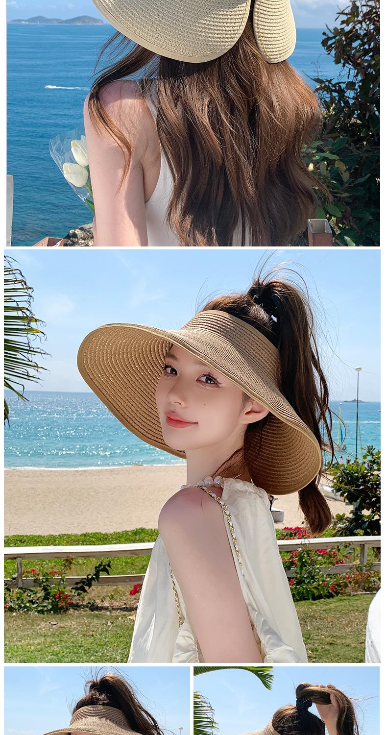 8522 Sombrero de paja de verano para mujer, de ala grande, plegable, con parte superior vacía, para el sol, para exteriores, playa, moda, protección solar