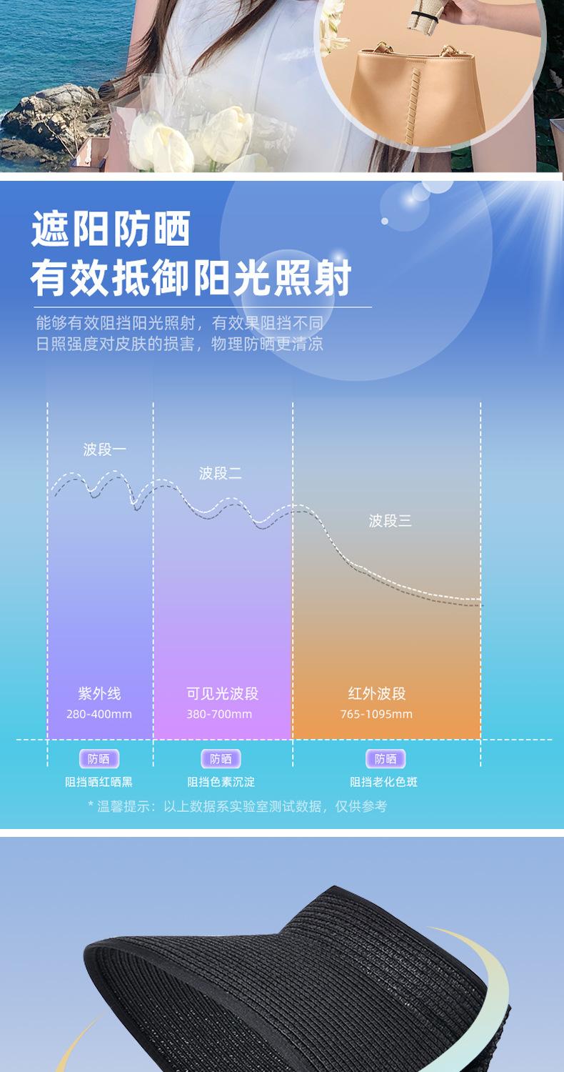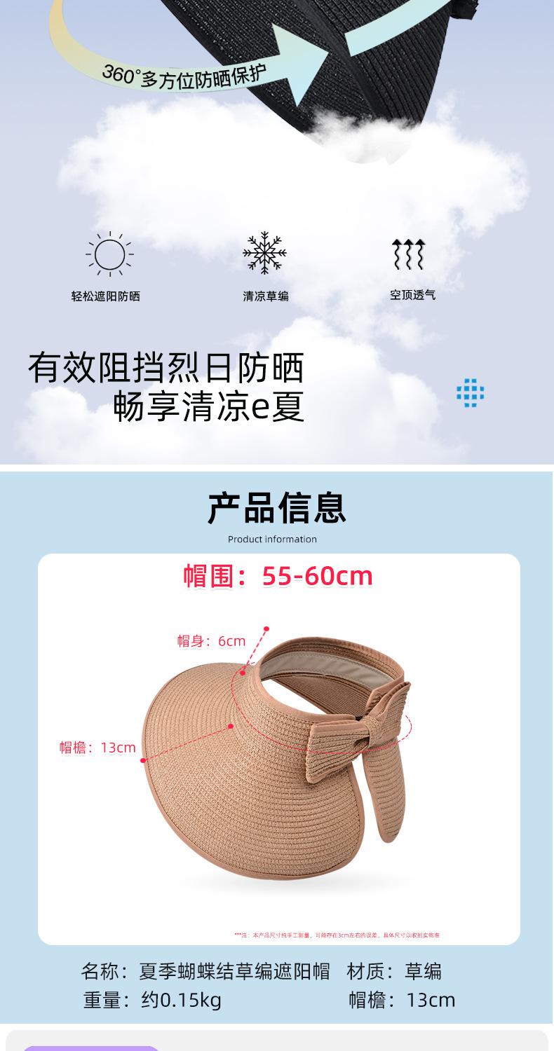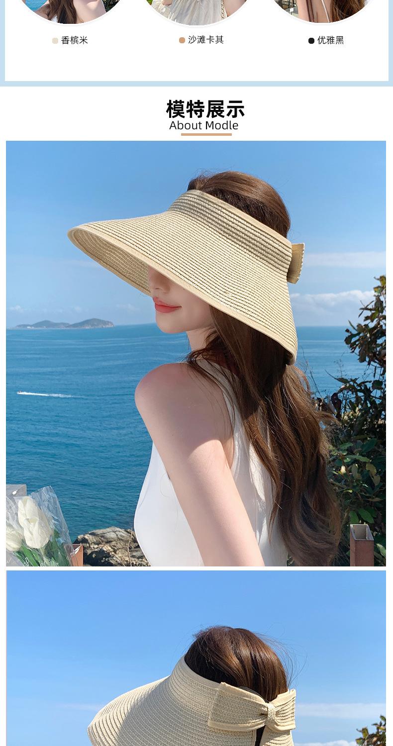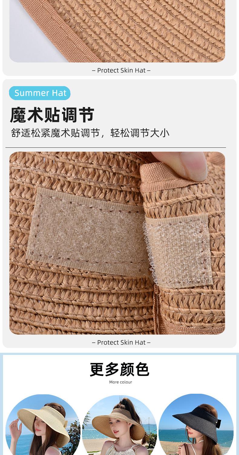 8522 Sombrero de paja de verano para mujer, de ala grande, plegable, con parte superior vacía, para el sol, para exteriores, playa, moda, protección solar