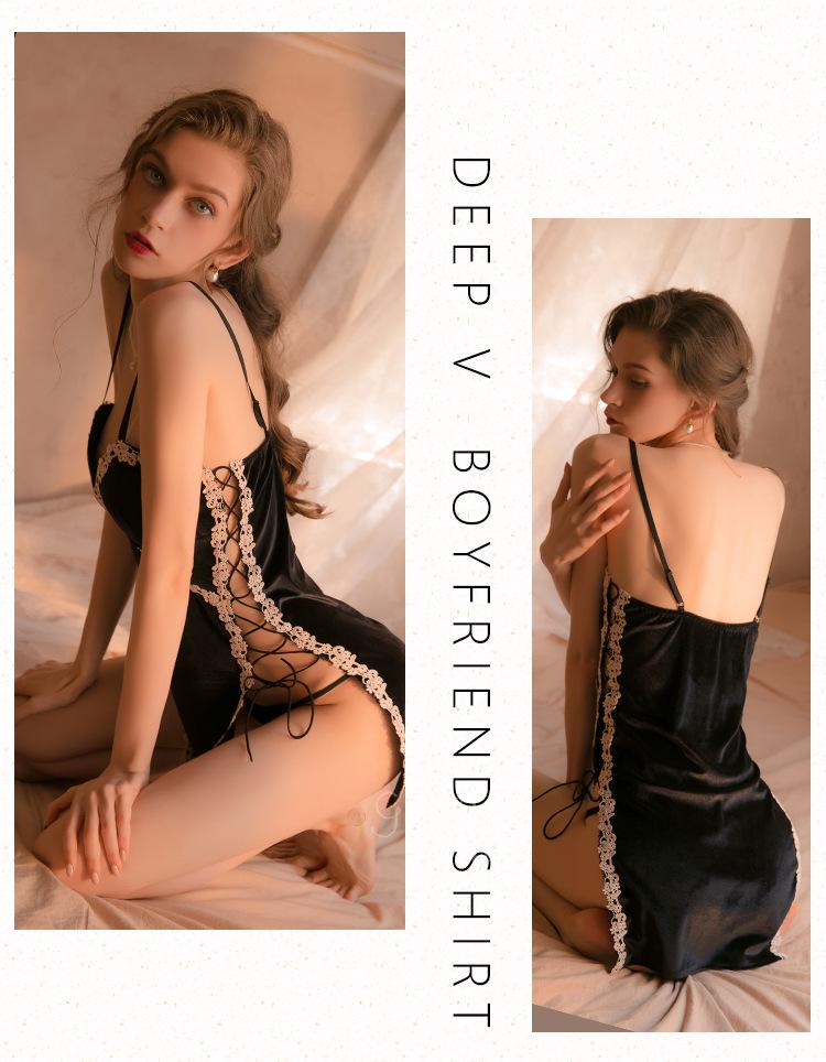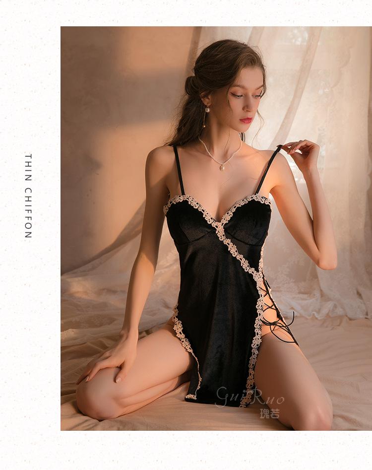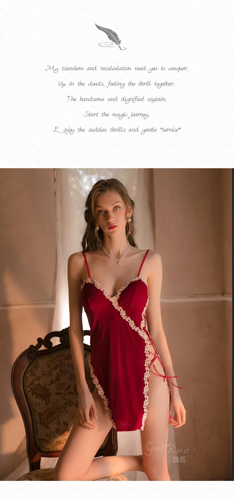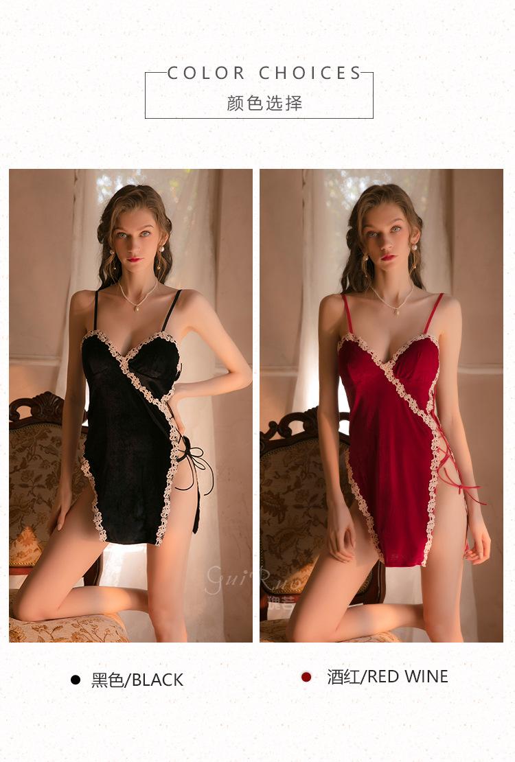 Pijama de terciopelo divertido de otoño e invierno de la marca Guiruo, camisón con tirantes y almohadillas para el pecho divididas para mujer, conjunto de ropa para el hogar para 1593