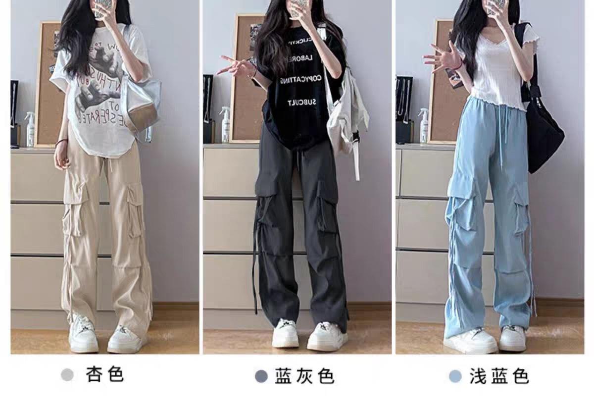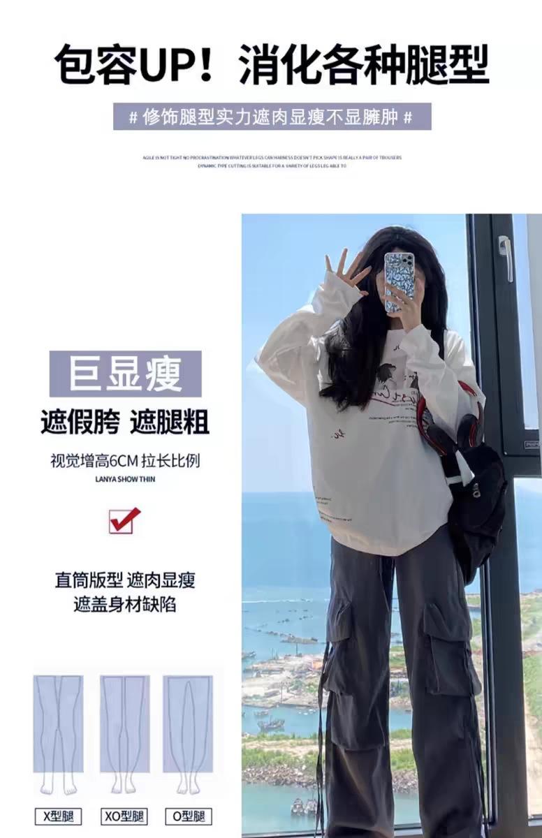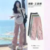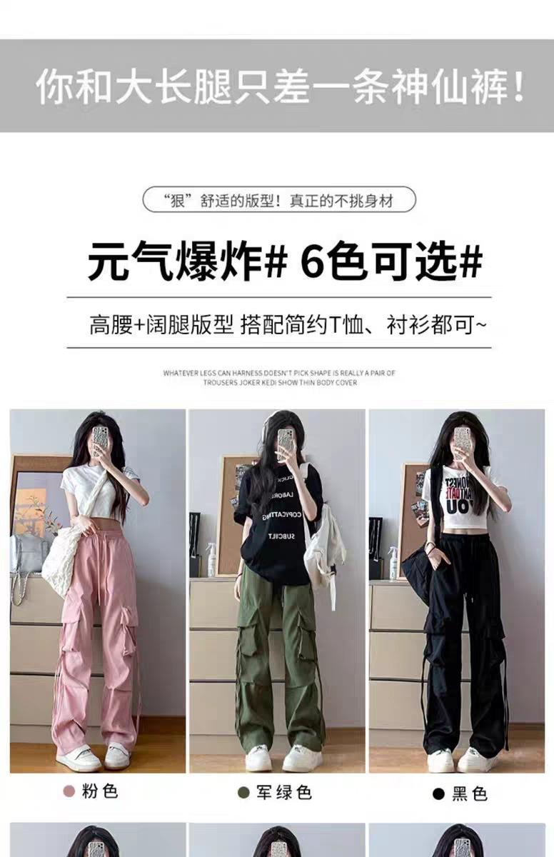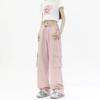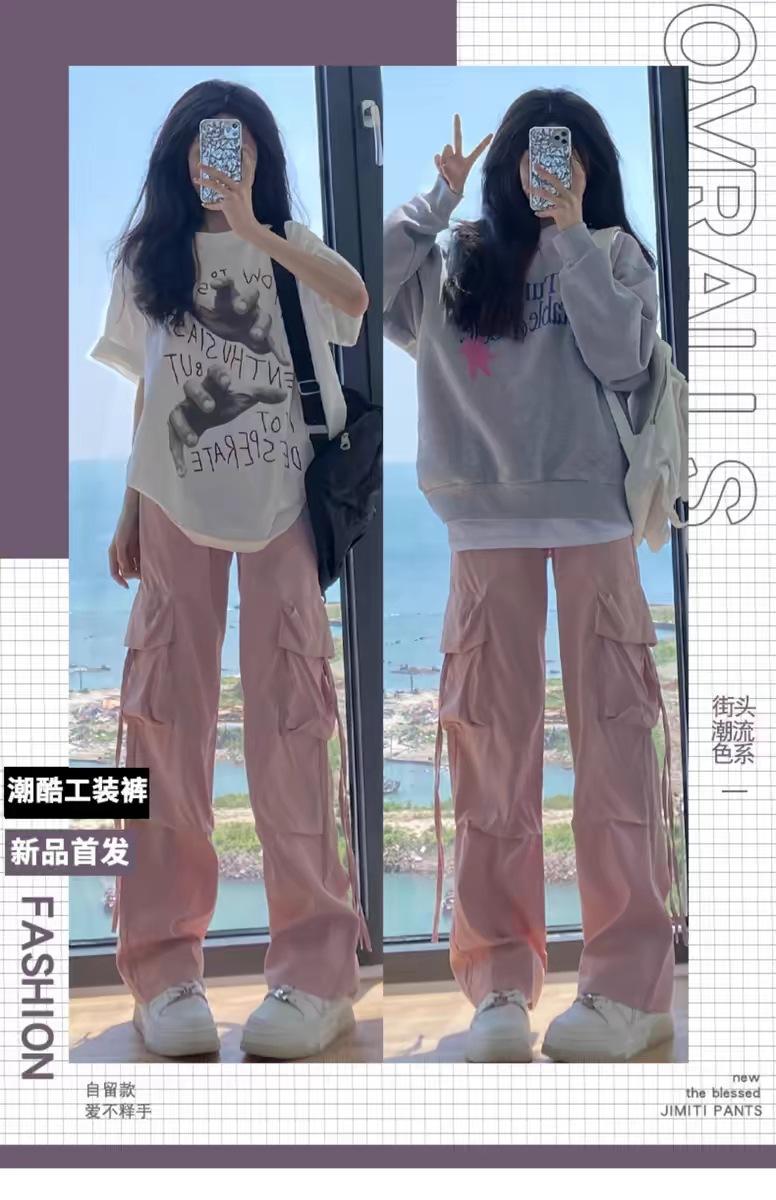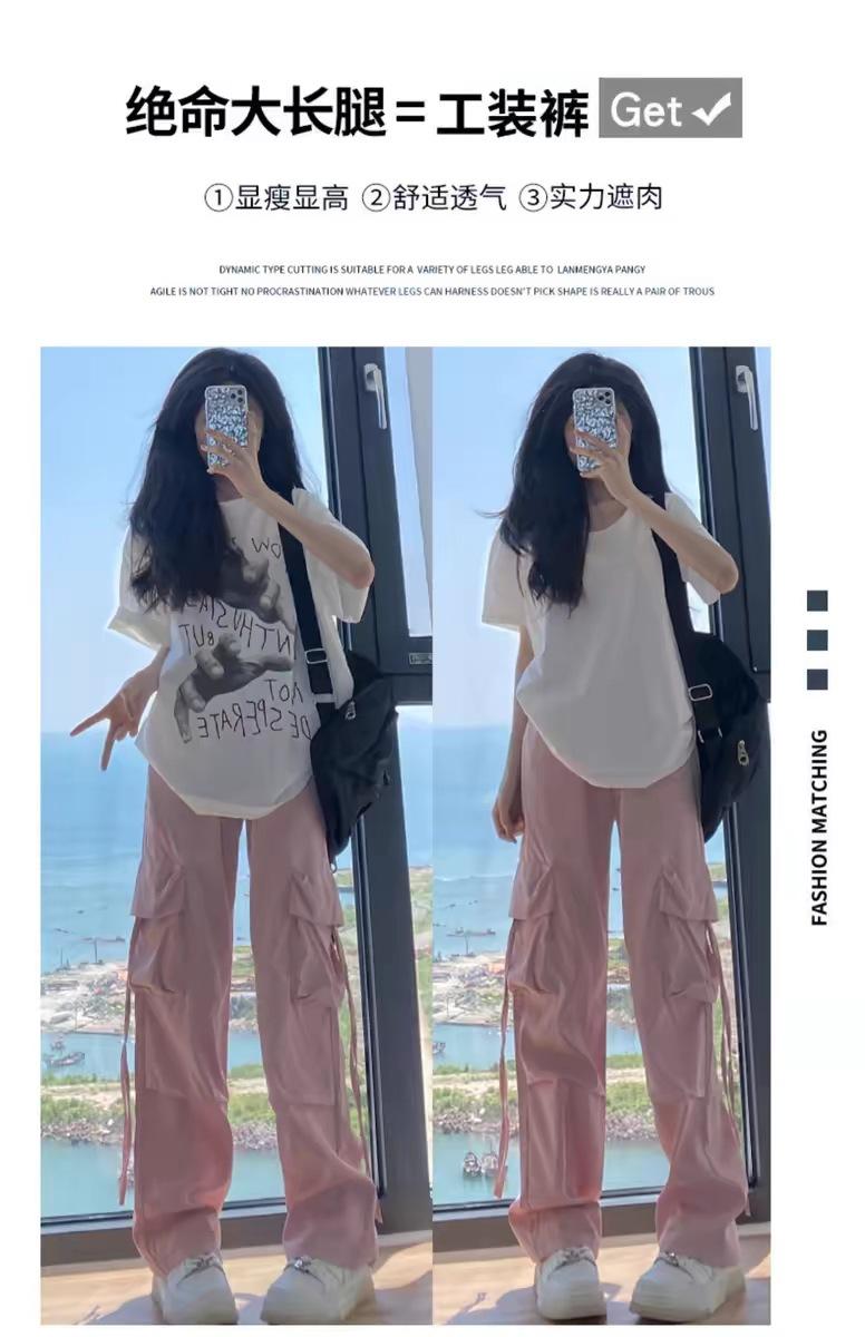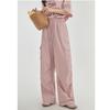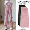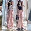 Pantalones Cargo Rosados para Mujer Verano Delgados 2025 Nuevos Cintura Alta Drapeados Secado Rápido Casuales Pierna Ancha Pantalones Deportivos Americanos