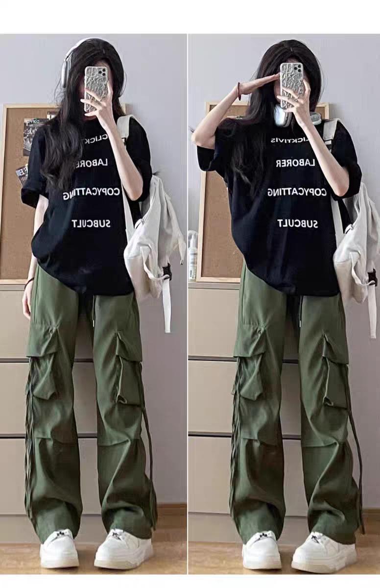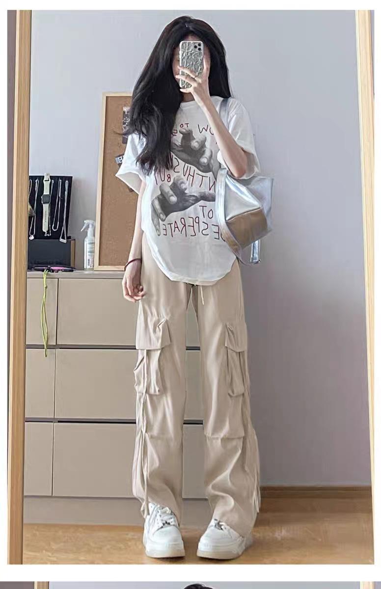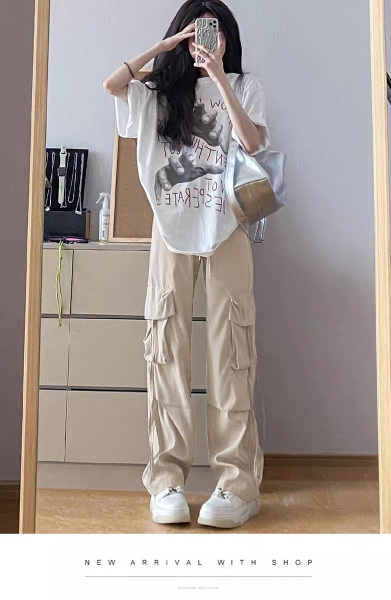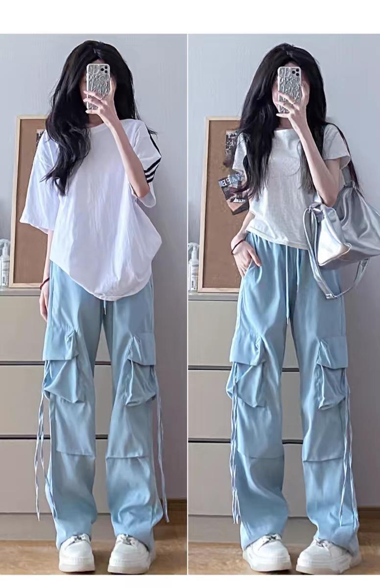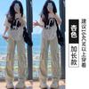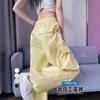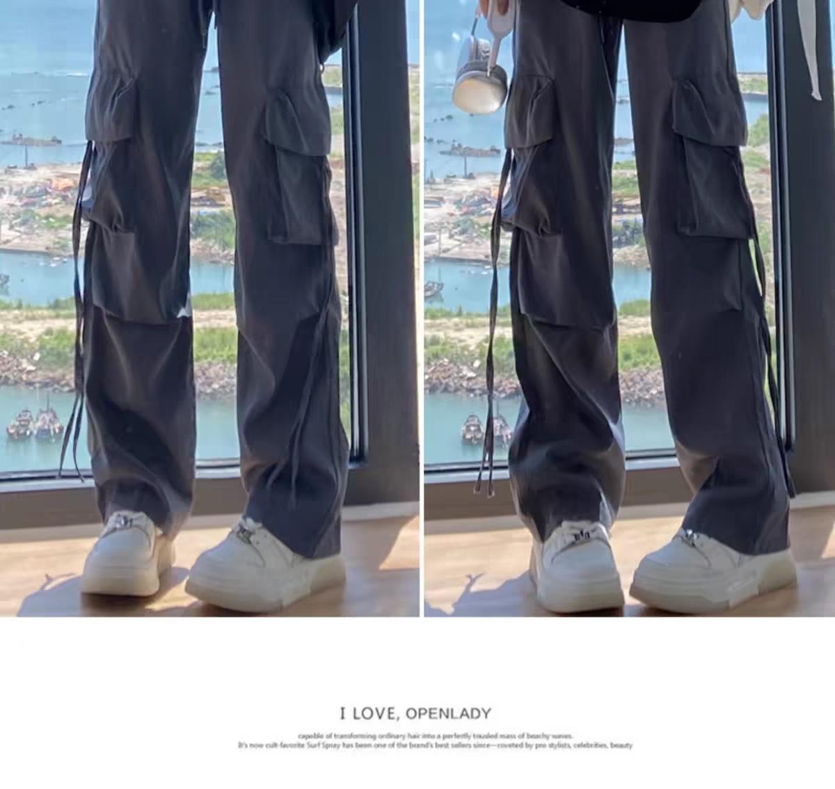 Pantalones Cargo Rosados para Mujer Verano Delgados 2025 Nuevos Cintura Alta Drapeados Secado Rápido Casuales Pierna Ancha Pantalones Deportivos Americanos