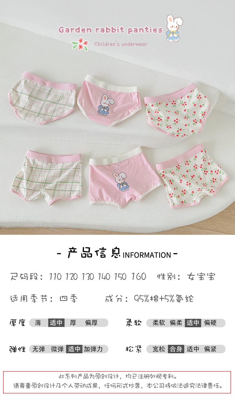 Ropa Interior para Niños al Mayoreo Primavera y Otoño Ropa Interior Boxer de Algodón Puro Tipo A Transpirable de Conejito de Dibujos Animados para Niñas