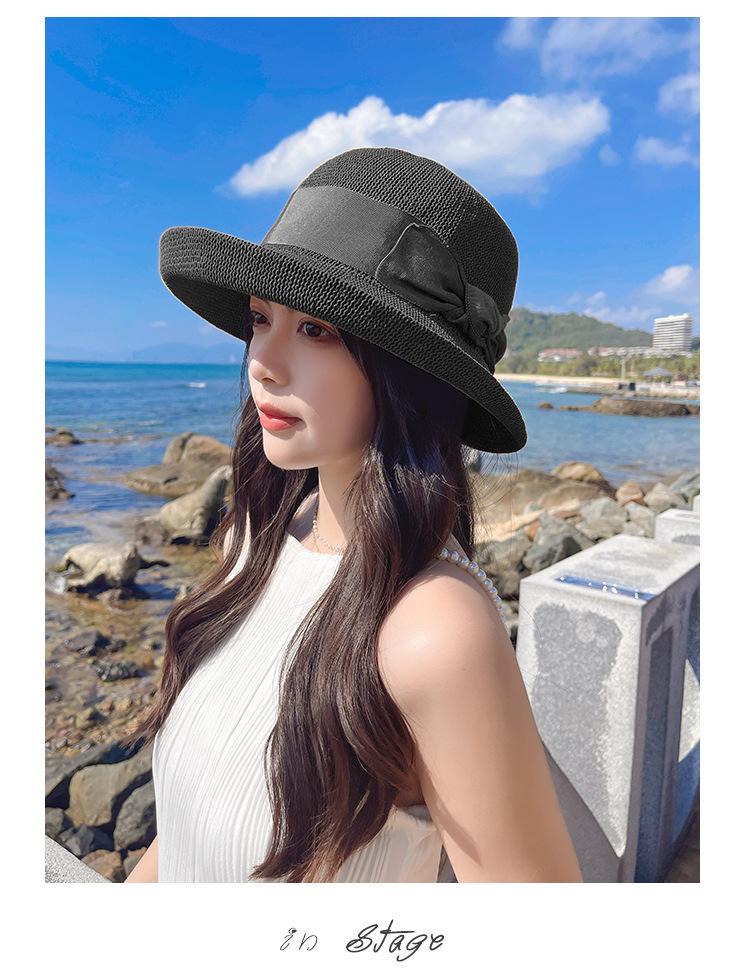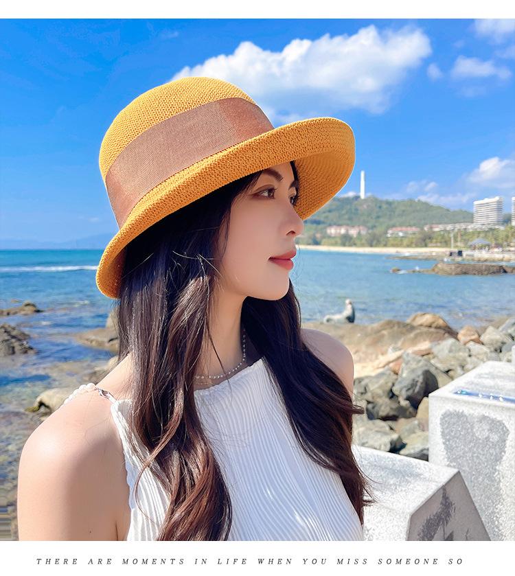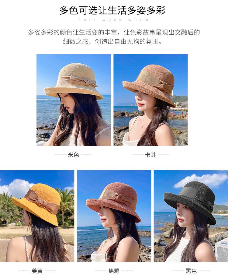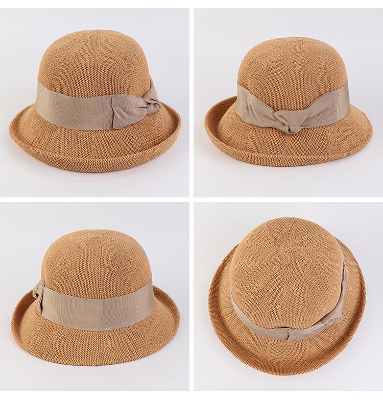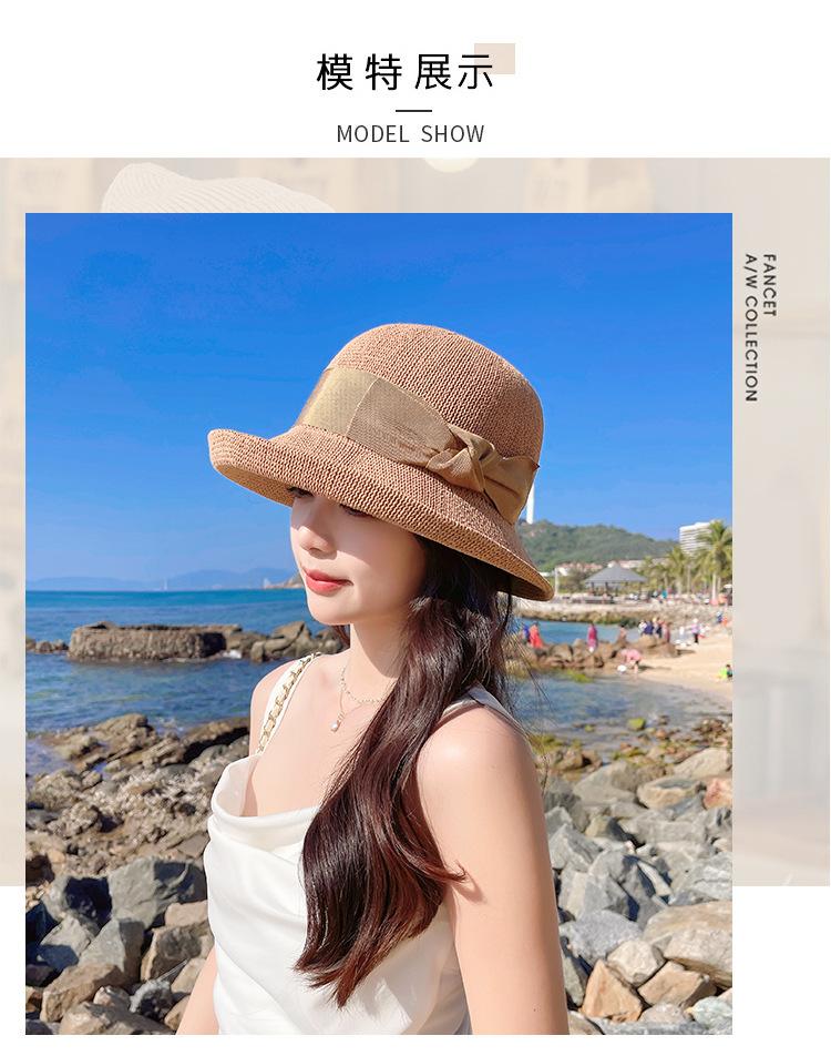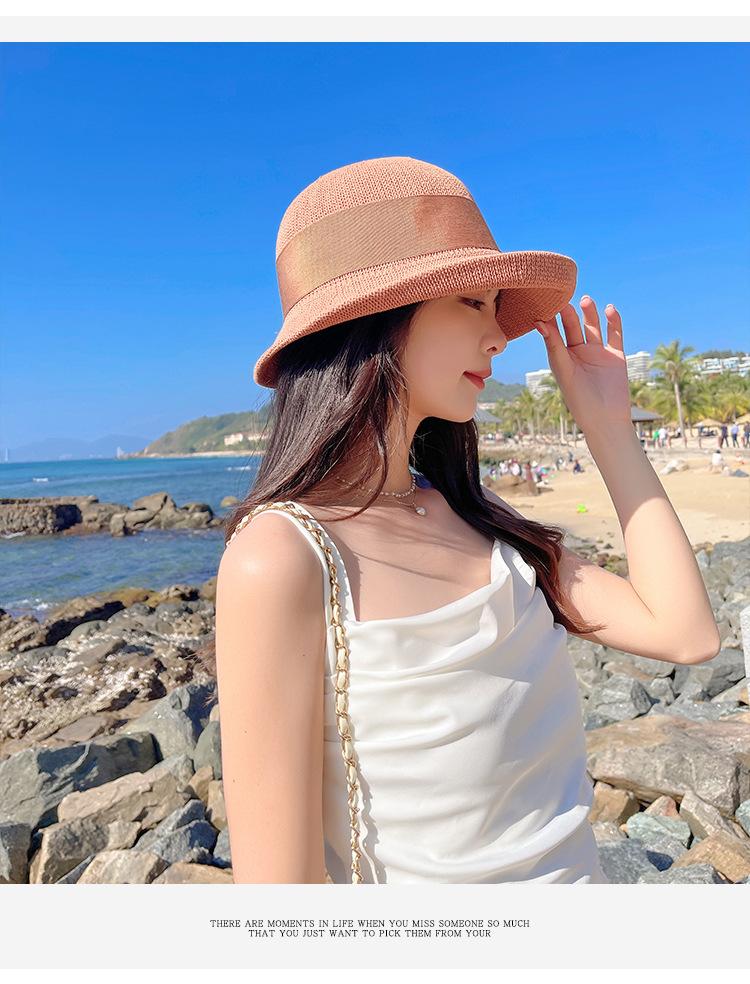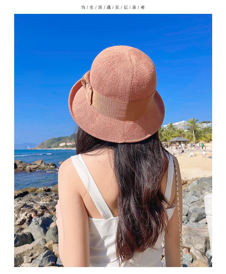 Nuevo sombrero de pescador de punto con ala corta y deformada para mujer, sombrero de lavabo con lazo y protección solar para exteriores de verano, venta al por mayor