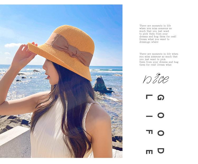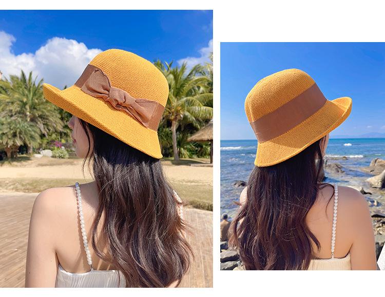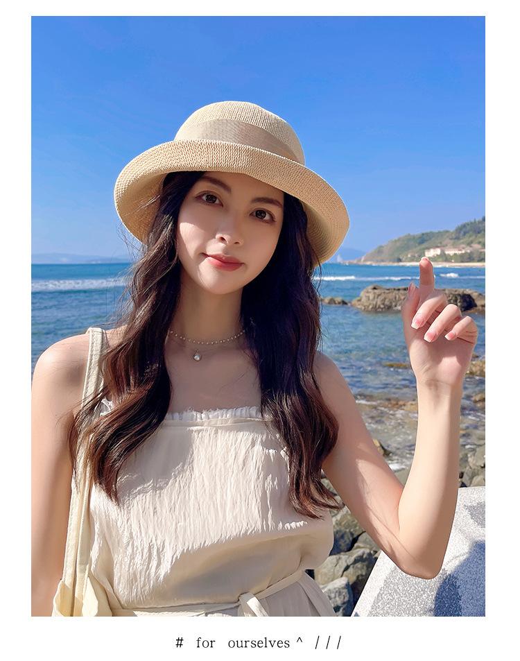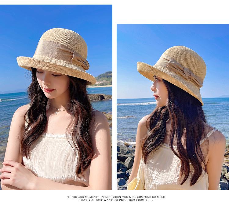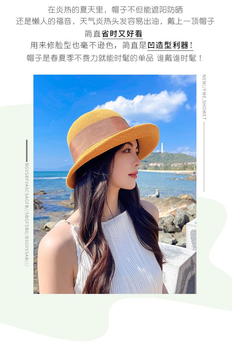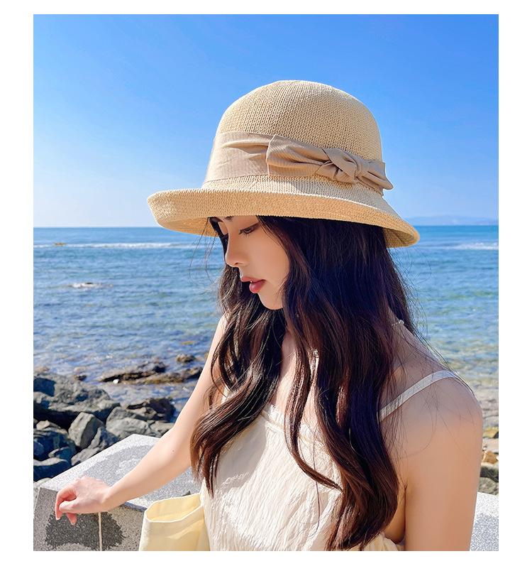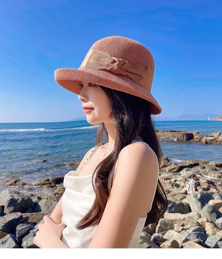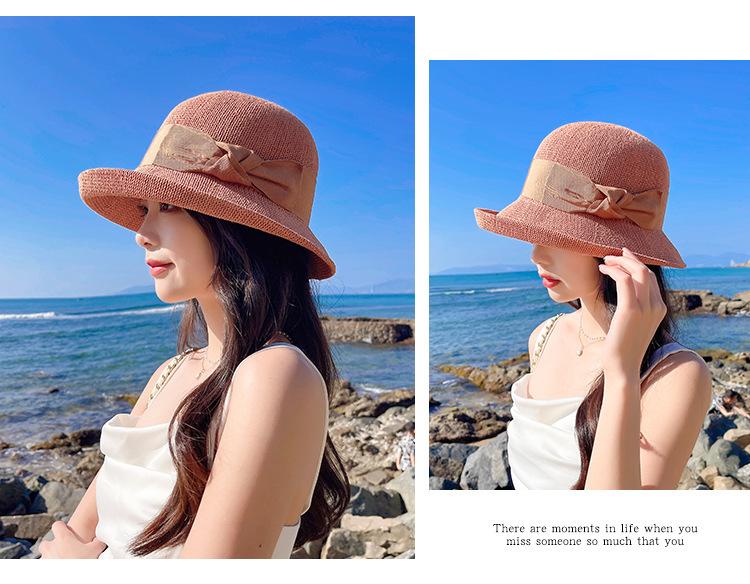 Nuevo sombrero de pescador de punto con ala corta y deformada para mujer, sombrero de lavabo con lazo y protección solar para exteriores de verano, venta al por mayor