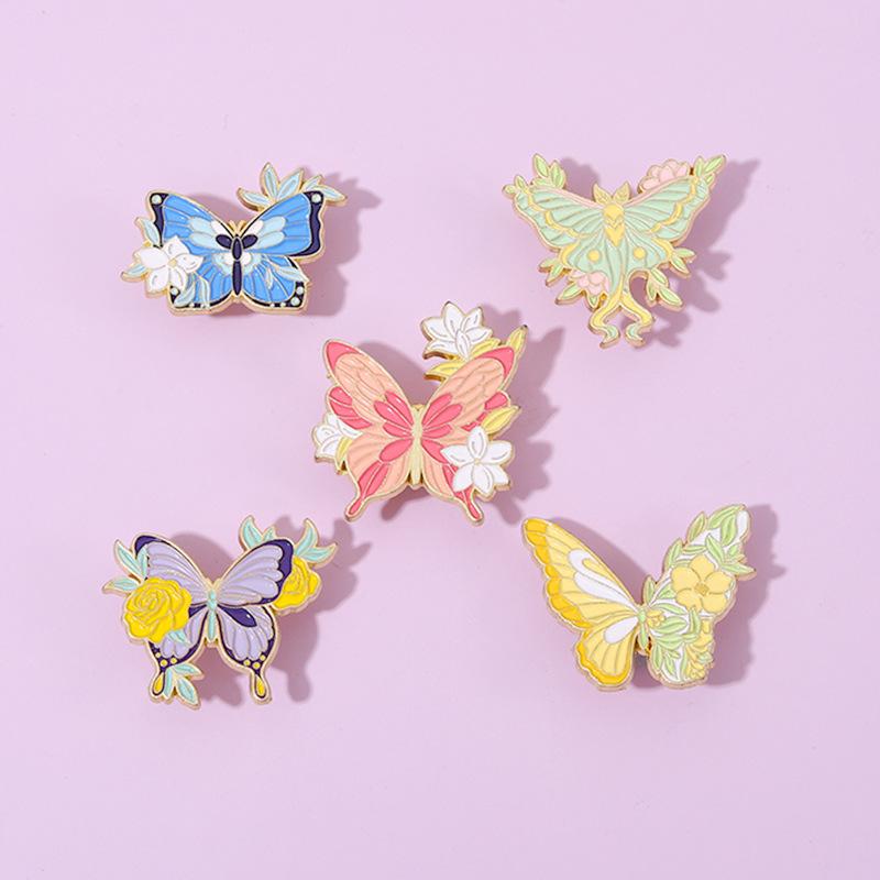 Comercio Exterior Creativo Flor Esmaltada Lirio Diseño Forma Mariposa Colorida Exquisita Moda Versátil Joyería Broche de Metal