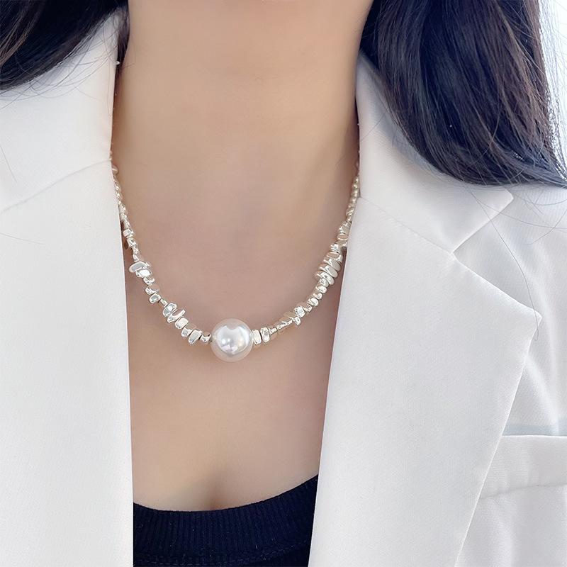 Collar de plata con colgante de perla rota, triángulo geométrico cuadrado, exagerado, estilo retro, moderno, para hombre y mujer, cadena de clavícula para pareja