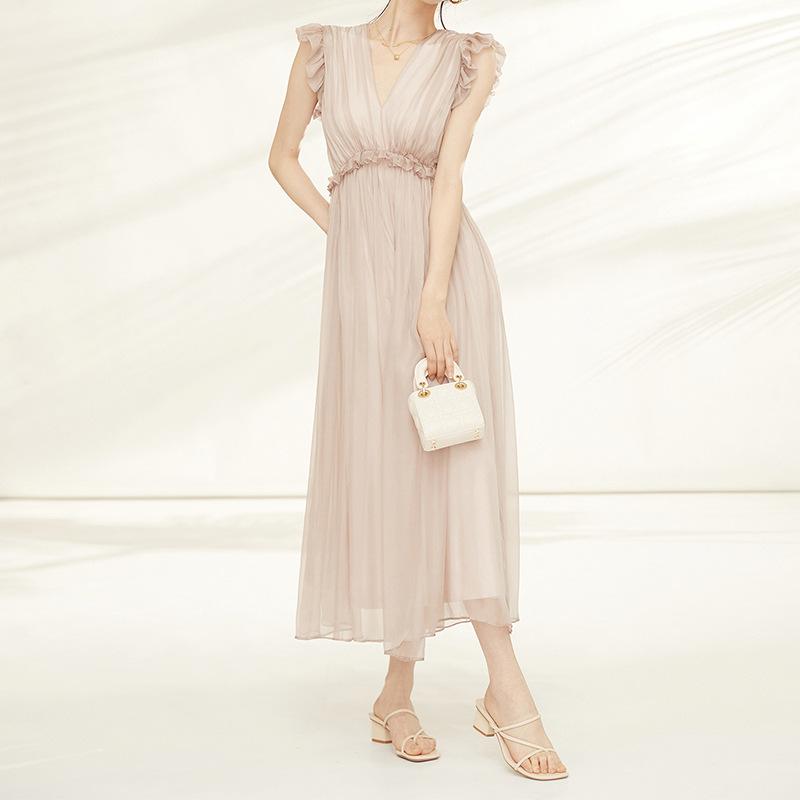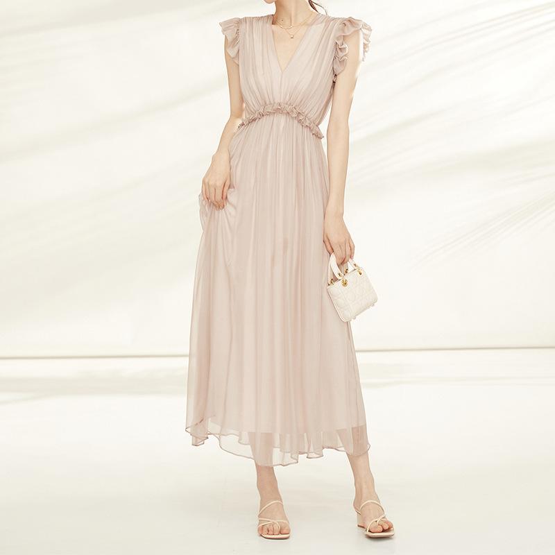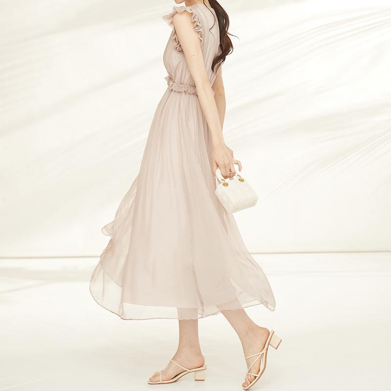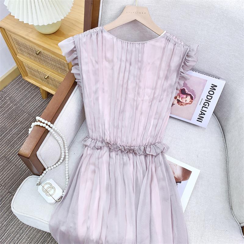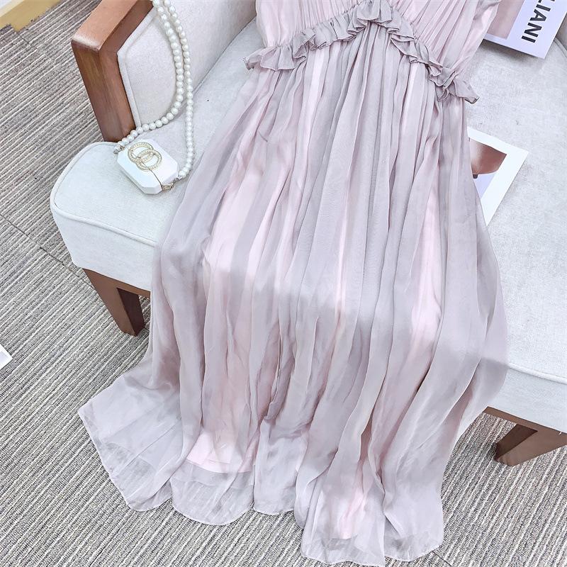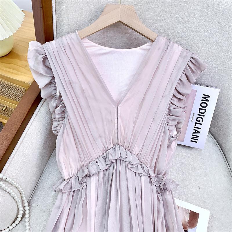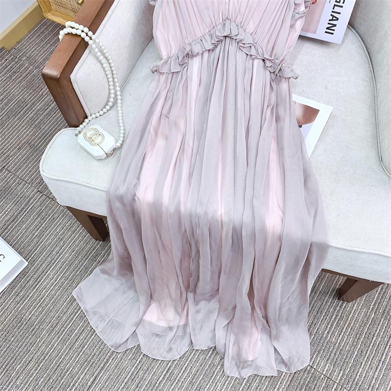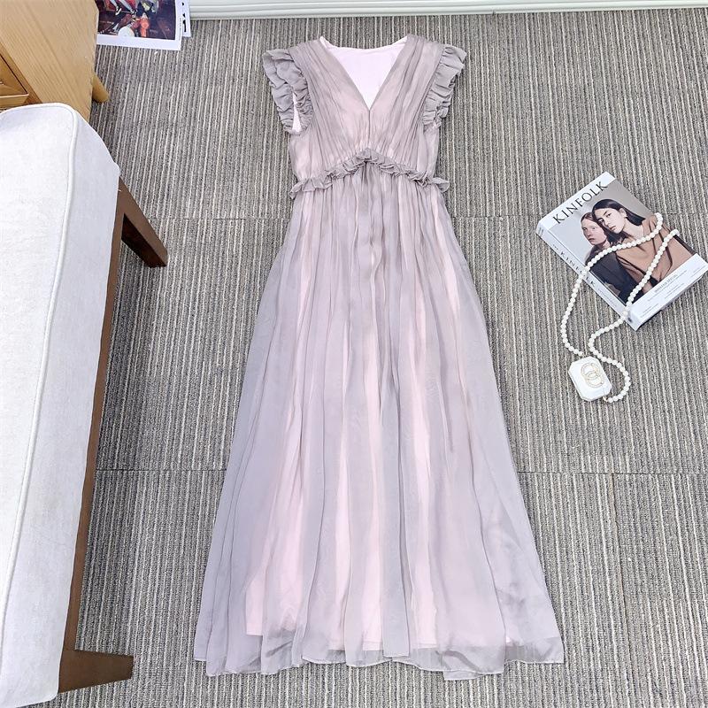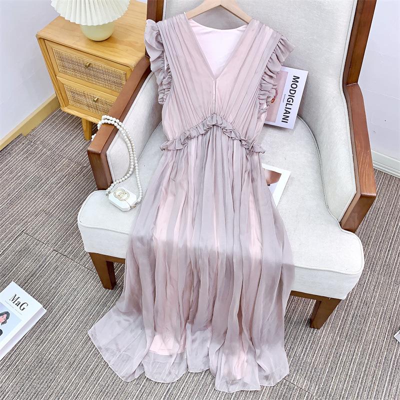 Vestido Sexy en Stock para Mujer Verano 2025 Elegante Exquisito Look Adelgazante Sin Mangas Elegante Falda Larga Elegante