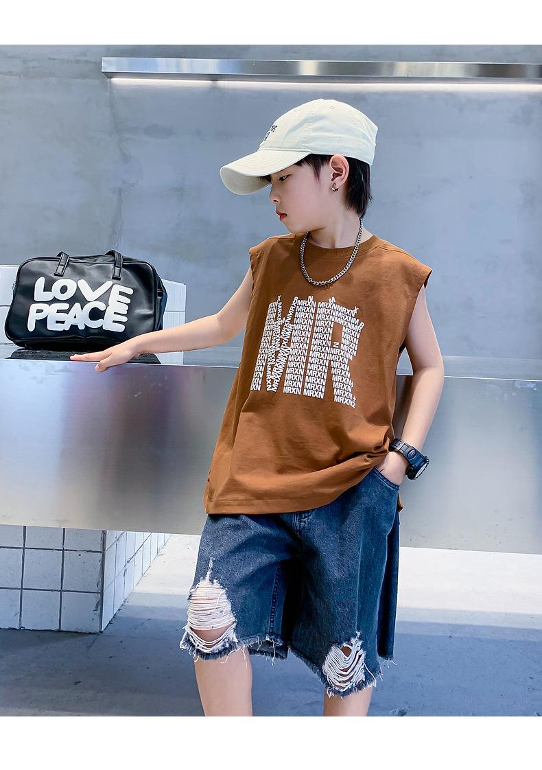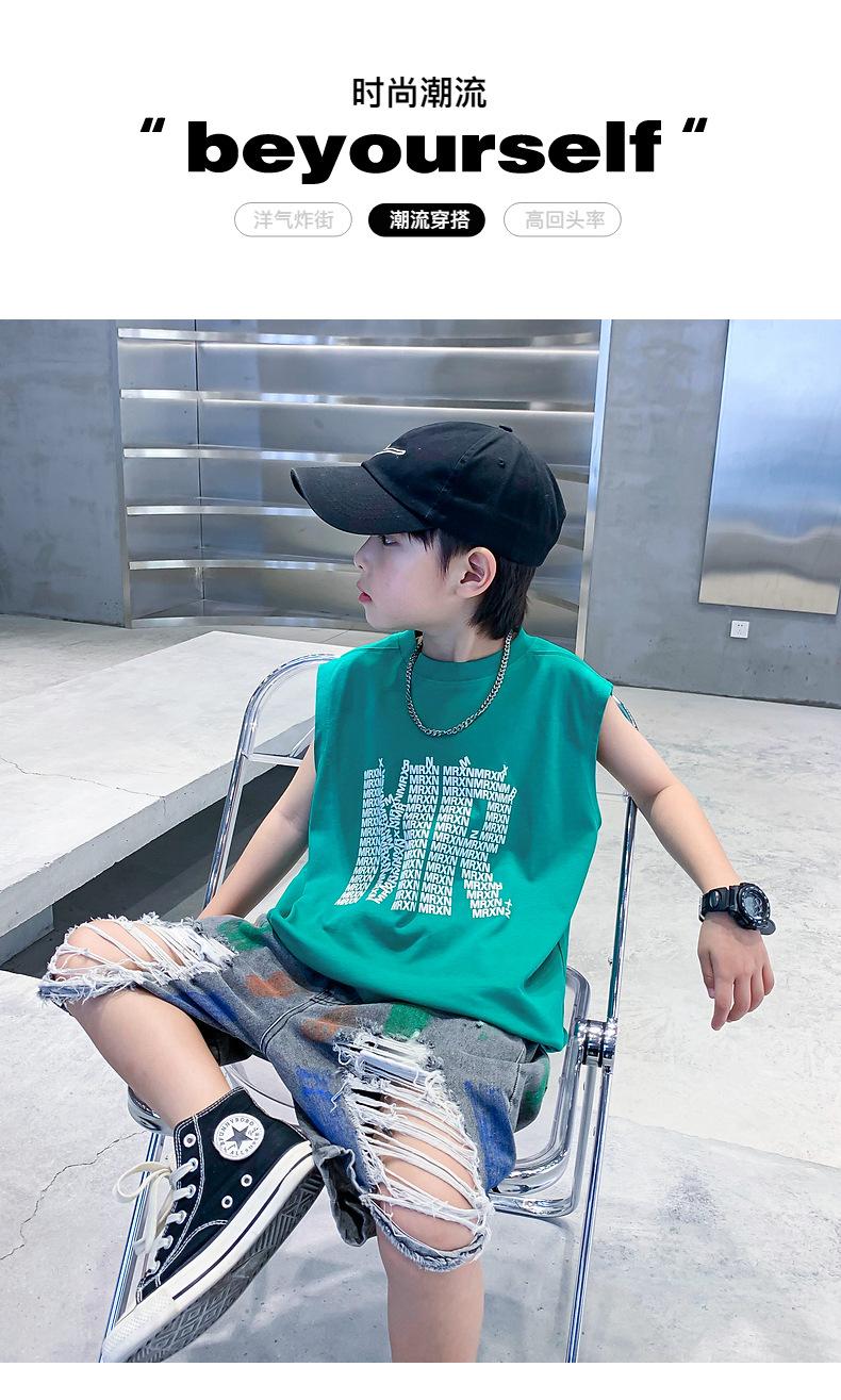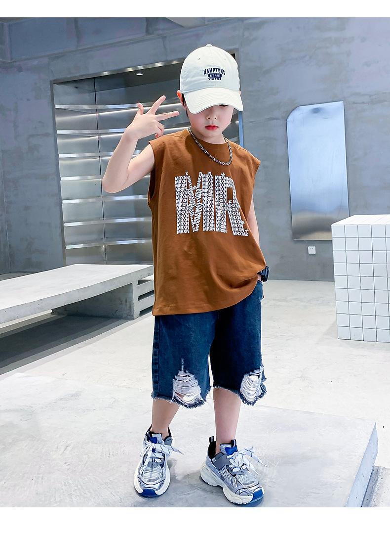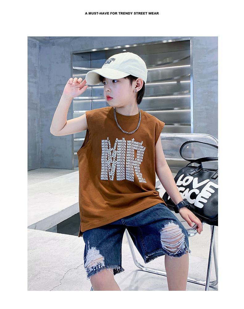 Chaleco holgado de algodón para niños de marca de moda, ropa de verano 2023, nueva ropa sin mangas para niños, camiseta grande para niños