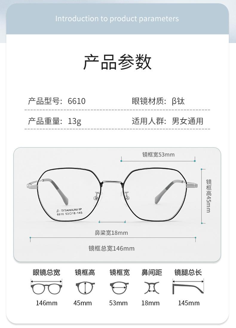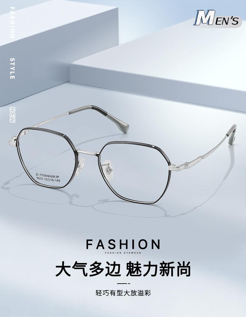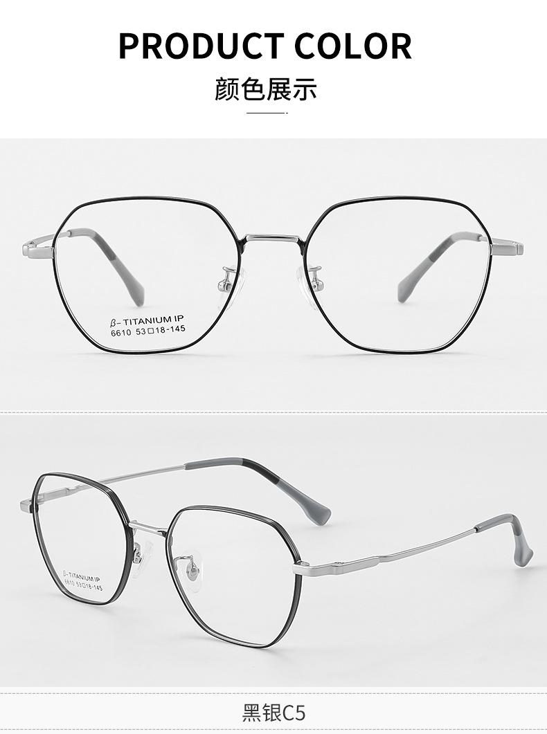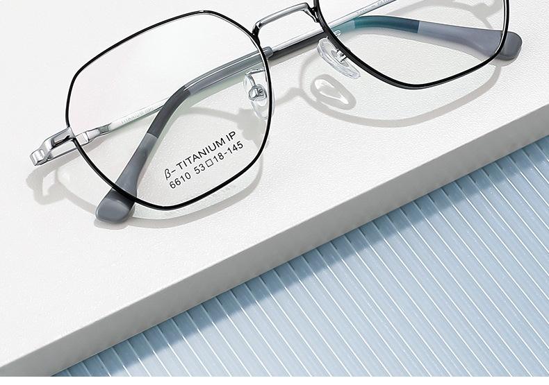 Gafas de moda de montura completa de semititanio 6610 de ala ancha para miopía con número de altura, montura unisex, venta al por mayor en Danyang