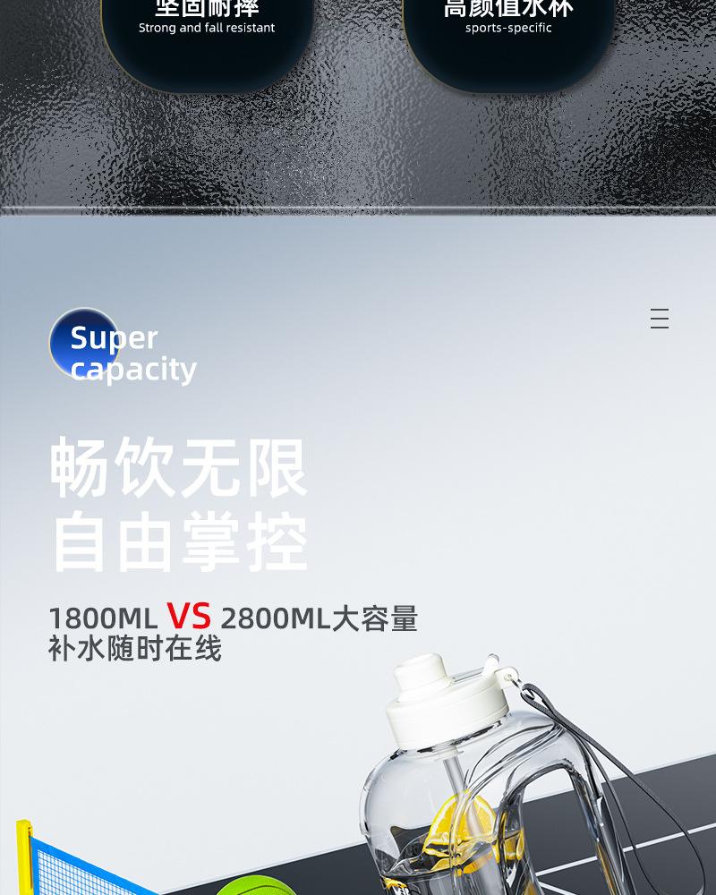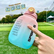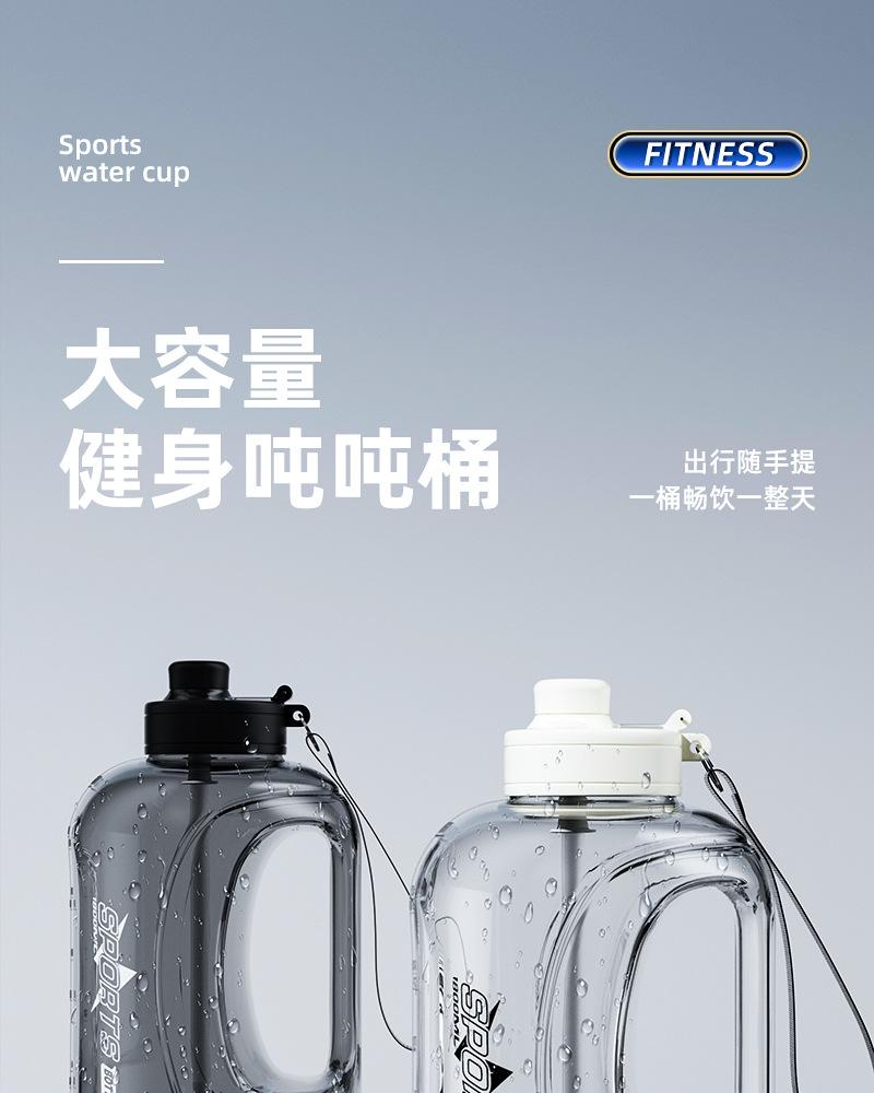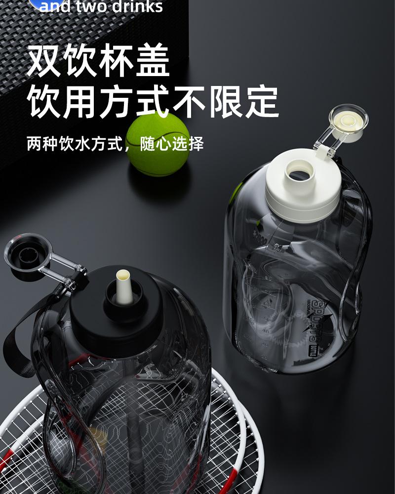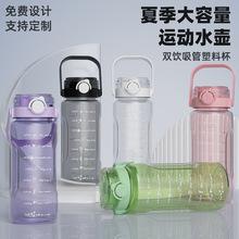 | Botella de agua deportiva de gran capacidad de verano para exteriores, para fitness, portátil, de gran valor, doble bebida con pajita, vaso de plástico al por mayor |