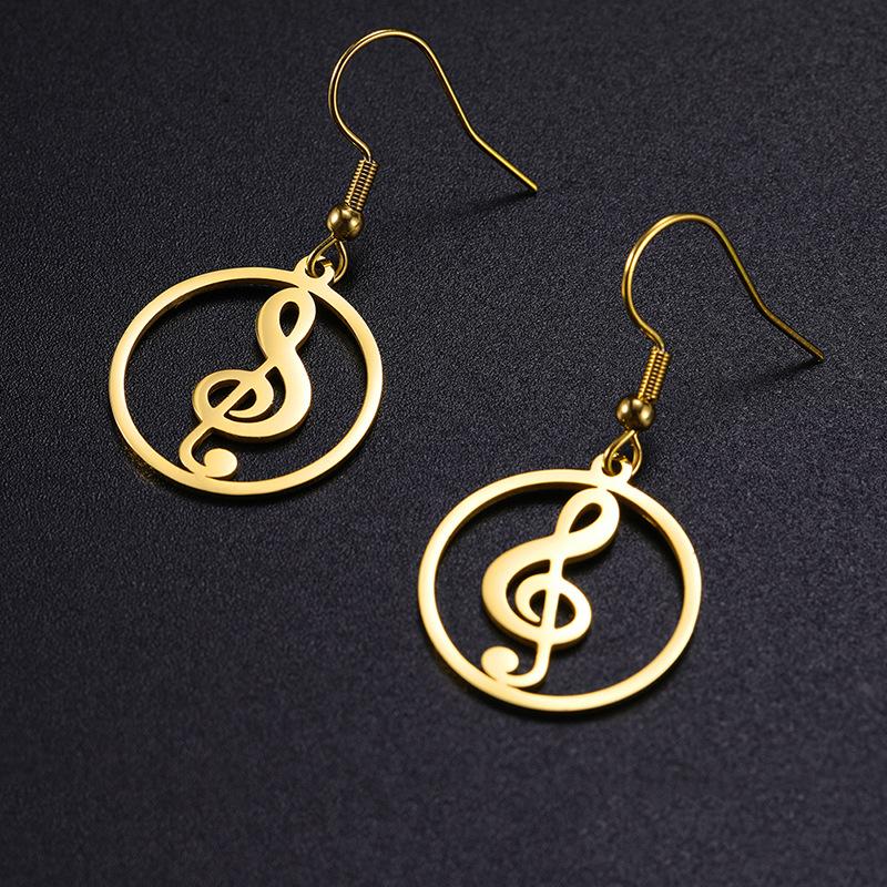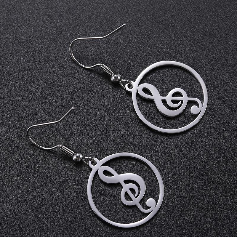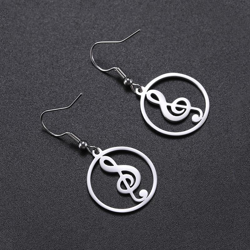 Nuevos pendientes de acero inoxidable con símbolo musical transfronterizo europeo y americano, nuevos clips para las orejas, pendientes de moda, accesorios galvanizados.