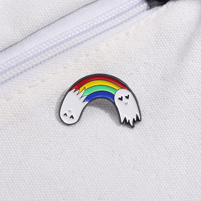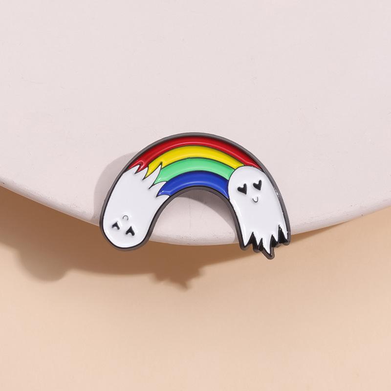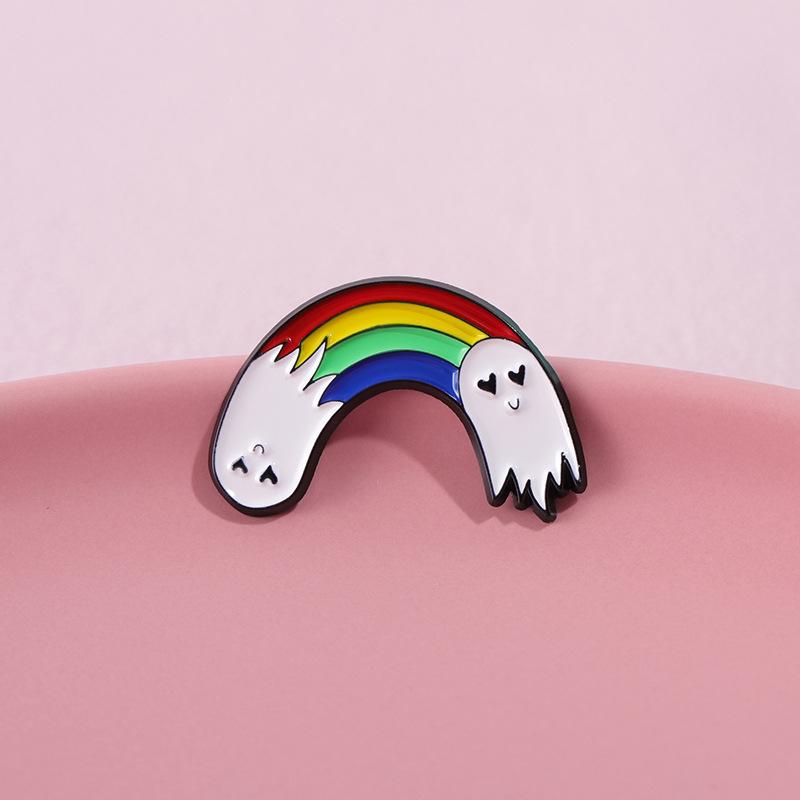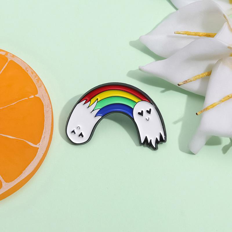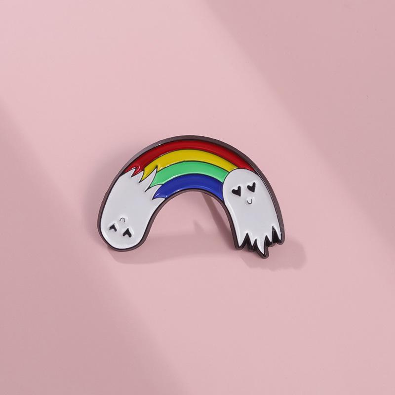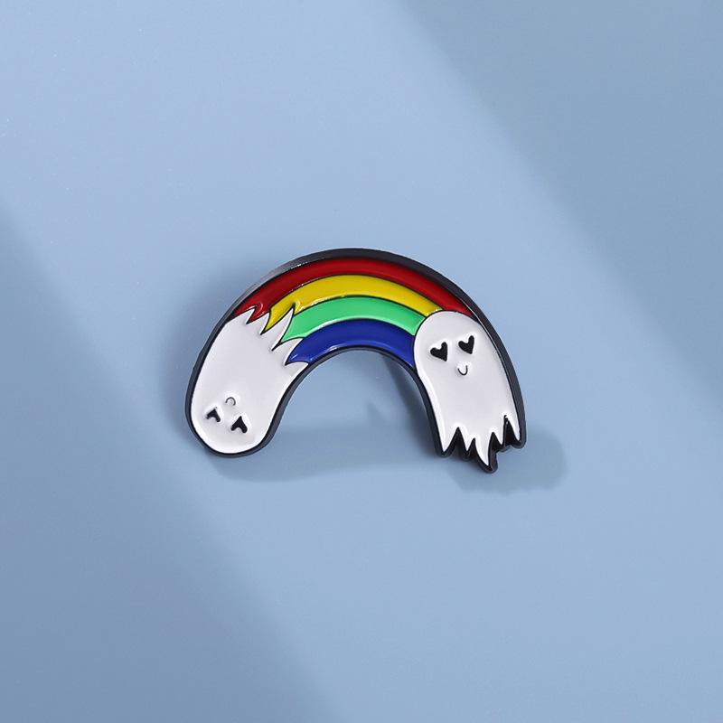 Broche de aleación de alta gama de Amazon, nuevo y popular, con diseño exquisito, insignia de pintura de fantasma arcoíris, hebilla al por mayor
