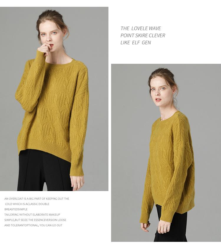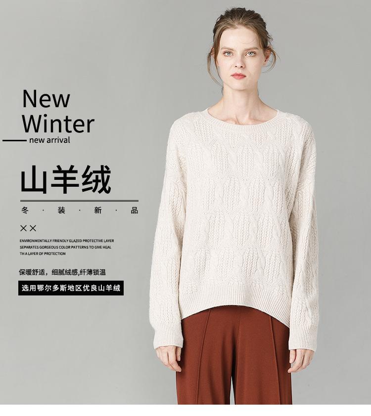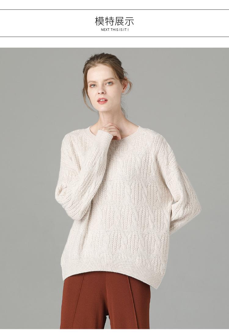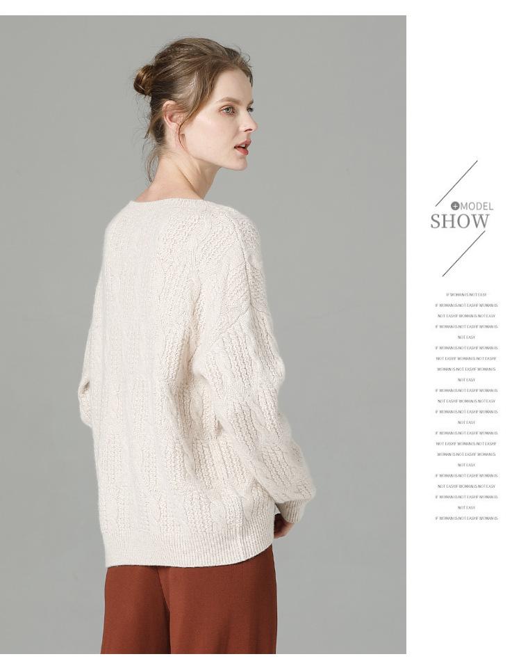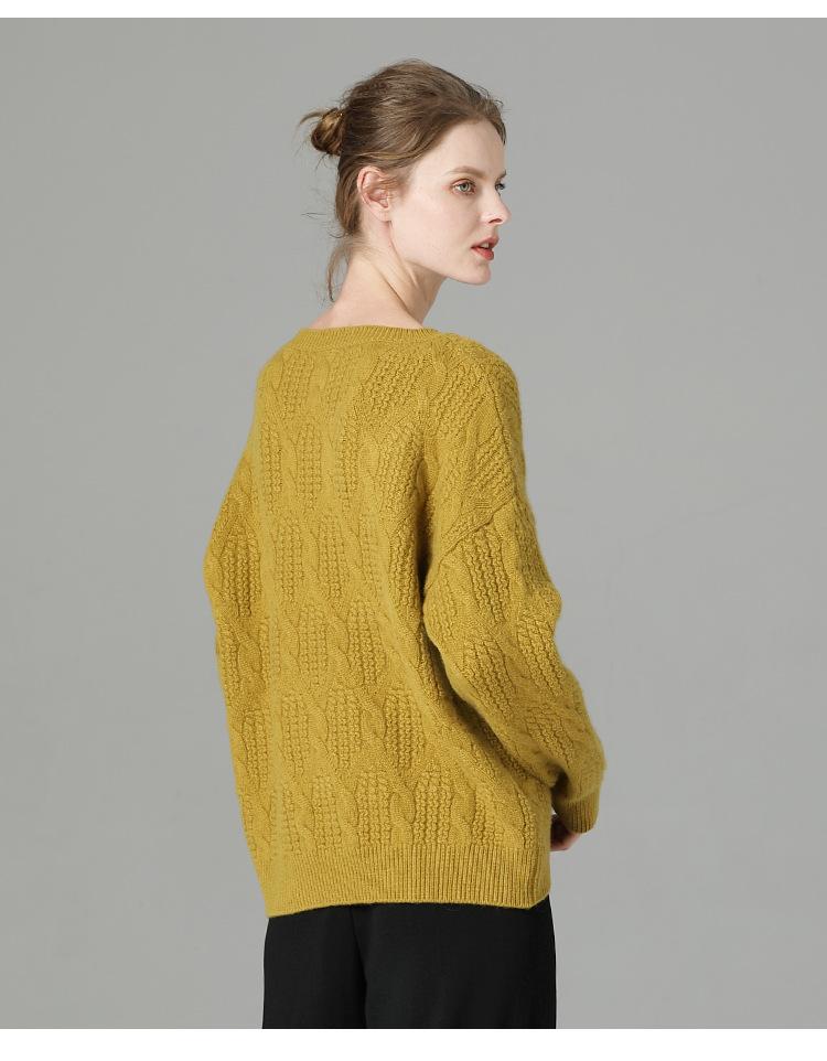 Suéter de cachemira 100% puro para mujer, camisa gruesa de color sólido, cuello redondo, holgado, para uso exterior, suéter de lana