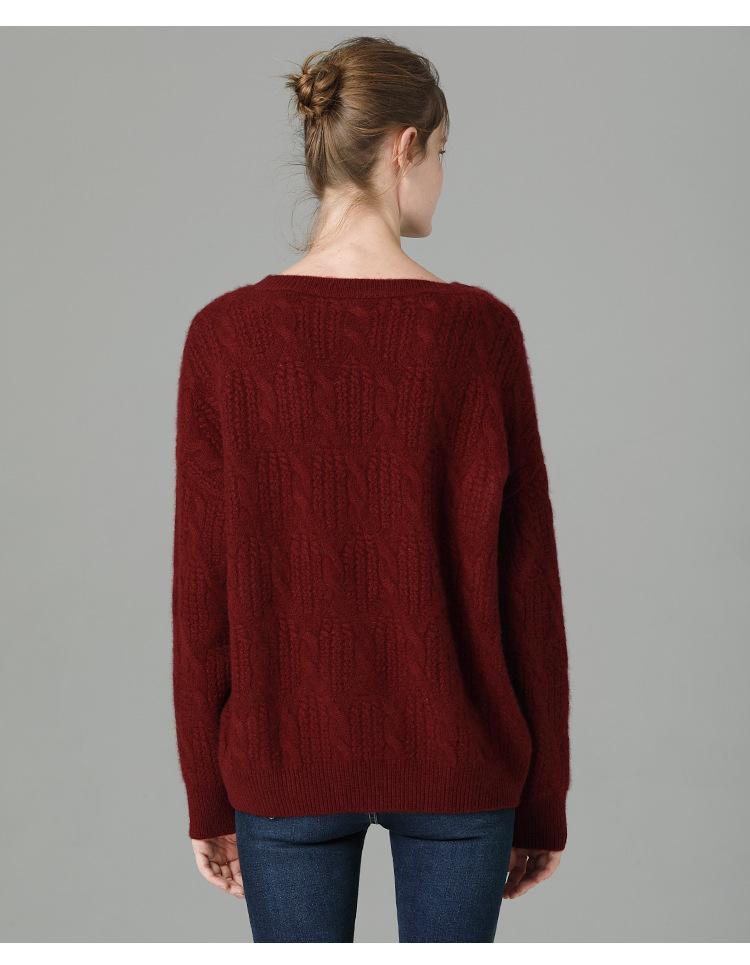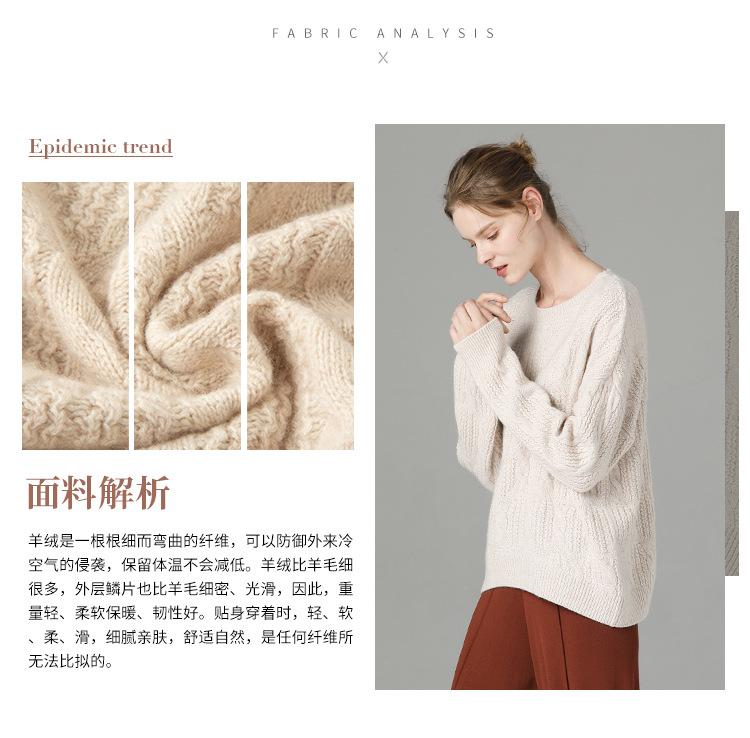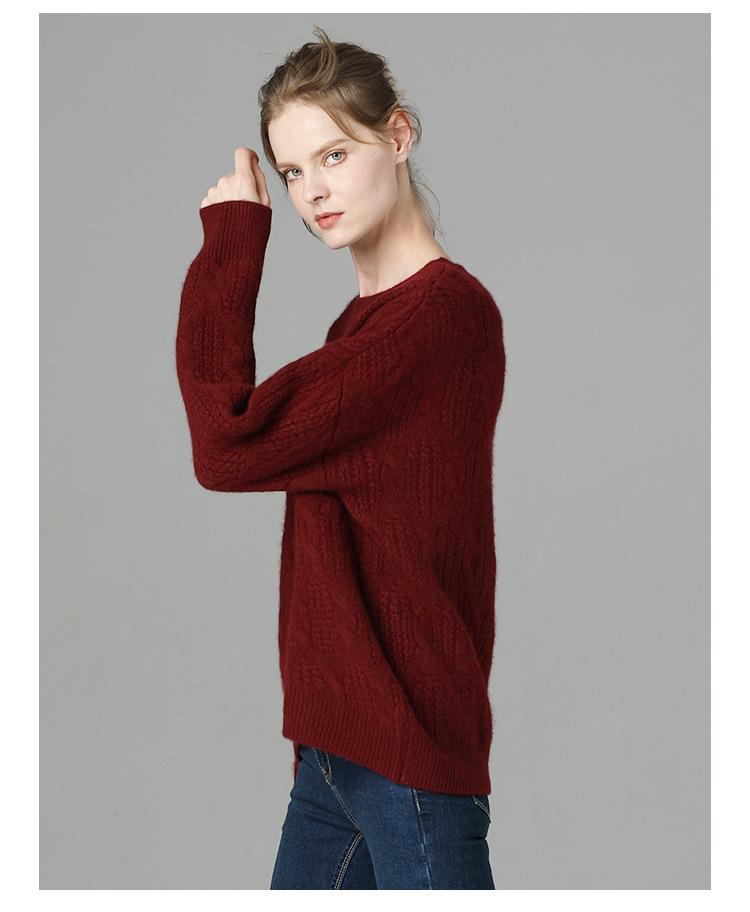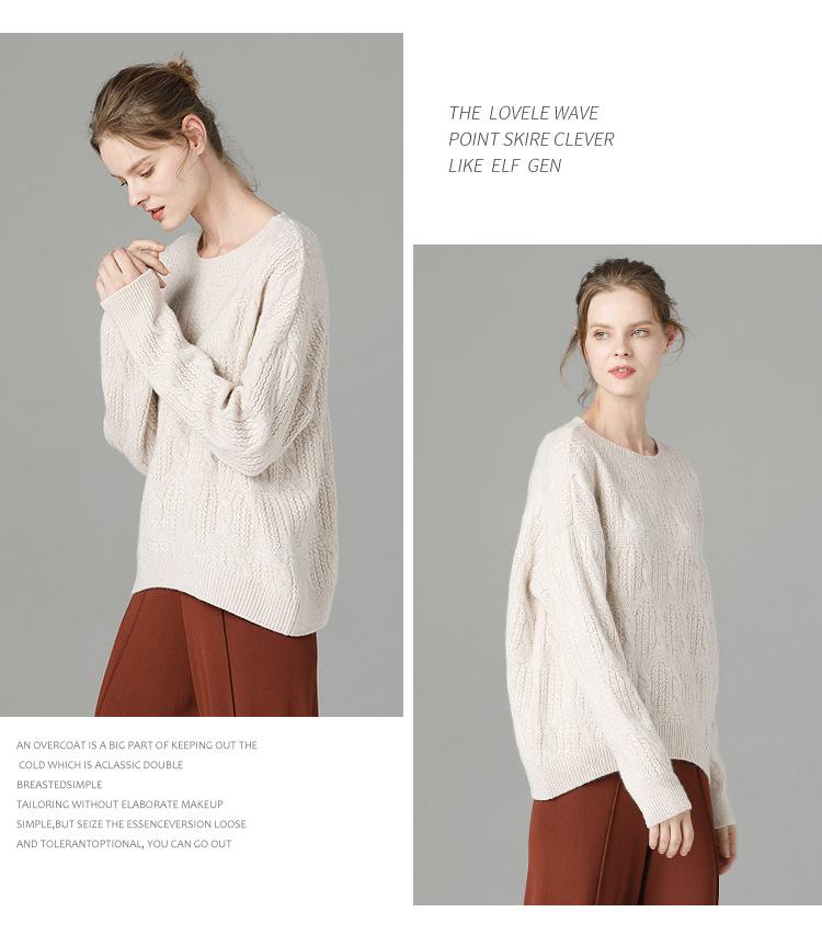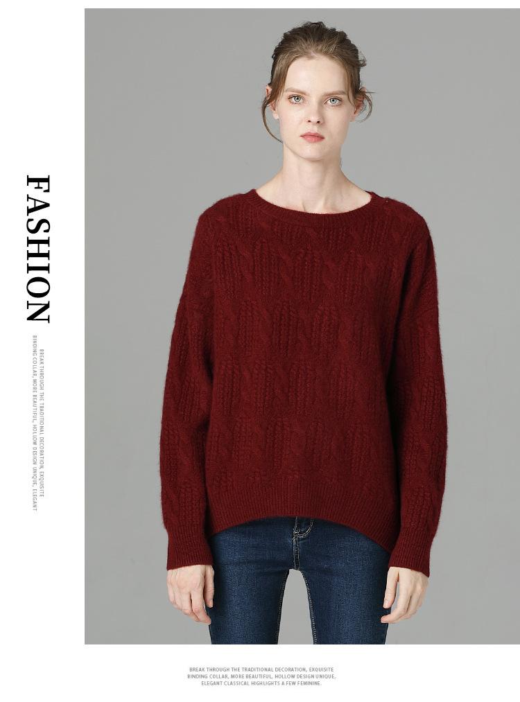 Suéter de cachemira 100% puro para mujer, camisa gruesa de color sólido, cuello redondo, holgado, para uso exterior, suéter de lana