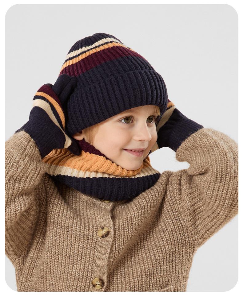 Gorro, bufanda y guantes de tres piezas para niños, otoño e invierno, orejeras para bebé de Amazon, gorro de lana, traje cálido de tres piezas
