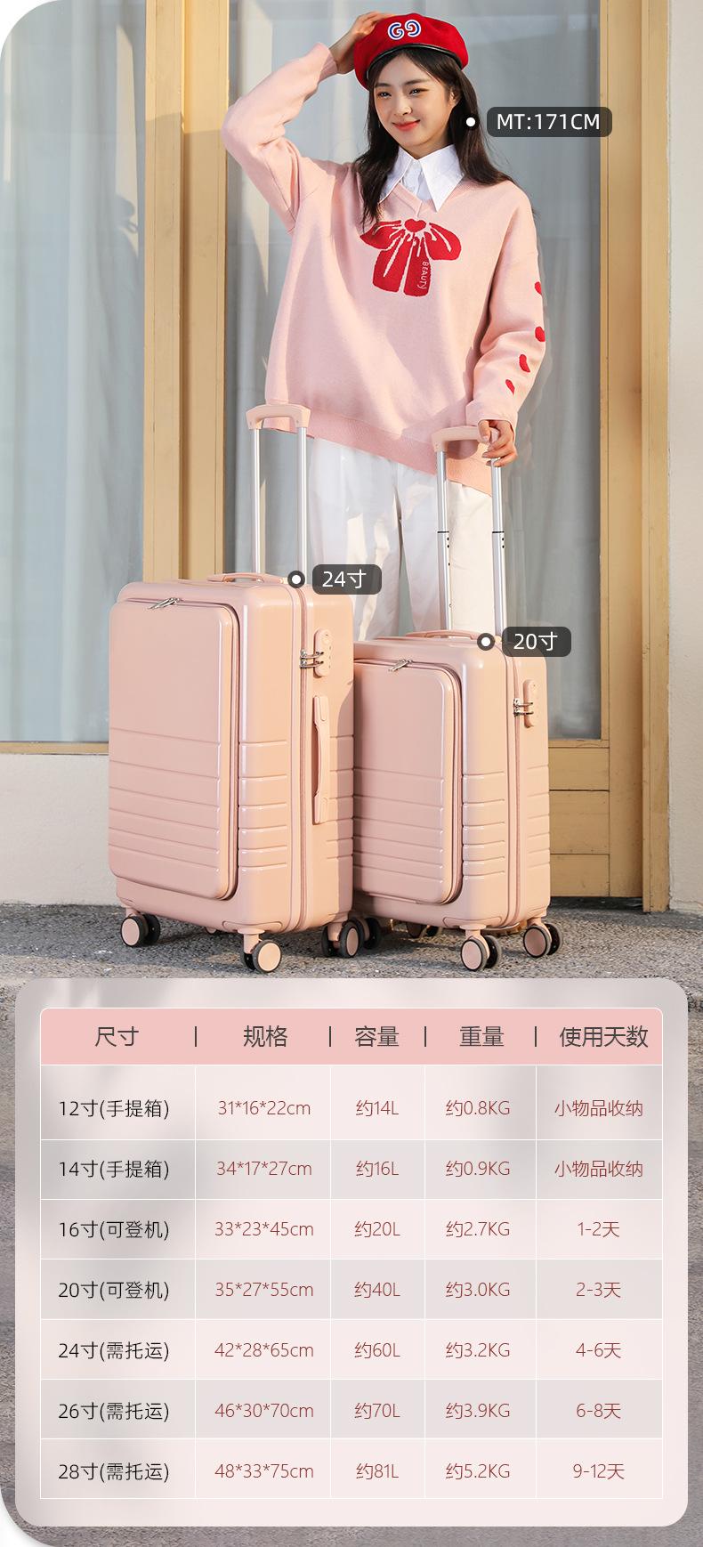 Maleta Yong Sheng de 24 pulgadas para mujer con cubierta frontal de apertura, maleta con ruedas universales de 20 pulgadas para llevar a bordo, maleta de gran capacidad al por mayor