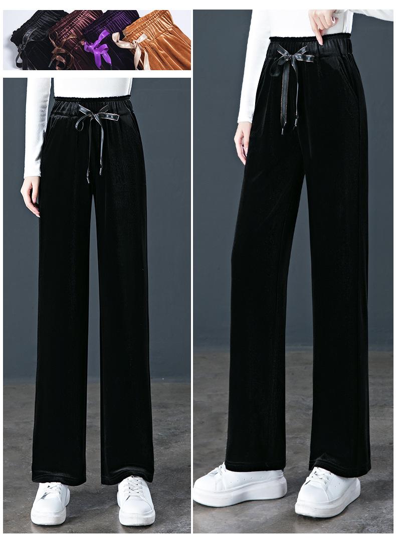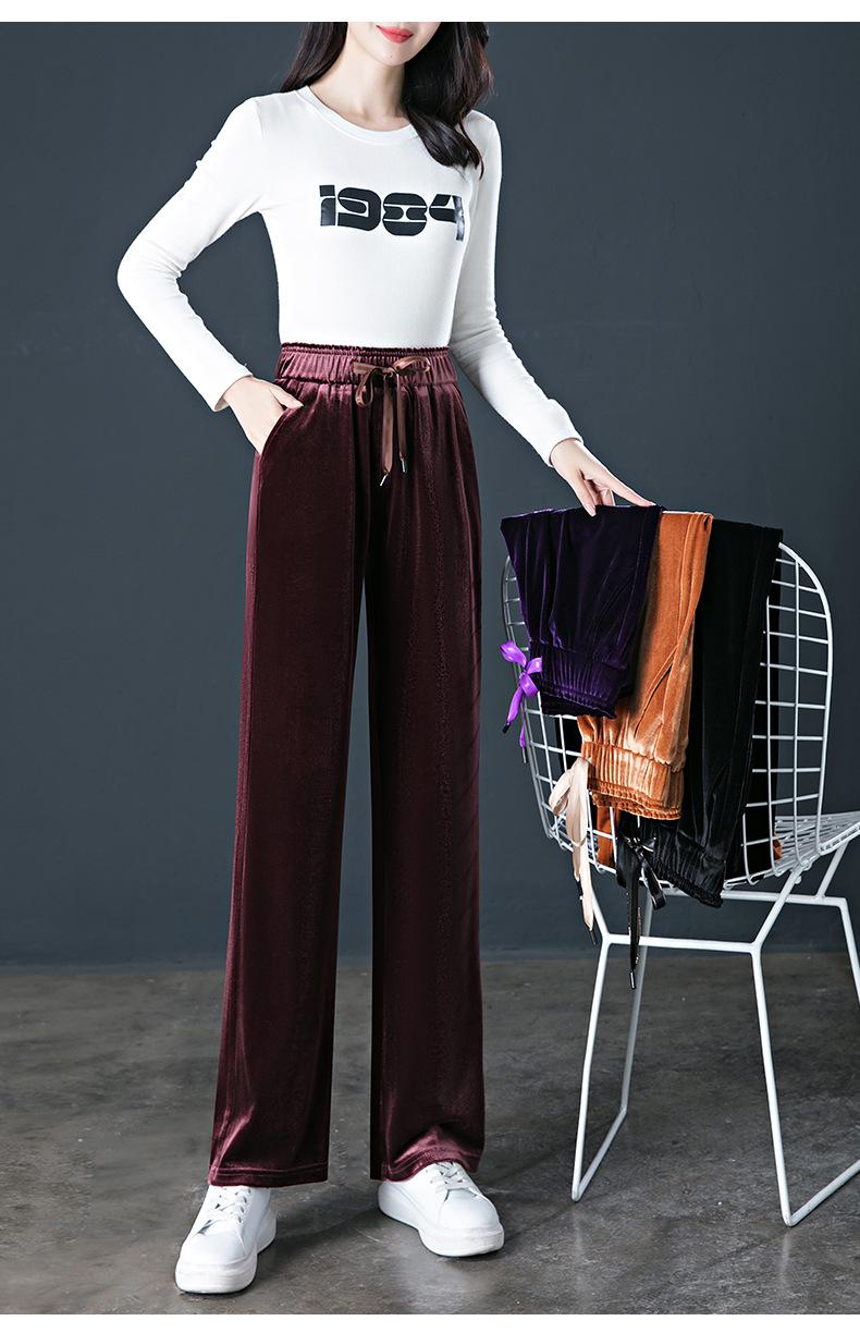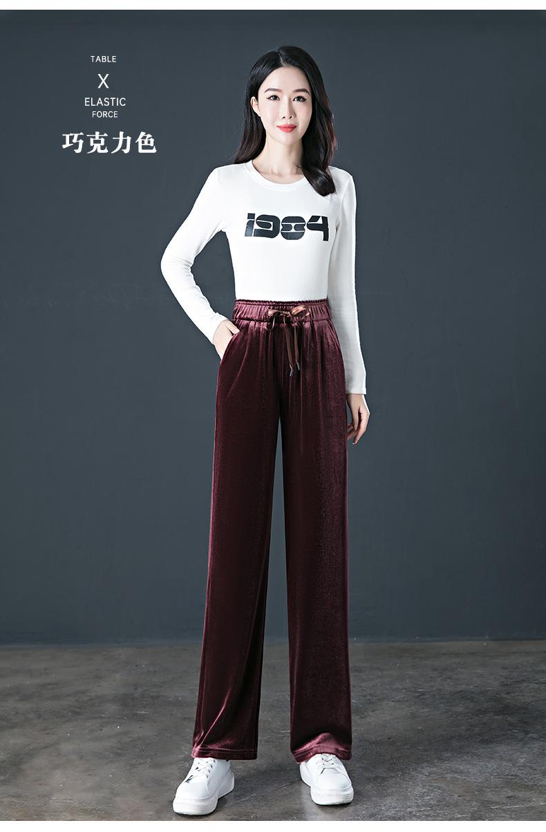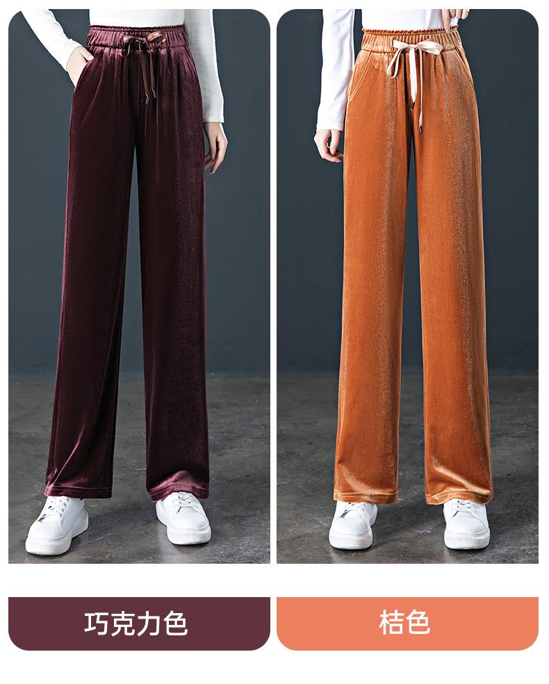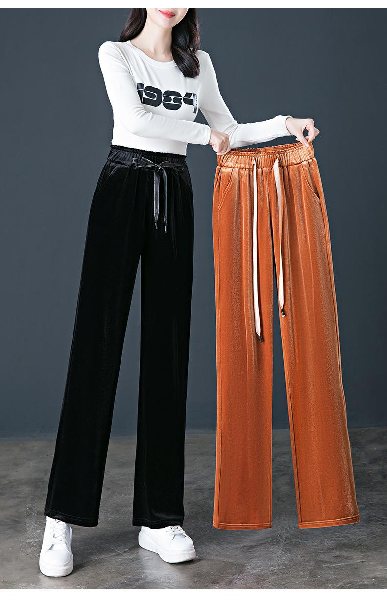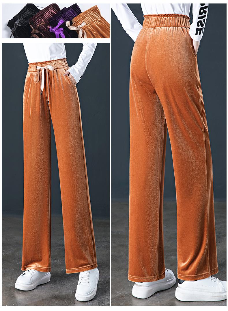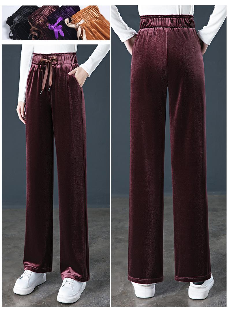 Pantalones de Terciopelo Anchos de Pierna Nueva 2025 para Mujer, Otoño Cintura Alta con Cordón Drapeados Sueltos Rectos Terciopelo Pantalones Largos