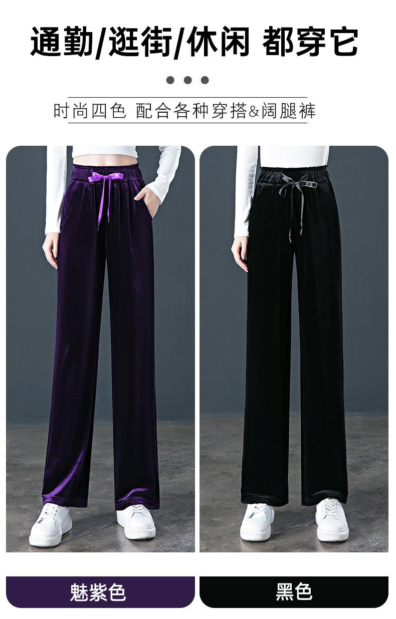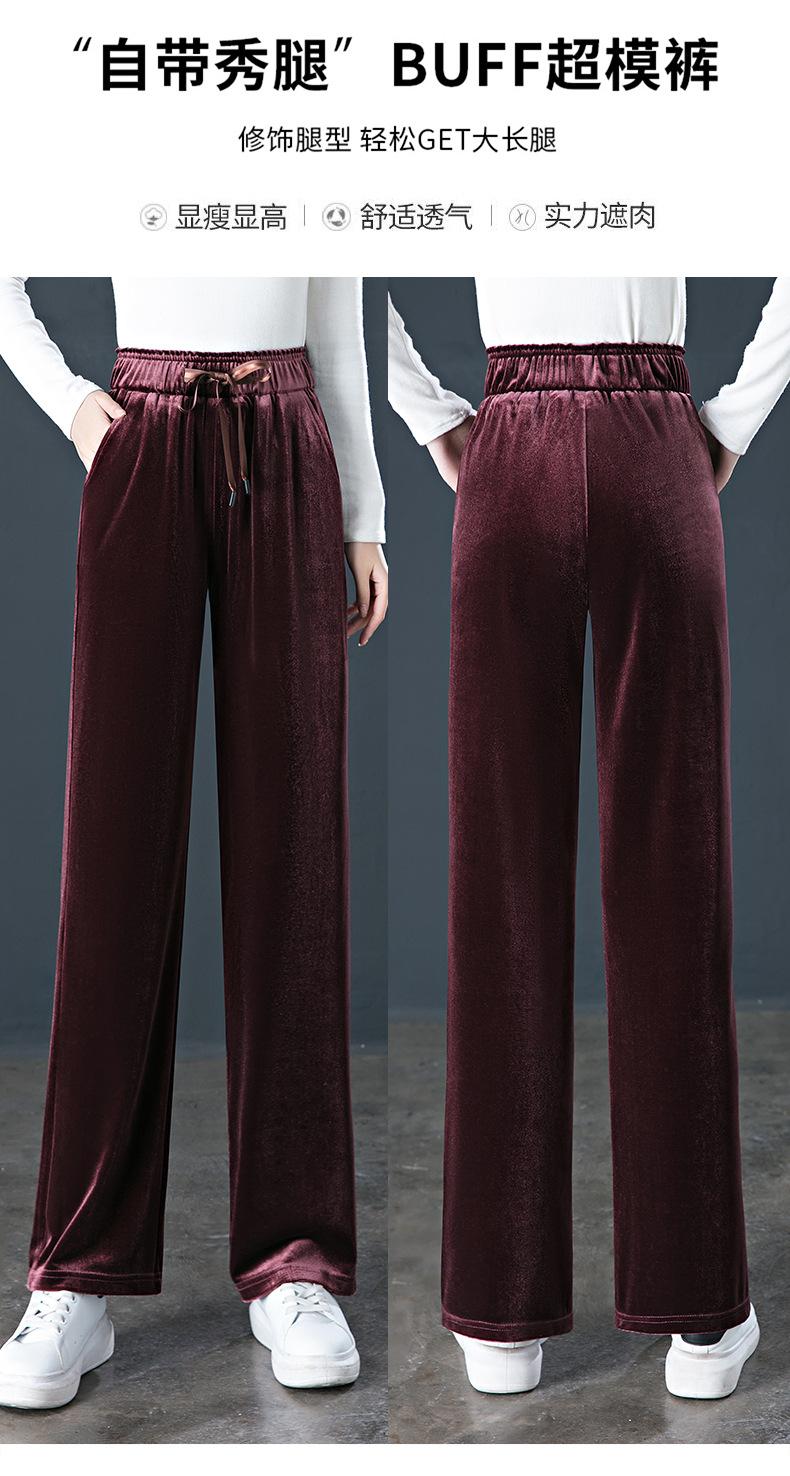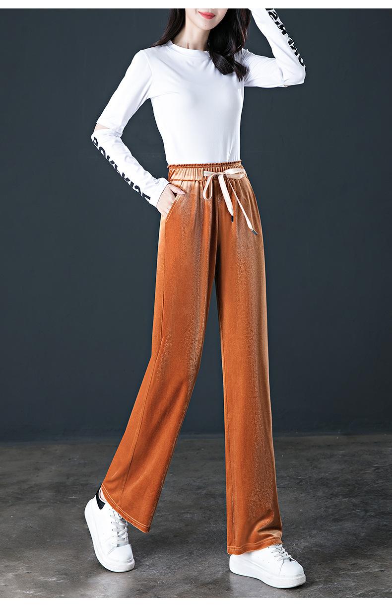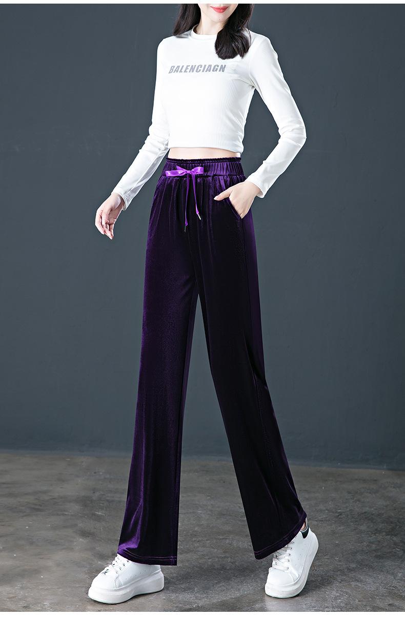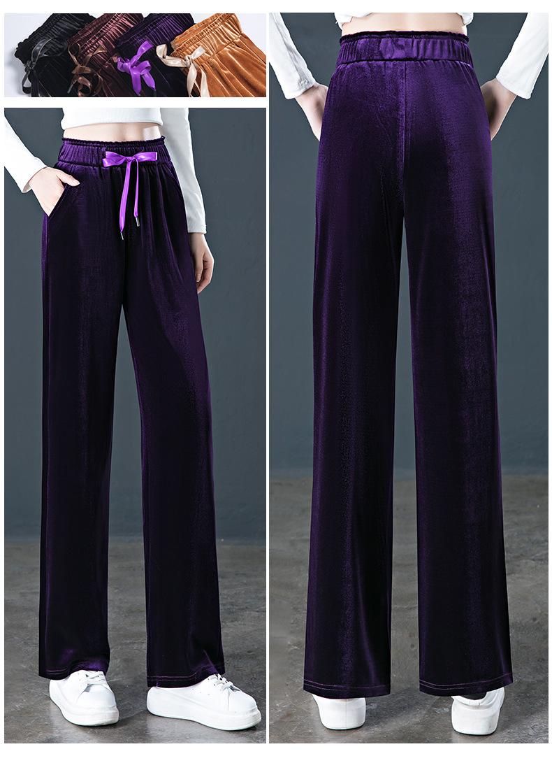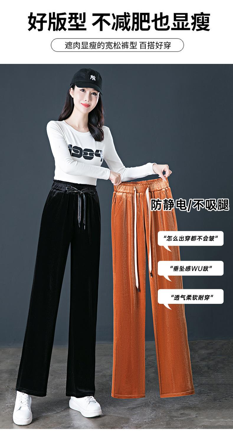 Pantalones de Terciopelo Anchos de Pierna Nueva 2025 para Mujer, Otoño Cintura Alta con Cordón Drapeados Sueltos Rectos Terciopelo Pantalones Largos