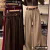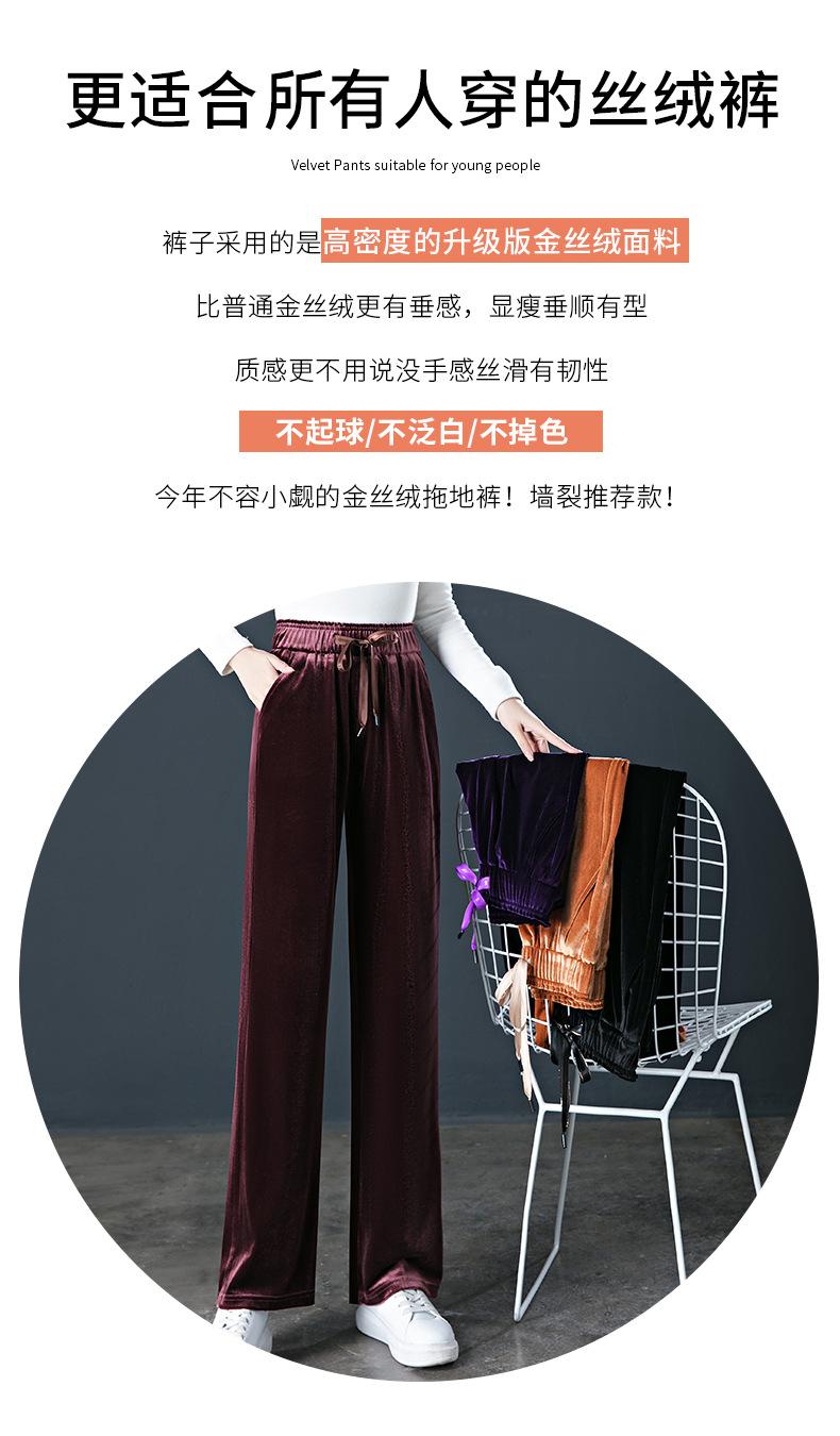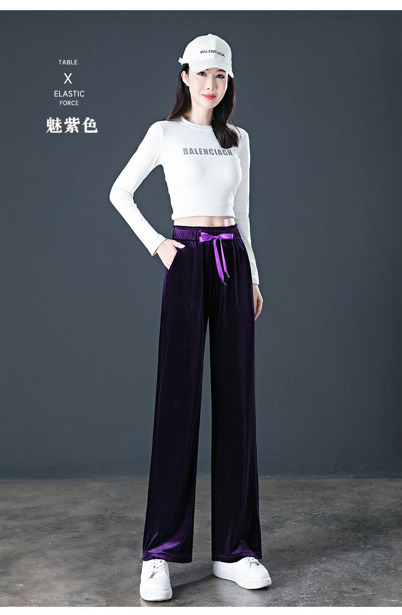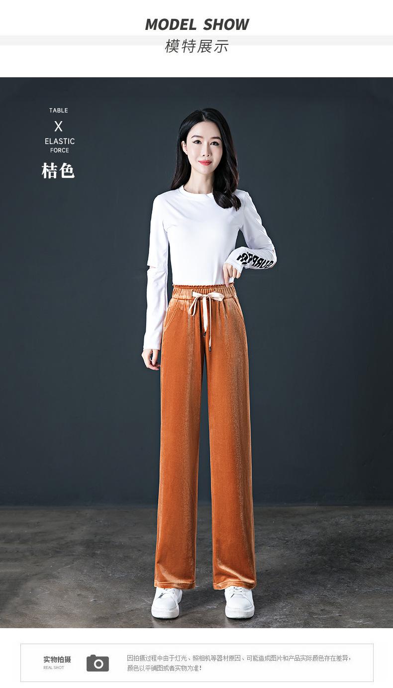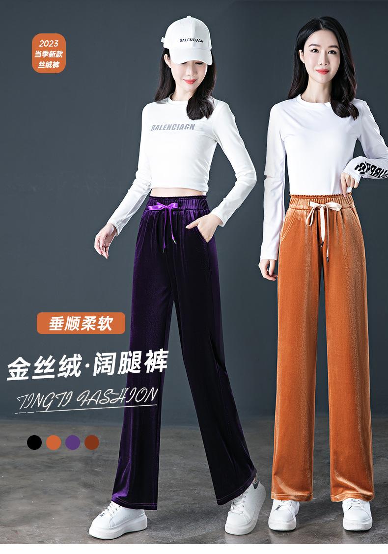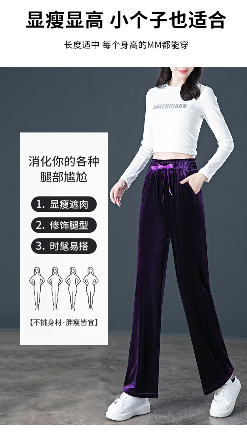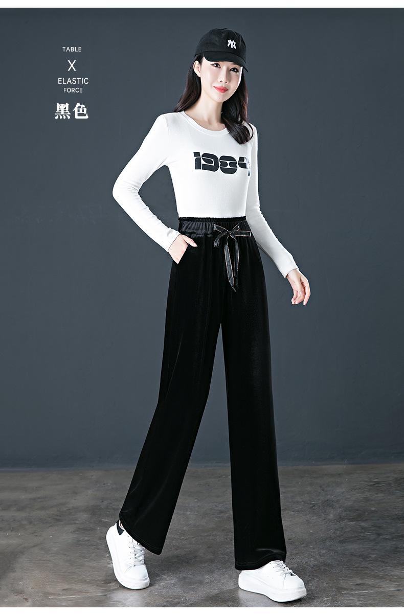 Pantalones de Terciopelo Anchos de Pierna Nueva 2025 para Mujer, Otoño Cintura Alta con Cordón Drapeados Sueltos Rectos Terciopelo Pantalones Largos