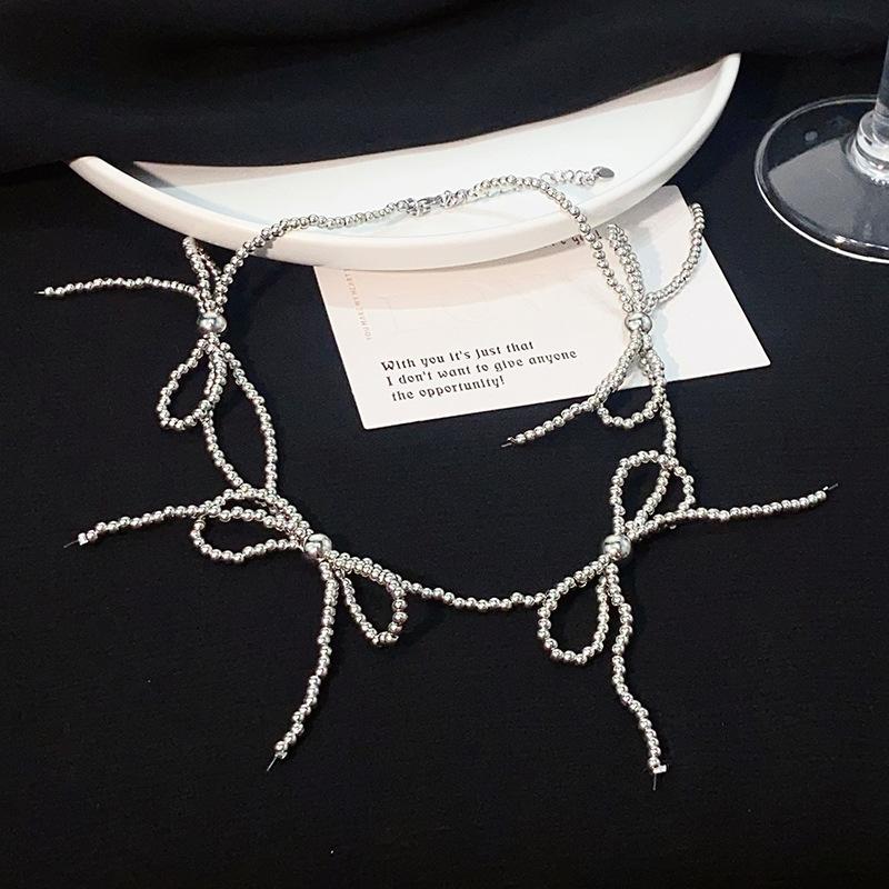Collar de perlas con lazo de alta gama de diseño de nicho para mujer, cadena de cuentas a la moda que combina con todo, elegante cadena de clavícula con personalidad