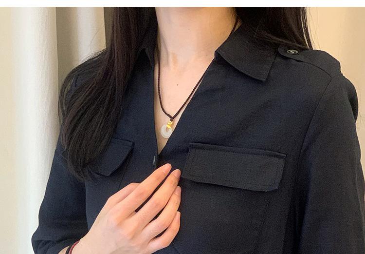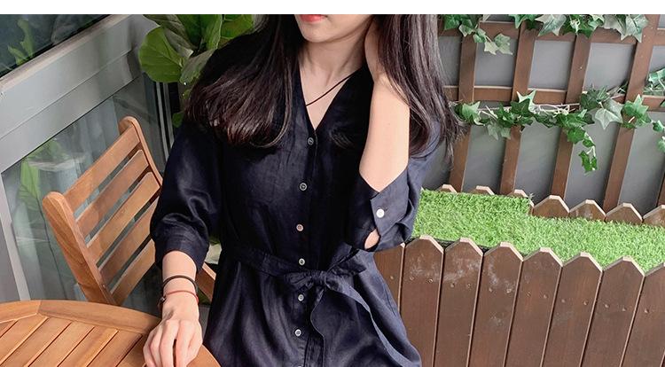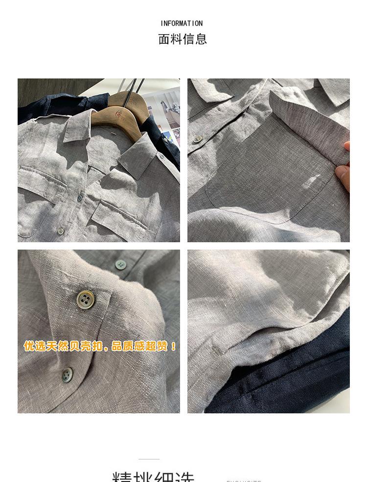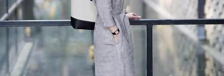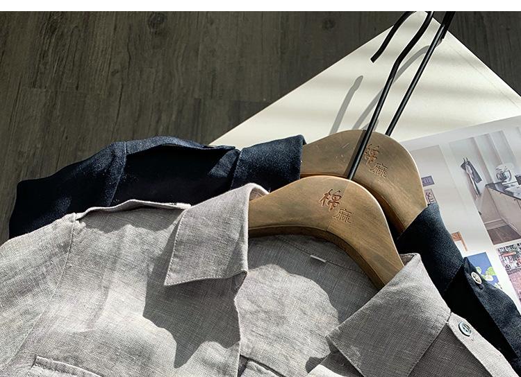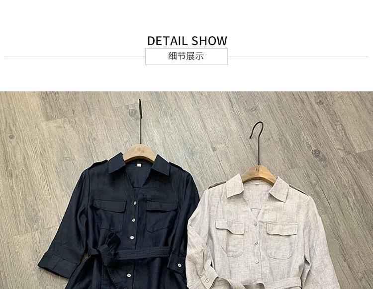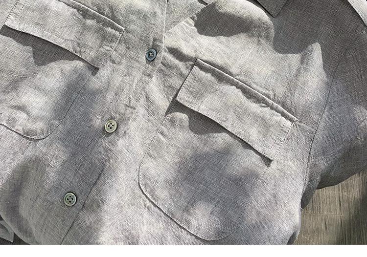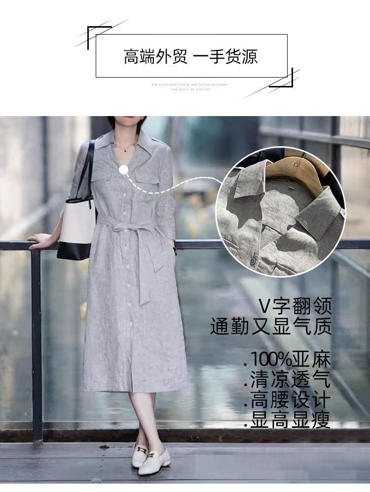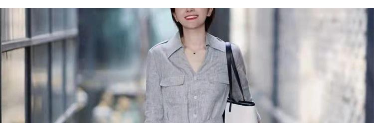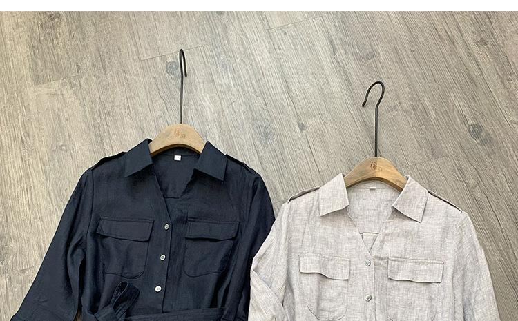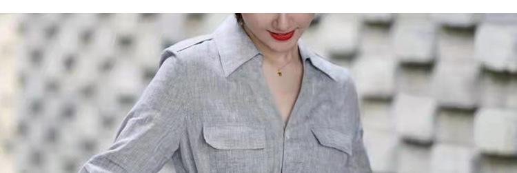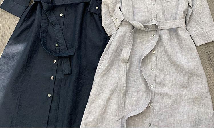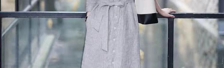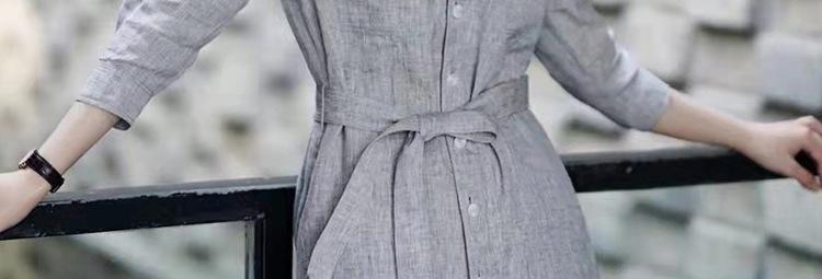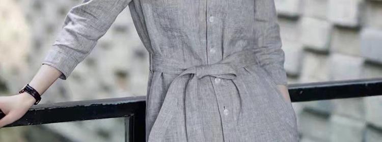 Vestido Boutique Plus Classy Estilo Similar de Blogger Vestido Camisero de Lino Manga Media Verano Gris Damas