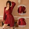 Pijama de encaje Guiruo con perspectiva, sexy, con escote en V profundo, de satén, con tirantes, bata de baño con cordones, conjunto de ropa para el hogar 542