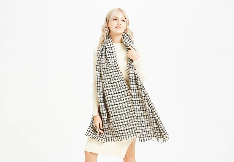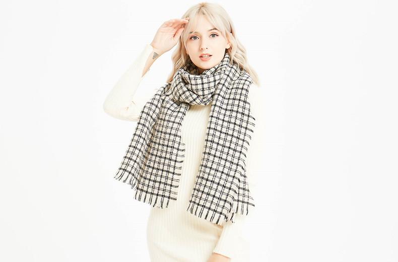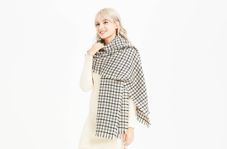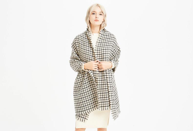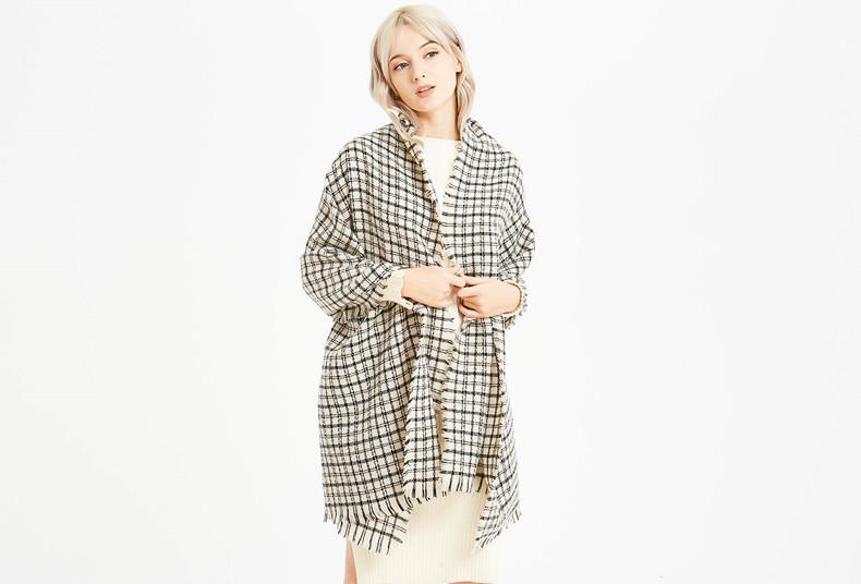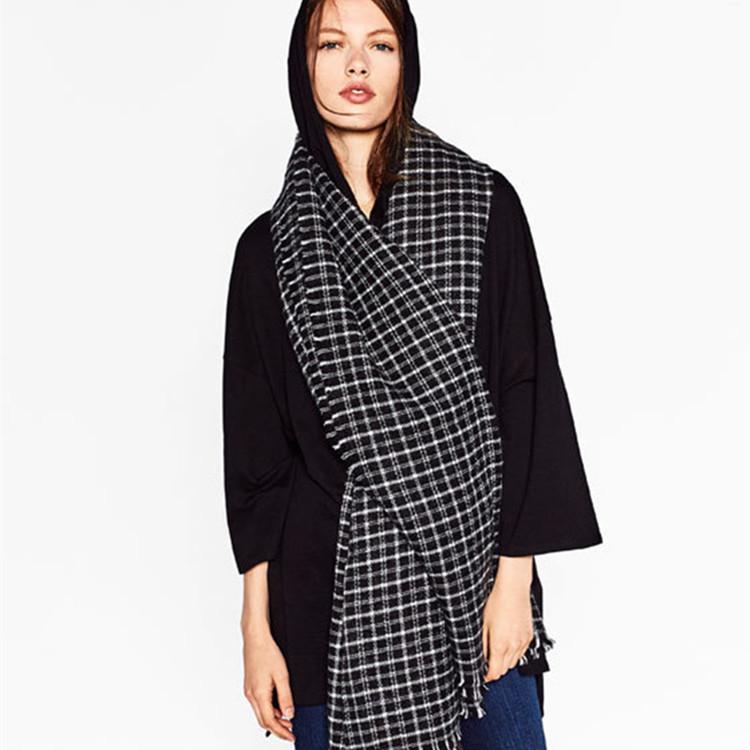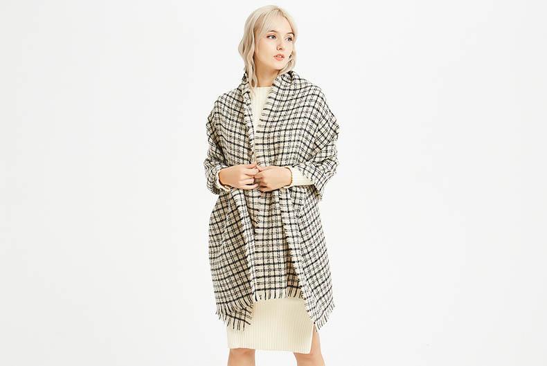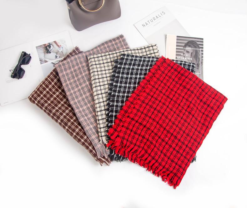 Venta directa de fábrica de otoño e invierno de Europa y América, nueva moda para mujer, cálida manta con borlas en forma de bufanda a cuadros, hermoso chal para el cuello