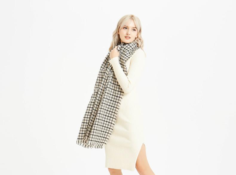 Bufanda chal de pata de gallo a cuadros con borlas de alta gama para otoño e invierno 2024 de Amazon para Europa y América