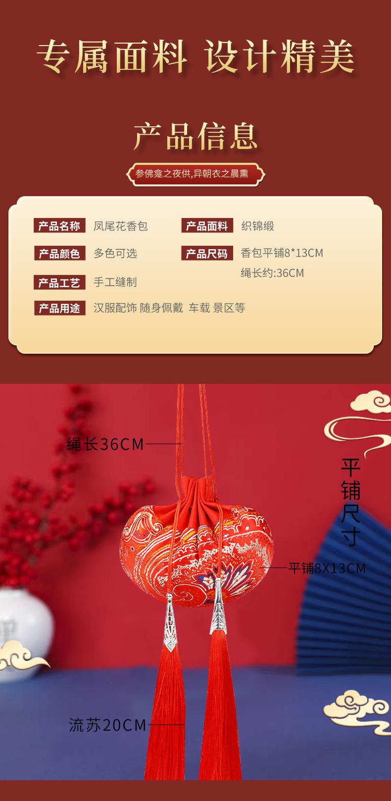 Festival del Medio Otoño Bordado Flor Cola de Fénix Saquito de Palacio Colgante Borla para el Cuello Accesorios Hanfu Regalo para Coche Saquito de Brocado