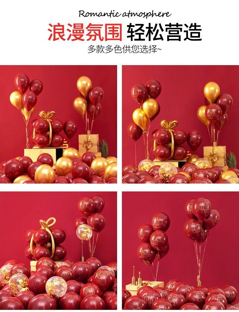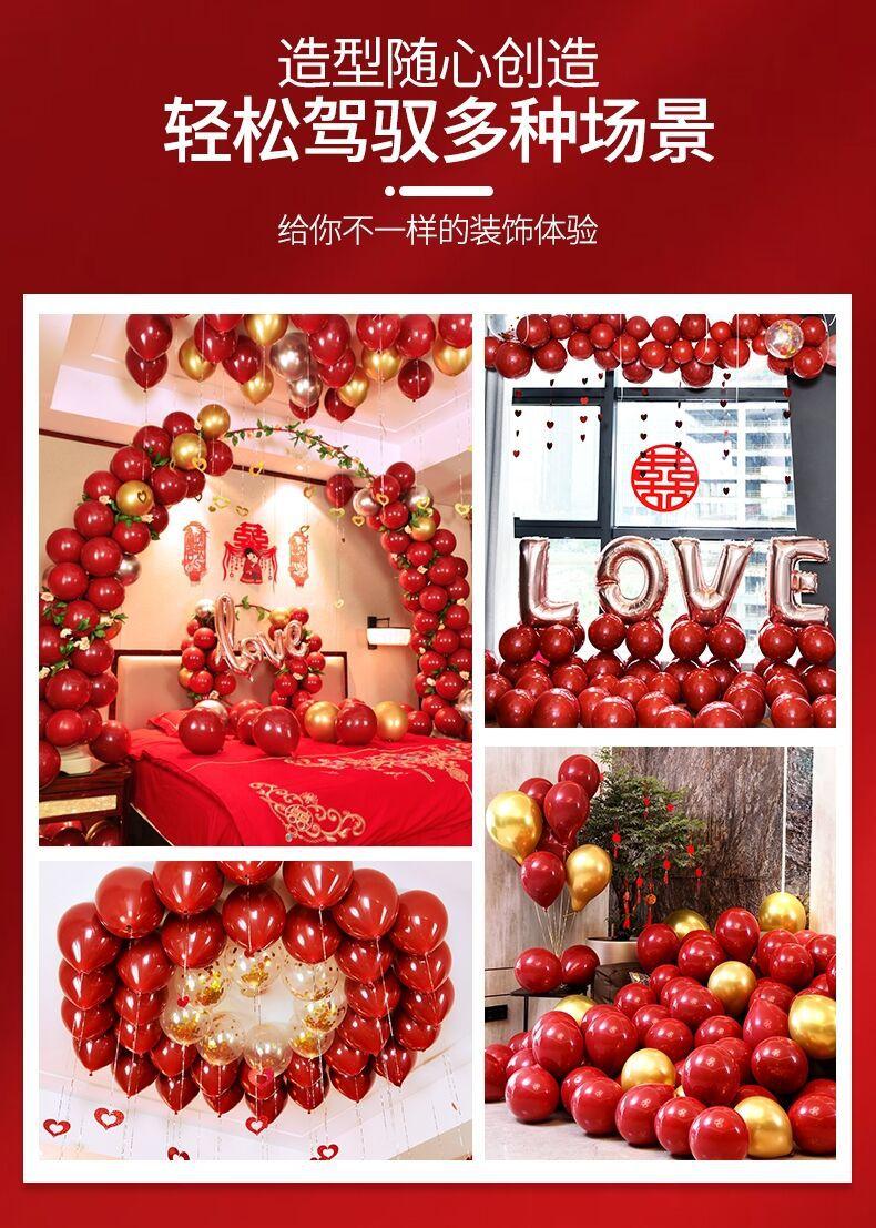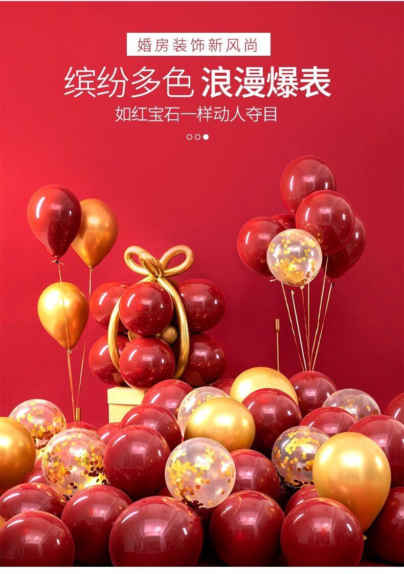 Diseño de sala de bodas, globo doble granada, conjunto de globos rojos de red rubí, decoración de bodas, globo de boda