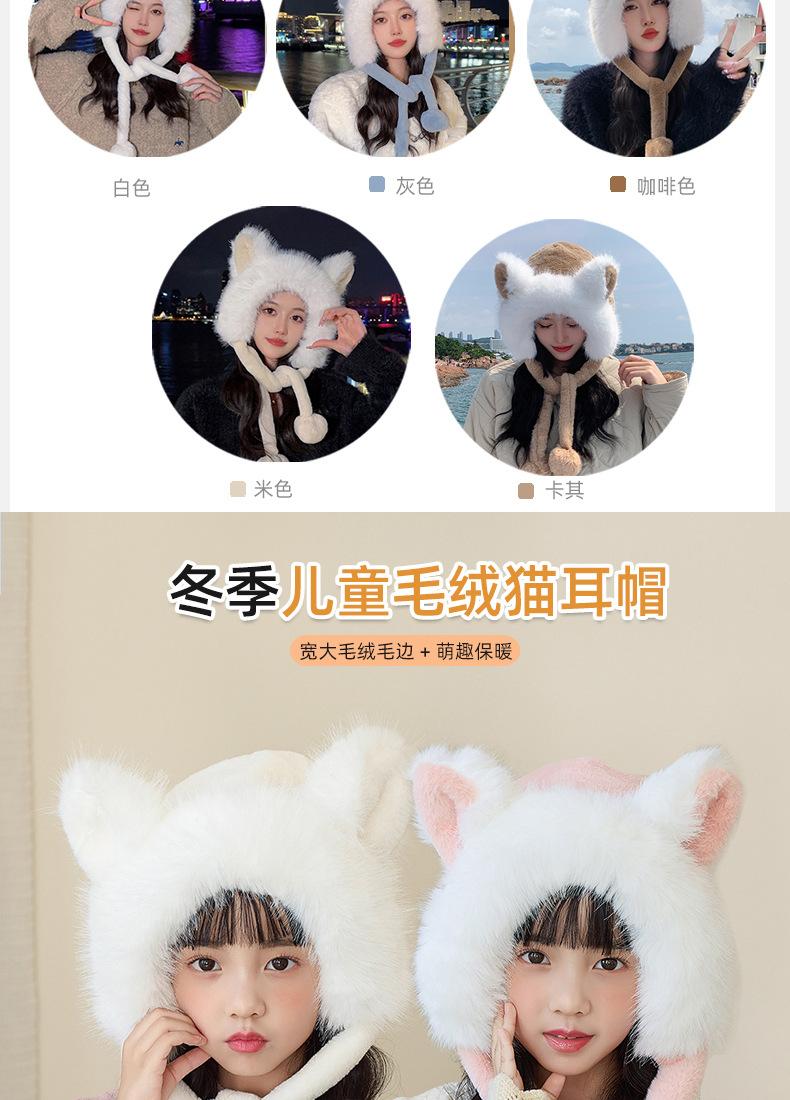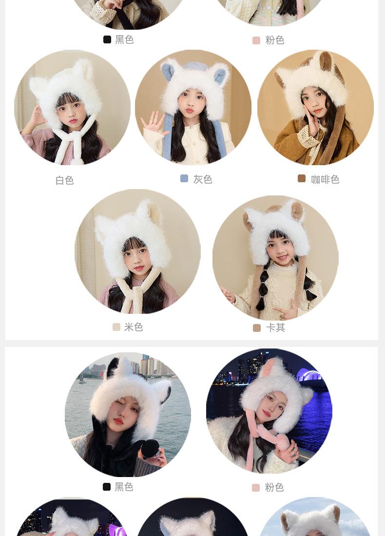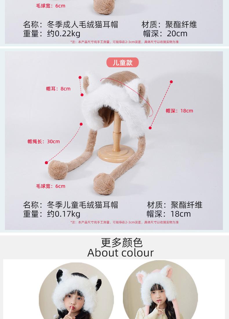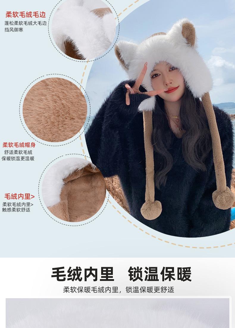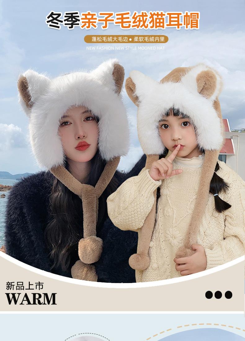 8411 Gorro cálido de invierno para mujer, bonito gorro de felpa con orejas de gato, versátil, para padres e hijos, resistente al frío, gorro Lei Feng