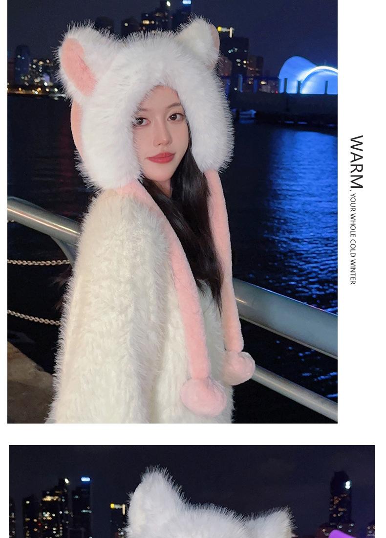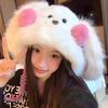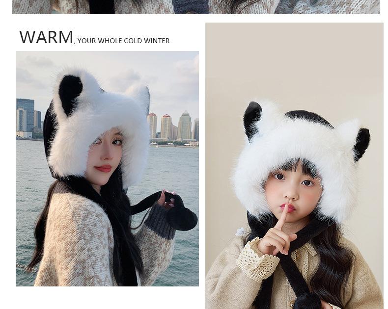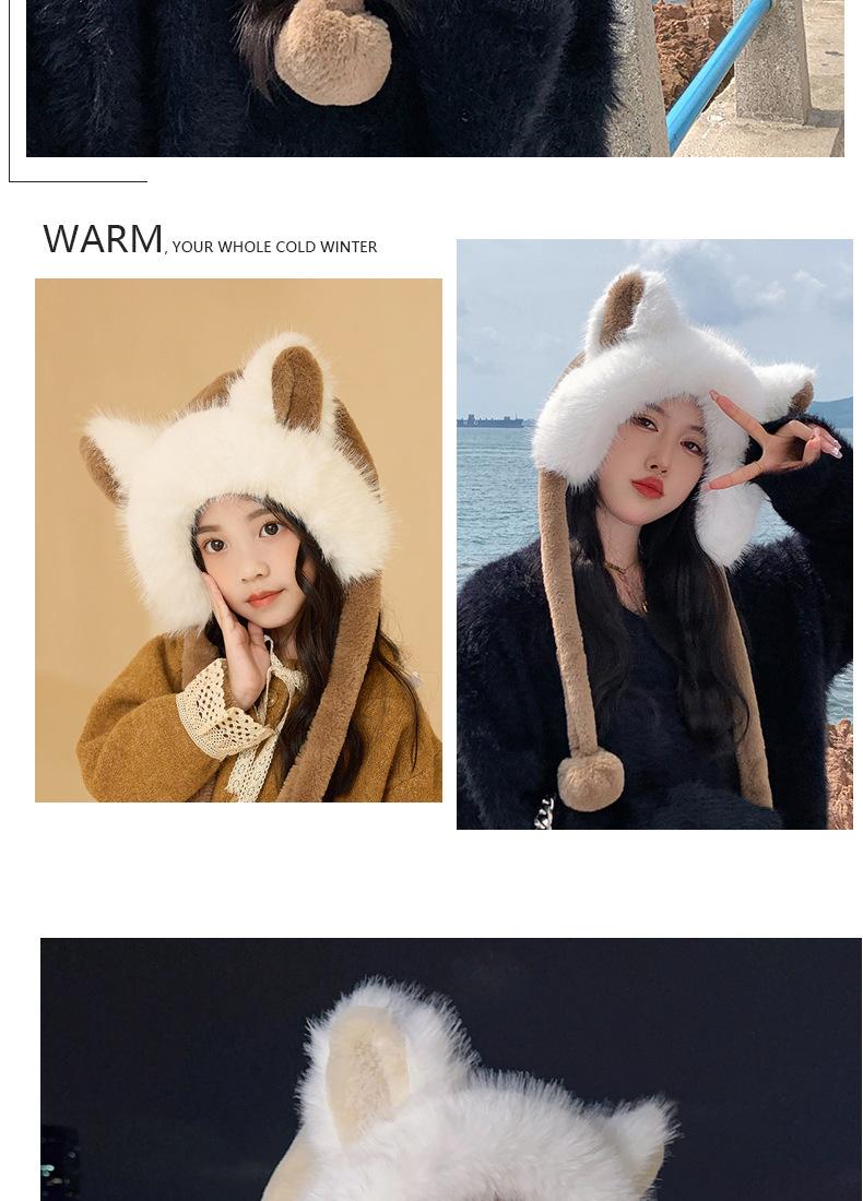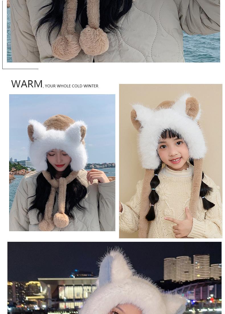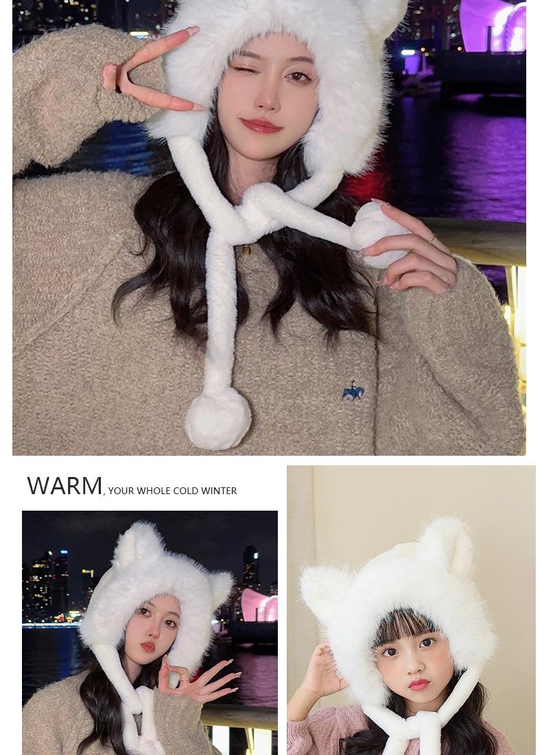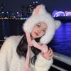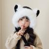 8411 Gorro cálido de invierno para mujer, bonito gorro de felpa con orejas de gato, versátil, para padres e hijos, resistente al frío, gorro Lei Feng