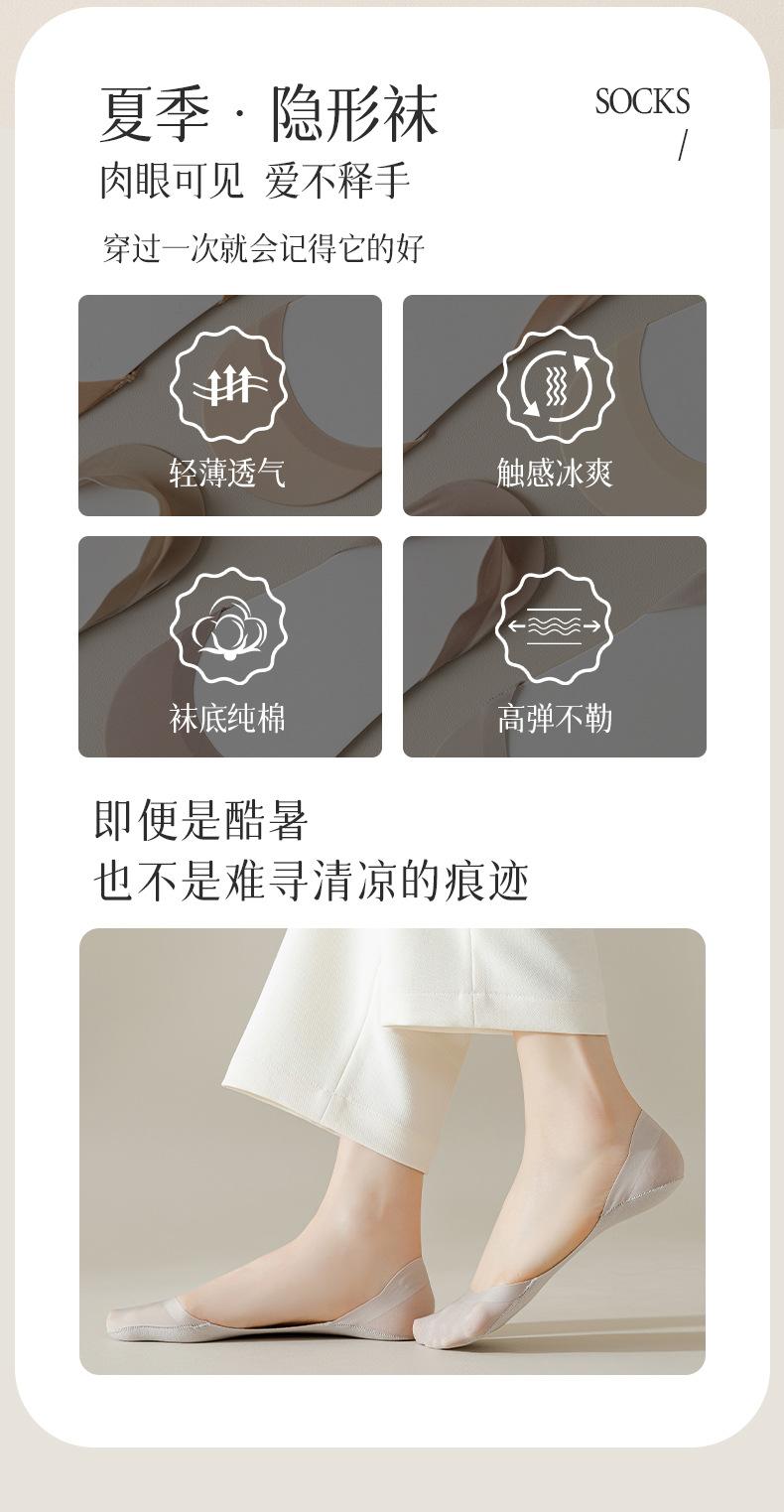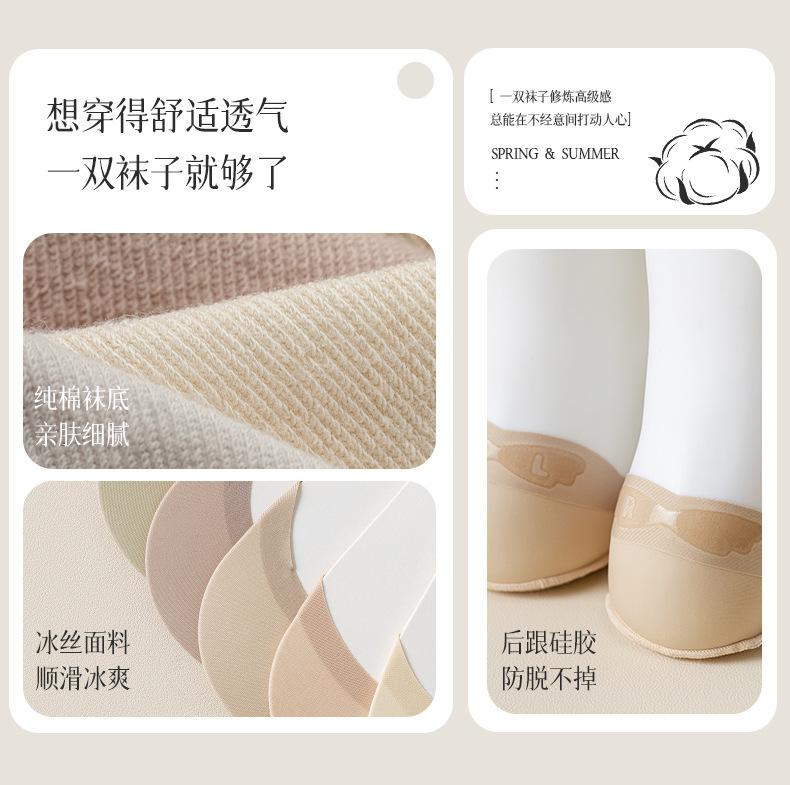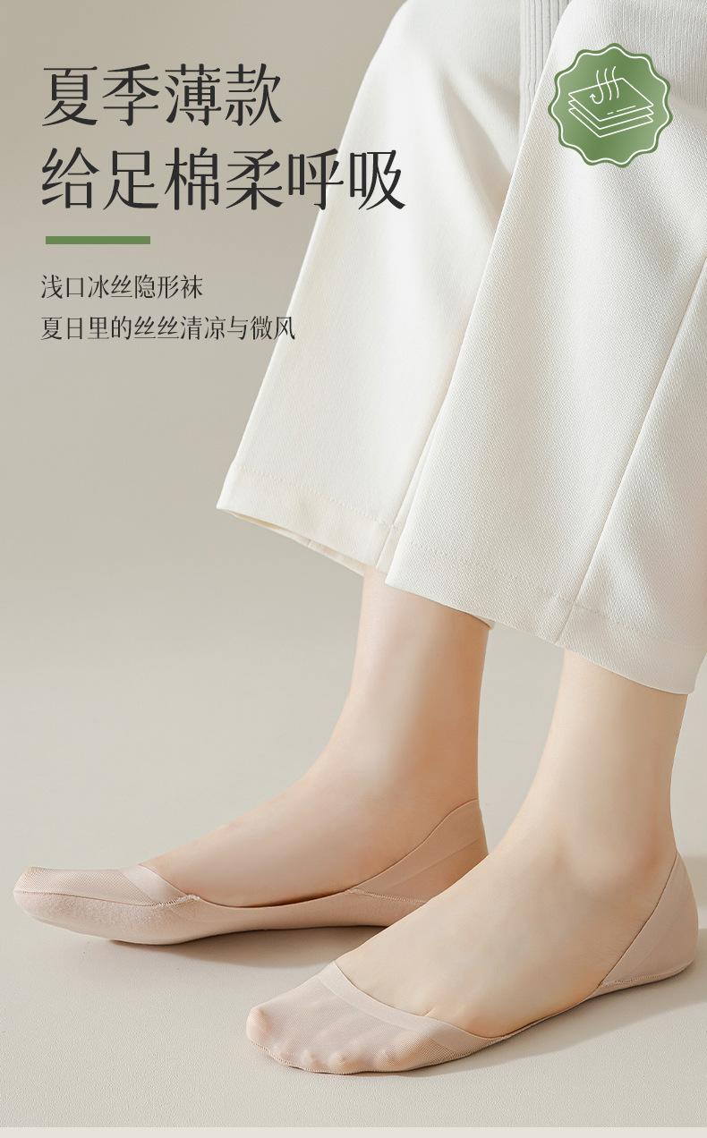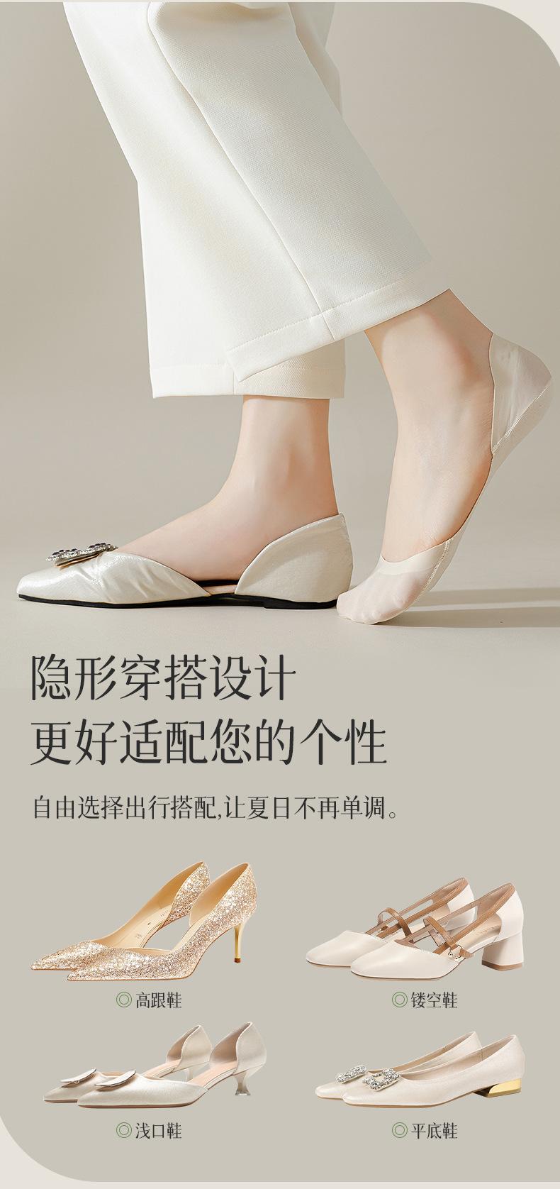 Calcetines de Barco para Mujer Verano Delgados Algodón Puro Parte Inferior Antideslizante Tacones Altos Boca Baja Seda de Hielo Calcetines Cortos Invisibles Calcetines de Corte Bajo
