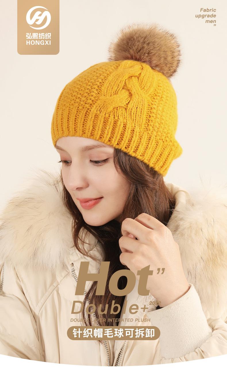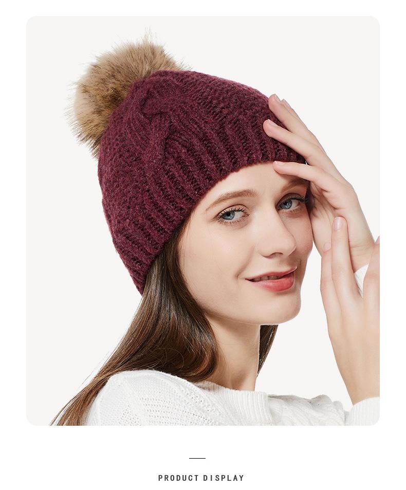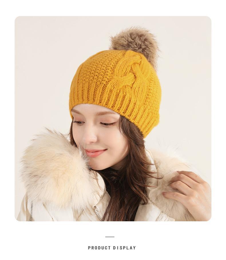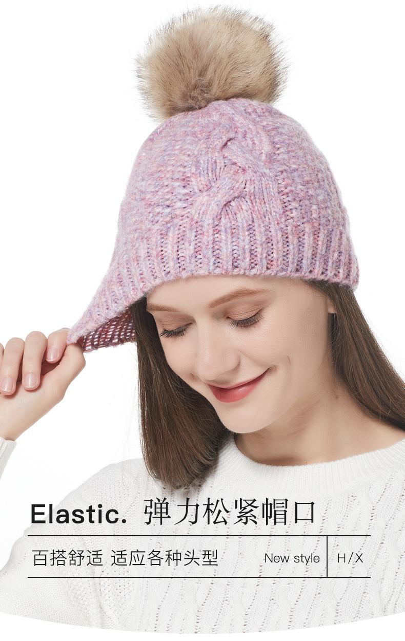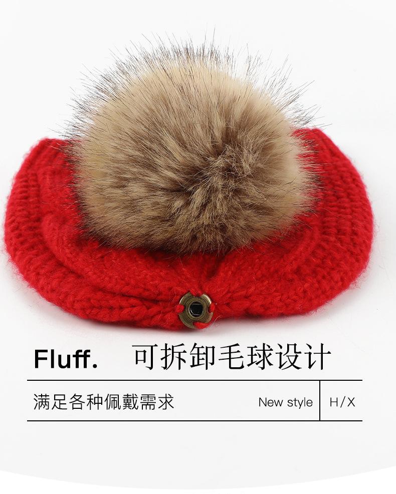 Sombrero de Invierno para Mujer Moda Europea y Americana Todo Combinable Sombrero Tejido Lindo Pompon Reunión Exterior Cálido Protección para las Orejas Moda ins Sombrero de Lana