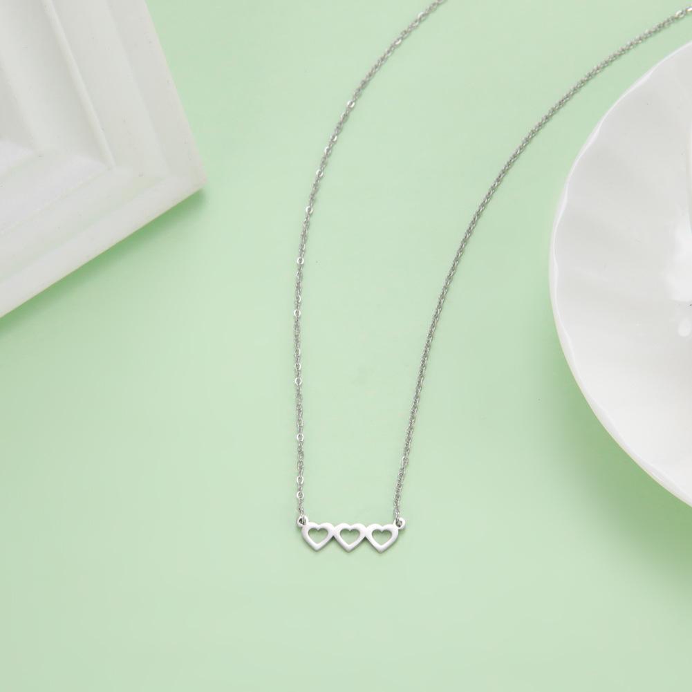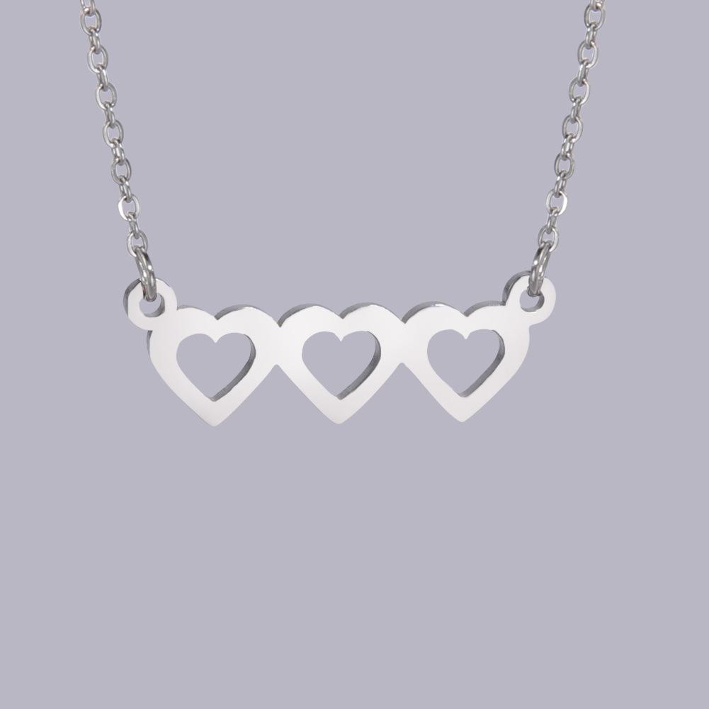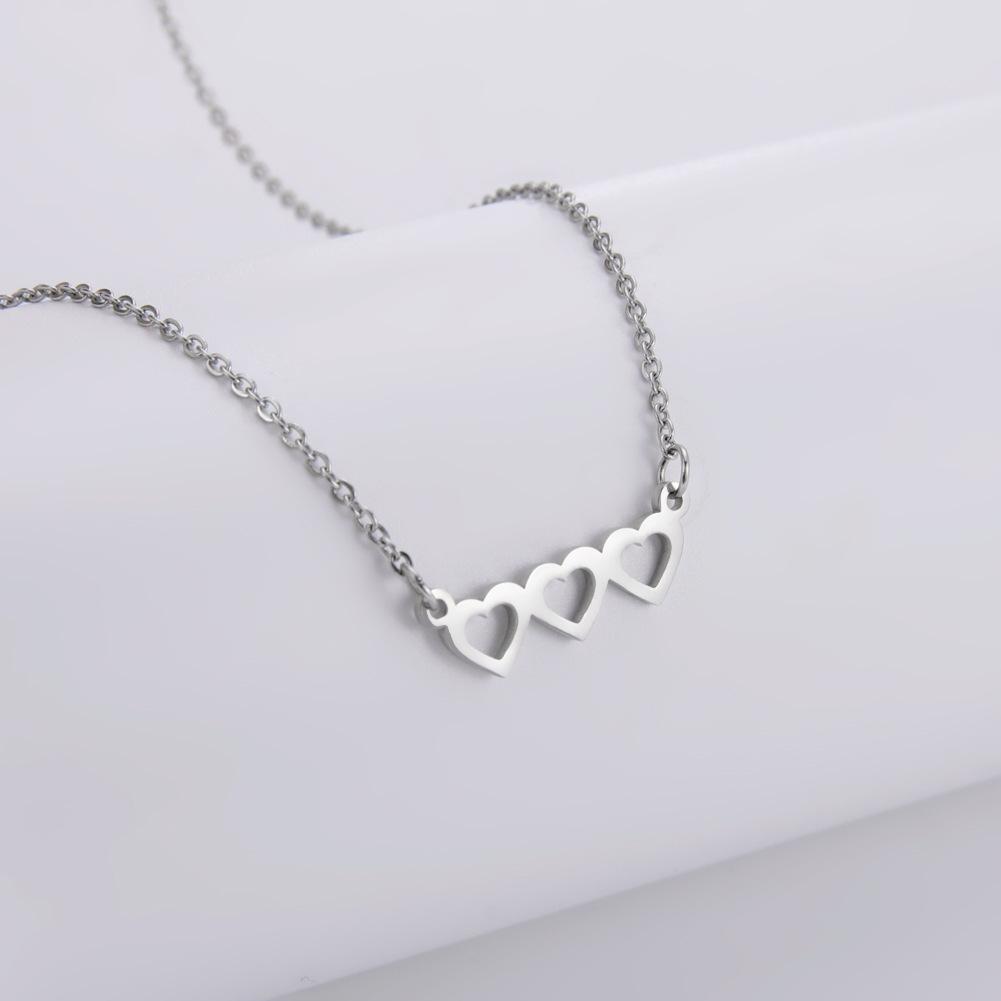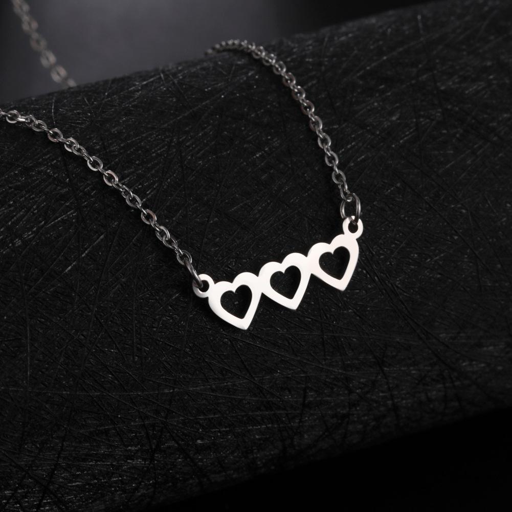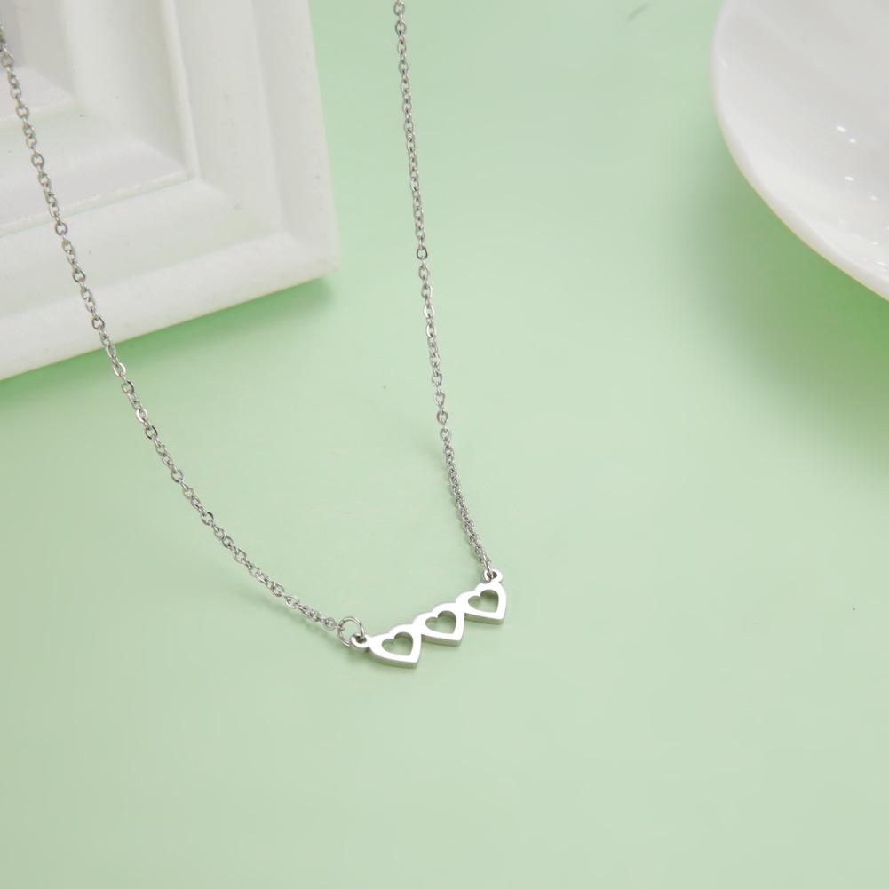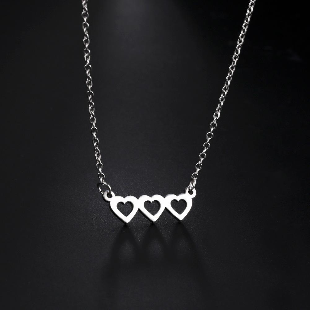 Venta al por mayor de fabricante Cadena clavicular de acero de titanio para niñas Colgante simple hueco de tres corazones Corte Acero inoxidable Acero Collar