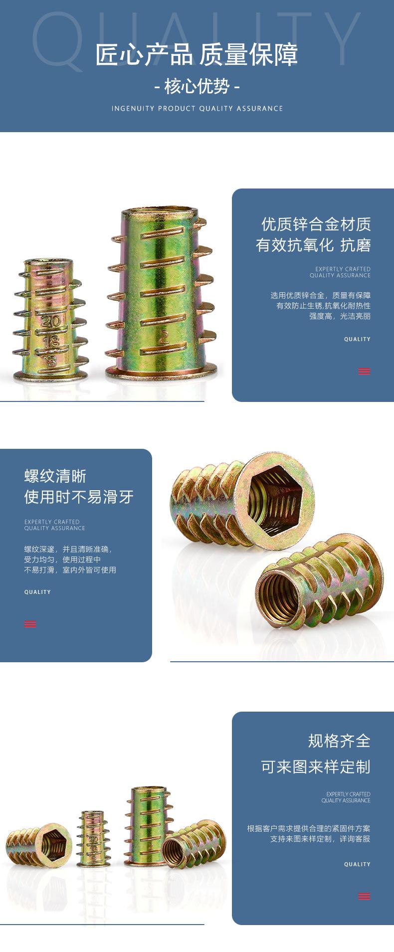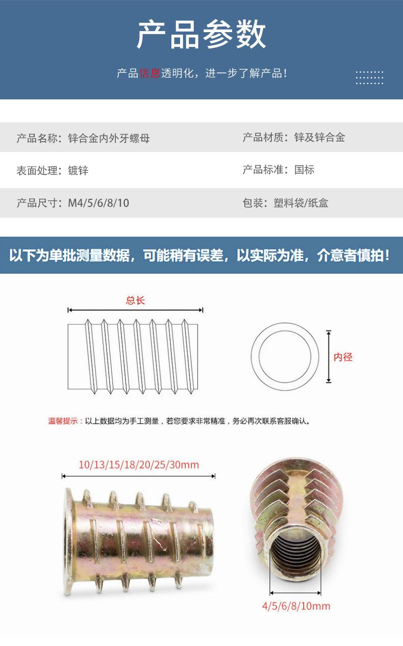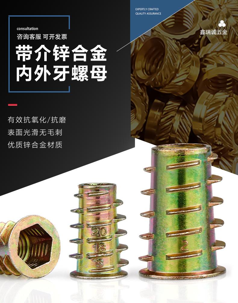 Fabricante en stock suministro M4-M10 aleación de zinc dientes interiores y exteriores tuerca de hardware para muebles tuerca trapezoidal